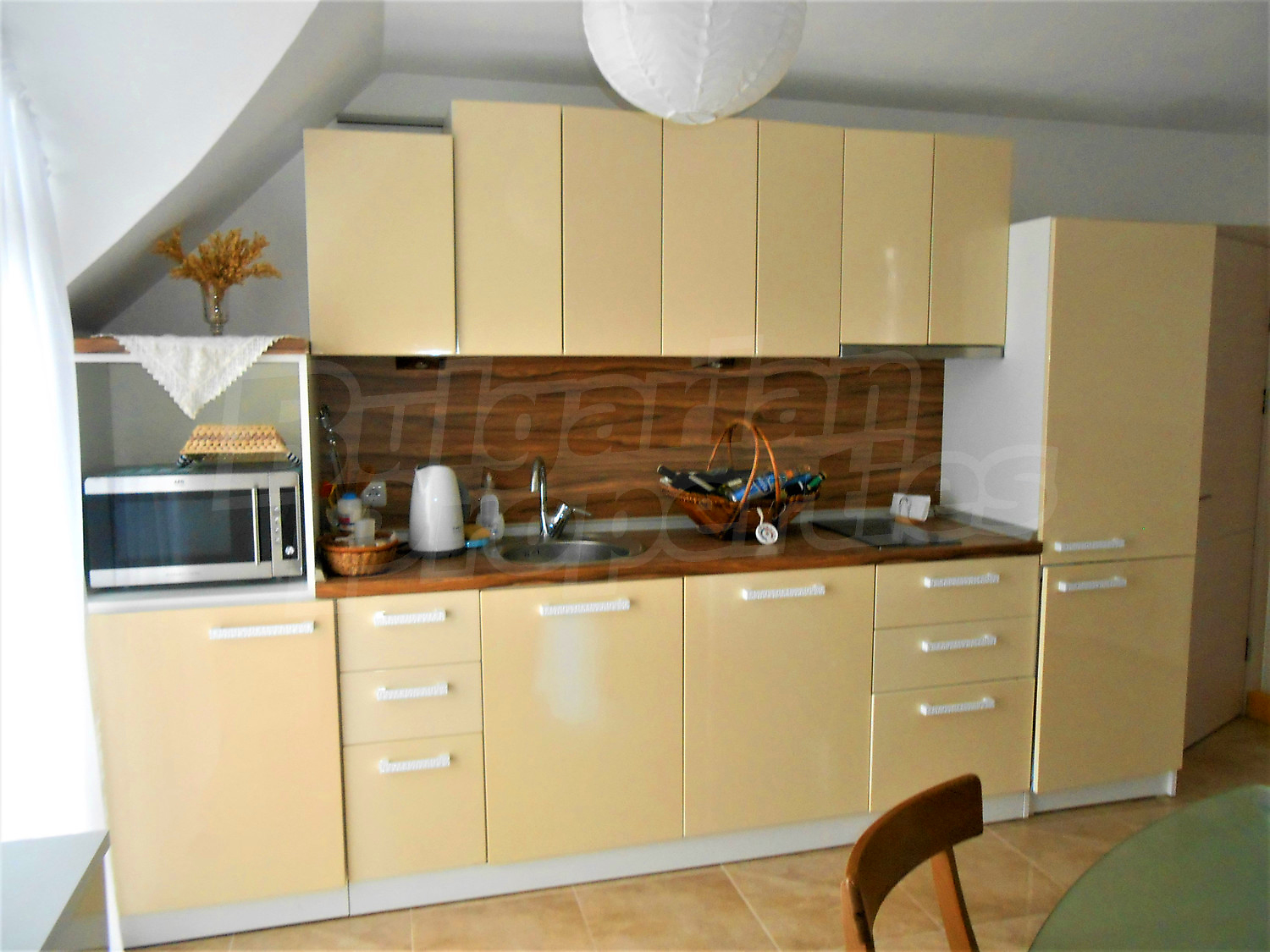 - Кухня с мивка, аспиратор, вградени котлони, хладилник – Electrolux, пералня - Indesit, съдомиялна - Bosch, микровълнова - AEG, прибори и посуда;