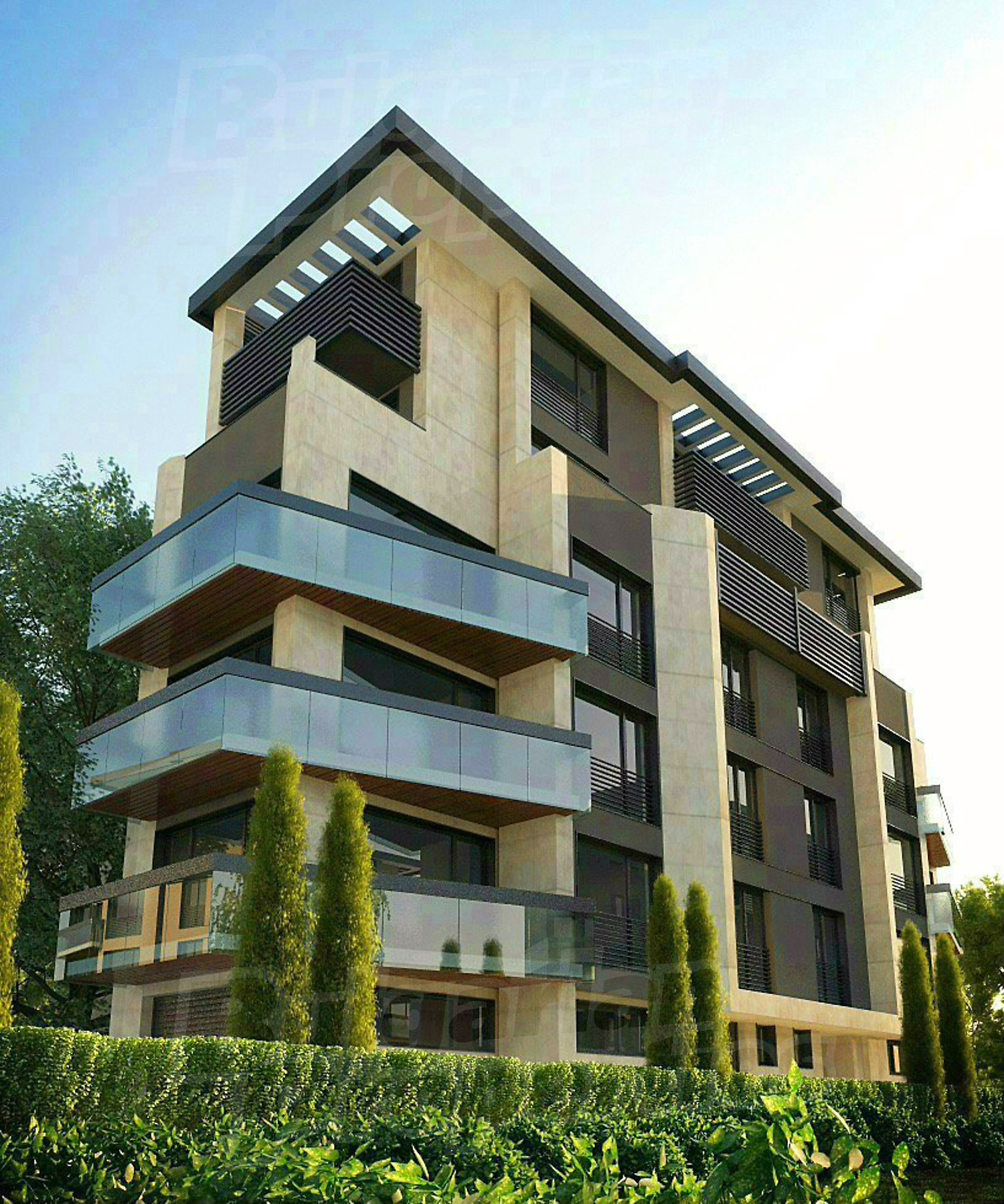 • Тераси - студоустойчив грапав гранитогрес, парапет –инокс/стъкло;