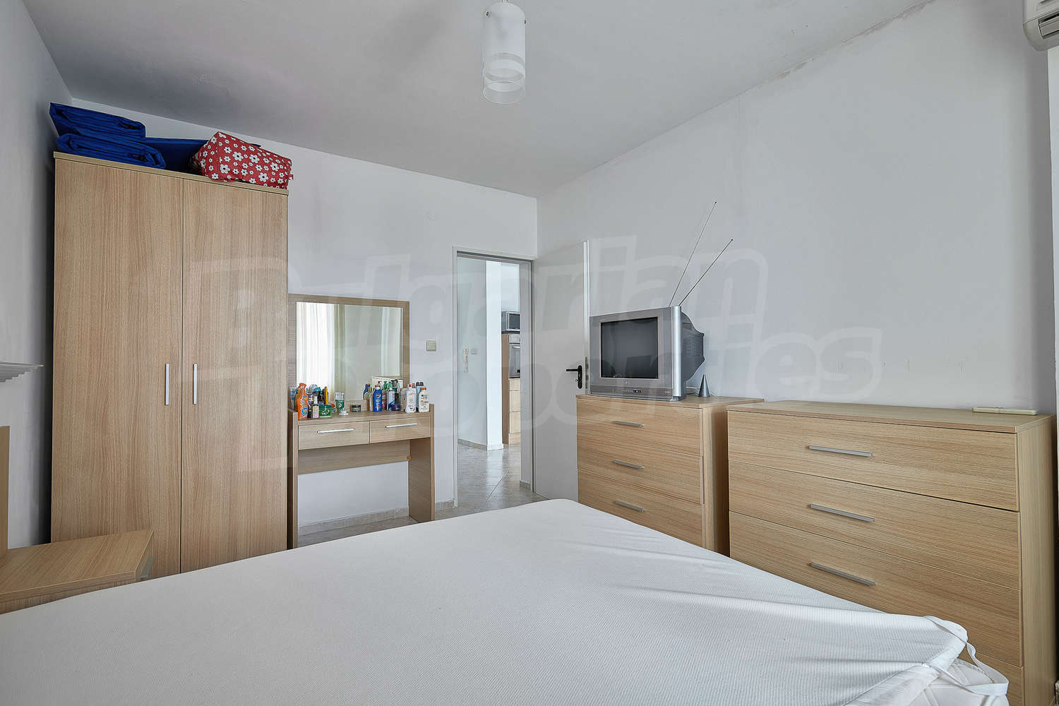 Жилището е завършено с подова настилка теракот, PVC-дограма и стени, боядисани с латекс. Има поставени климатици.