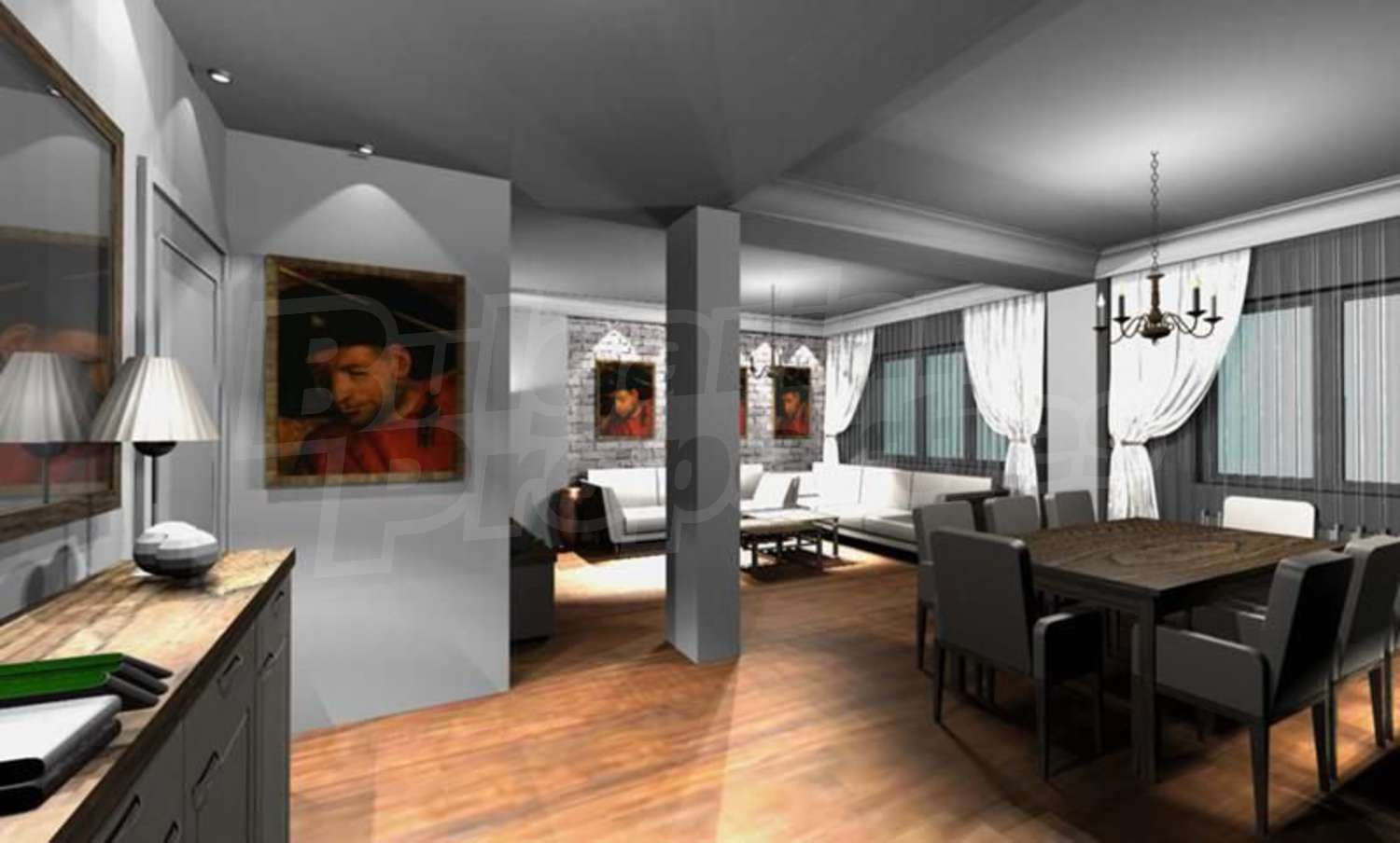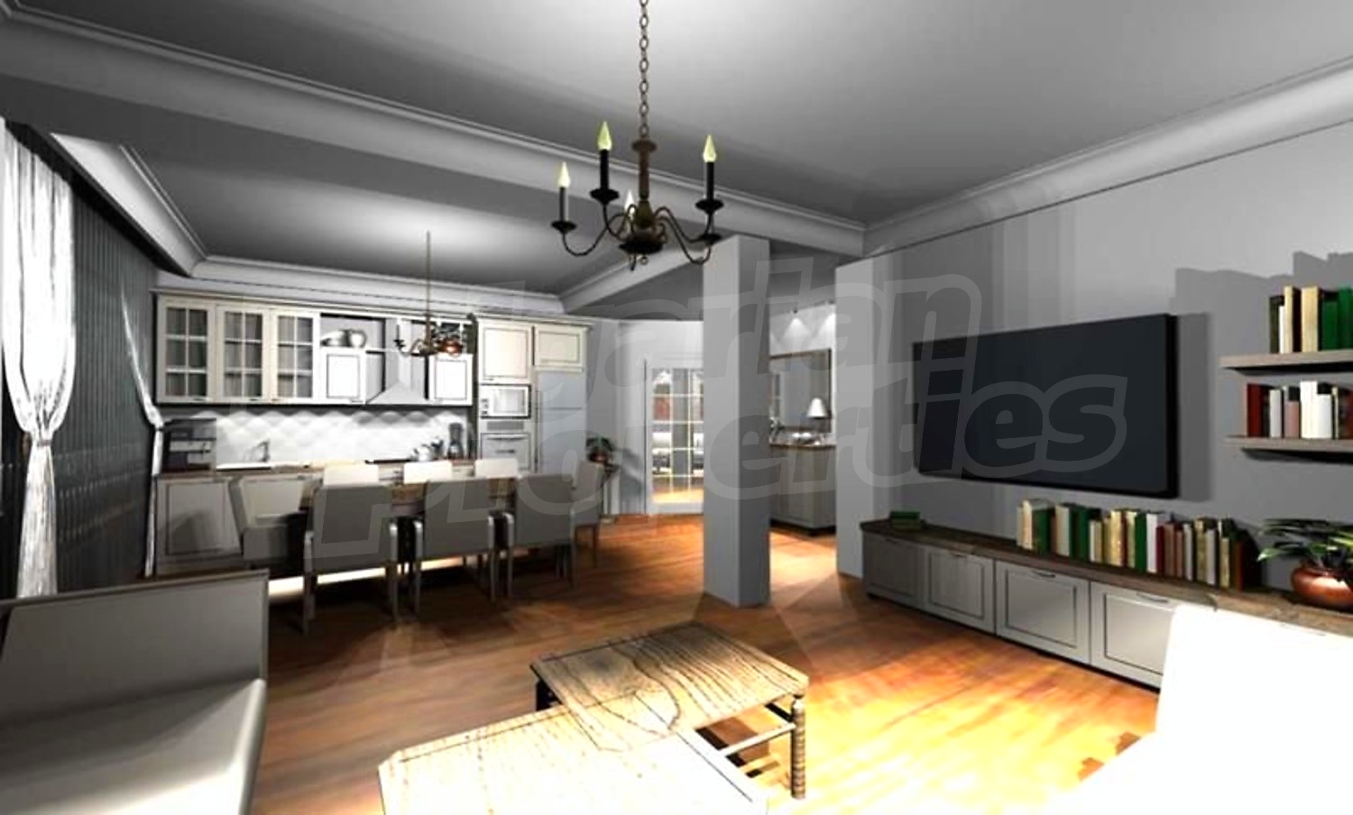 • Просторен хол с кухненски бокс – 46кв.м.