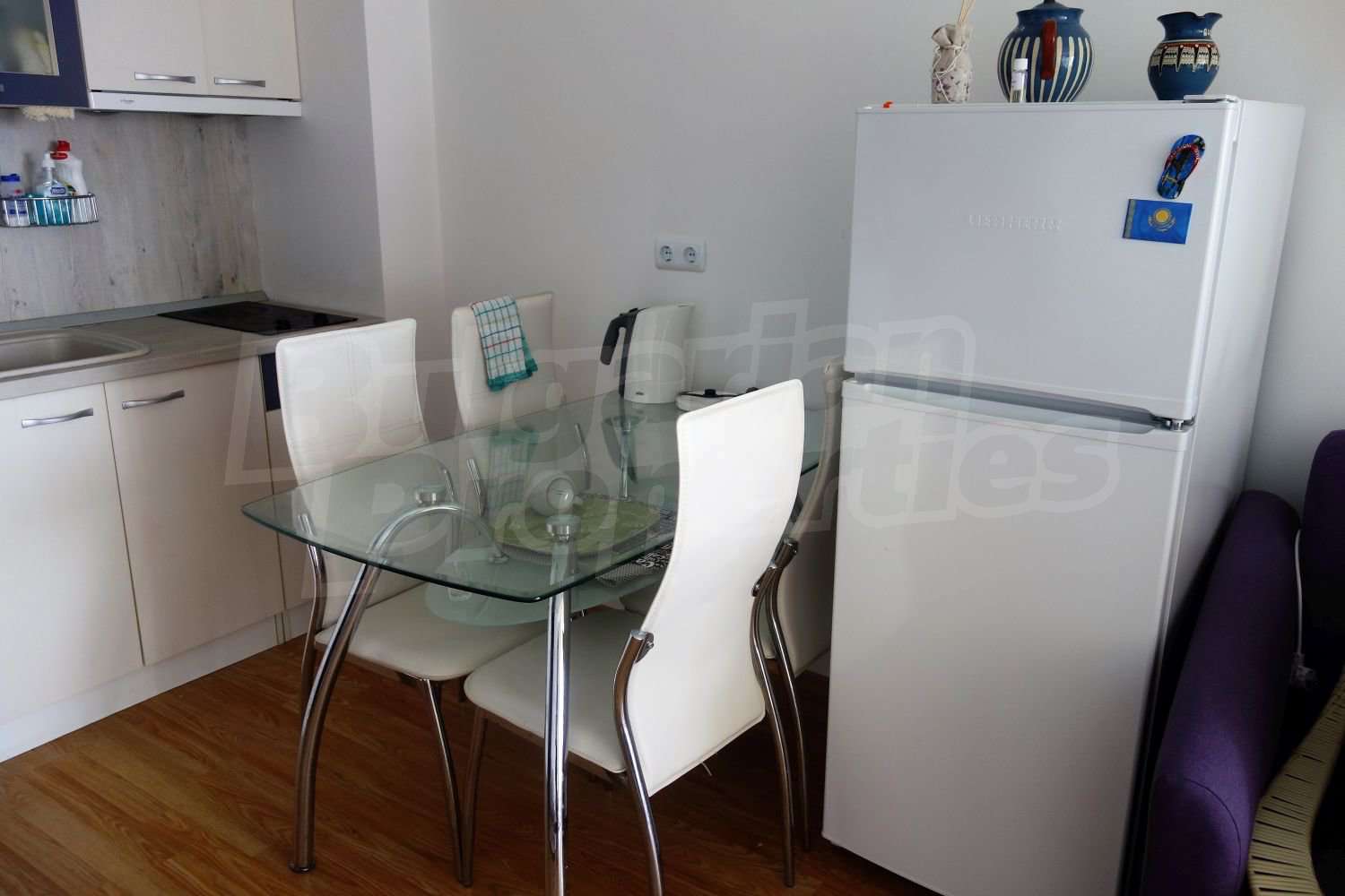Апартаментът има всичко необходимо за комфортно ежедневие и приятен престой - кухненски бокс с кухненски шкафове, абсорбатор, керамични котлони, хладилник, пералня, маса за хранене с четири стола, 2 дивана, гардероб, нощни шкафчета и удобно двойно легло. Напълно оборудвана баня с душ кабина и необходимите аксесоари.