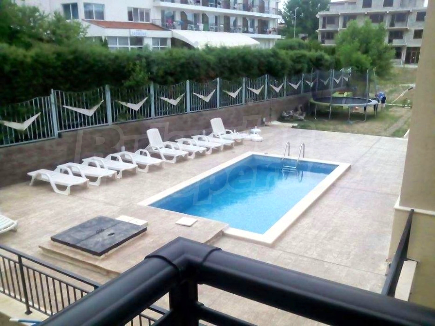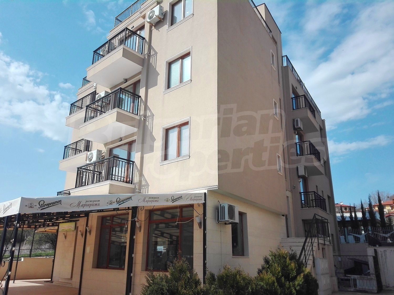 Два едностайни апартамента тип студио в една сграда, разположени на етажи 2 и 3. Жилищата се намират в нова сграда с Акт 16 от 2012г. с луксозно завършени общи части, домофон, интернет достъп, кабелна телевизия. Към комплекса има ресторант и басейн. Подходящи са за инвестиция за отдаване под наем. Сградата се намира много близо до плажа и няма такса поддръжка.