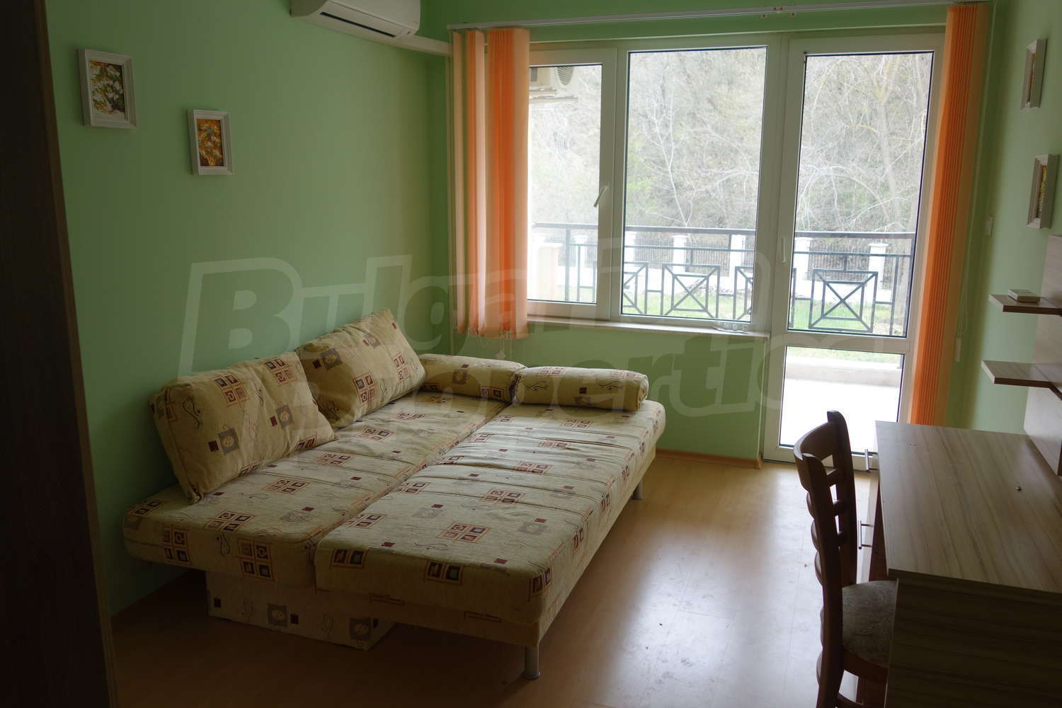 к.к. Златни пясъциОбзаведено жилище с гледка към зеленина и басейн