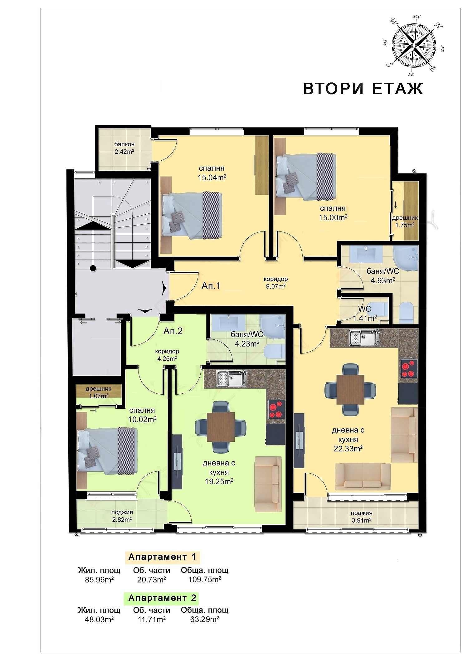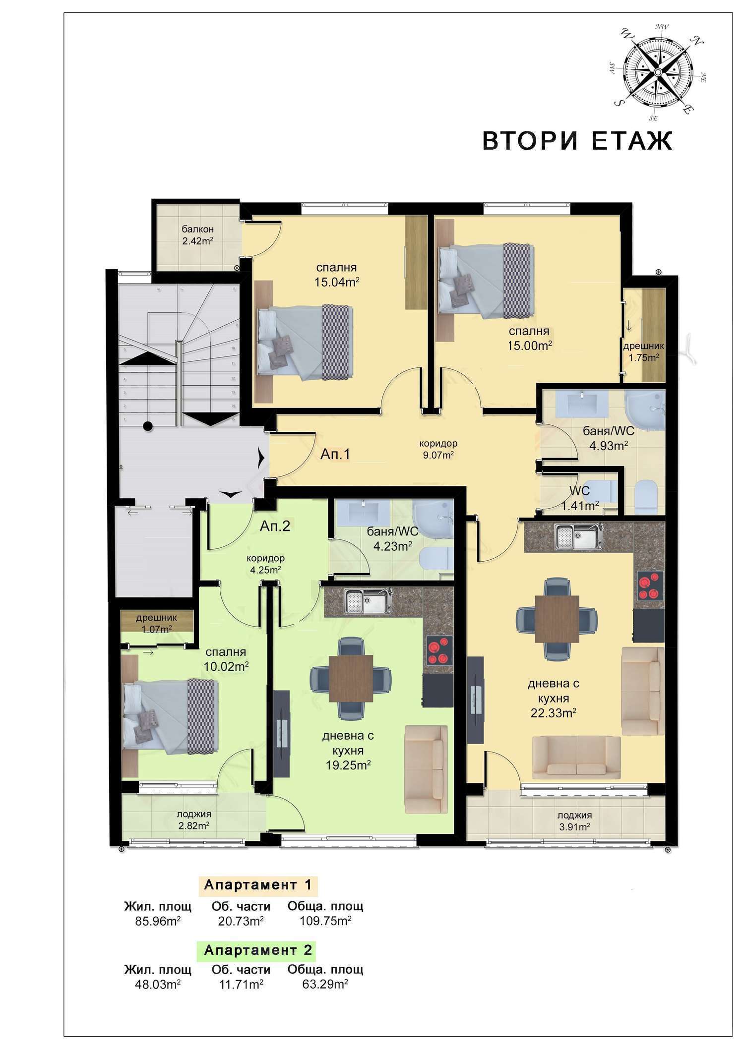 Всеки от апартаментите се състои от: