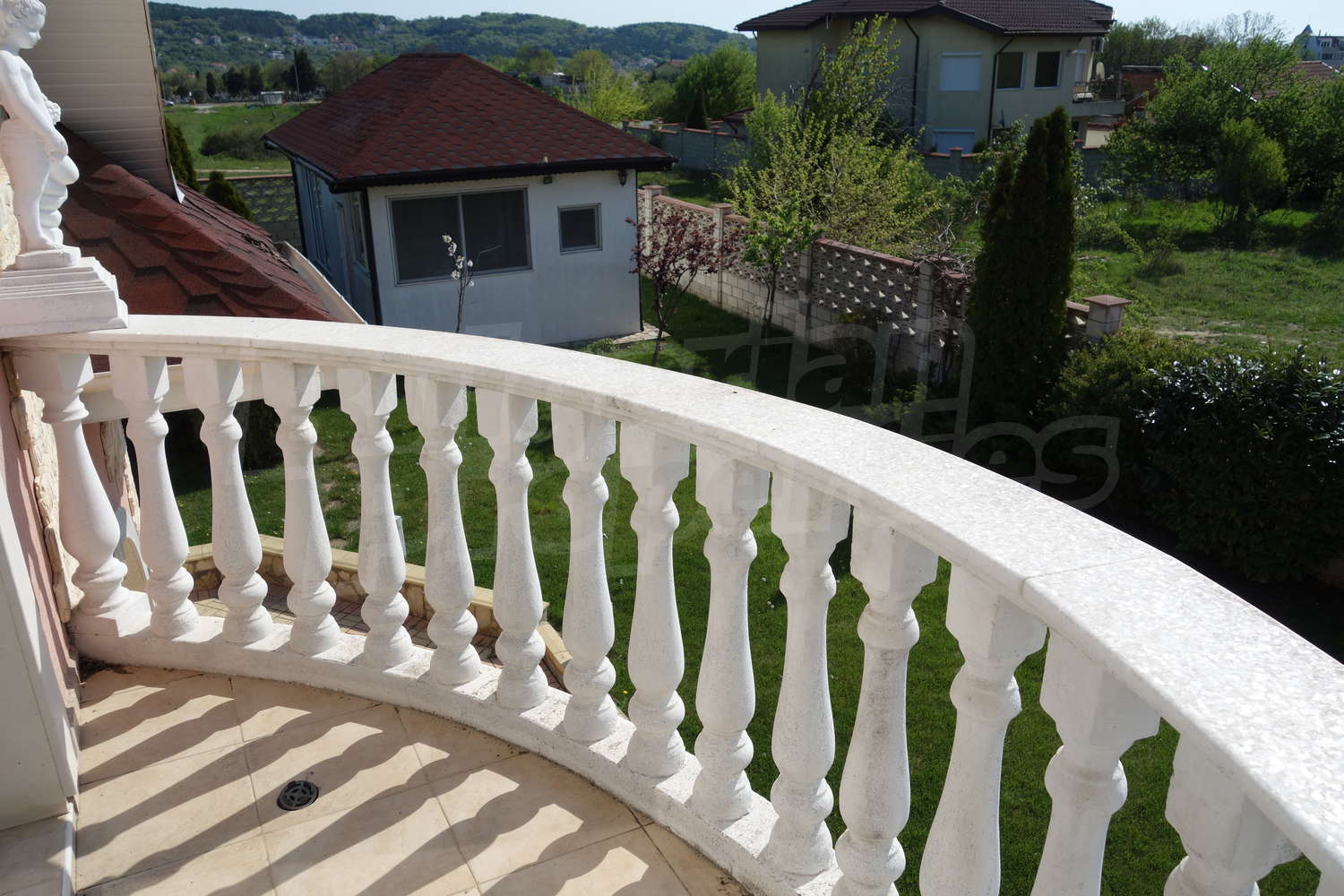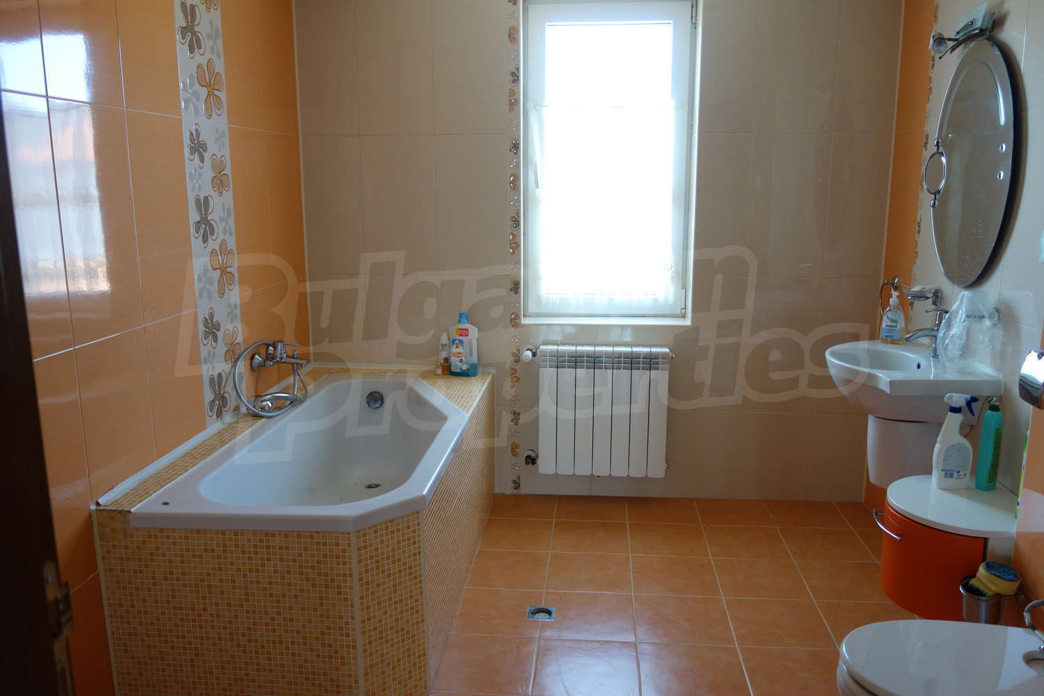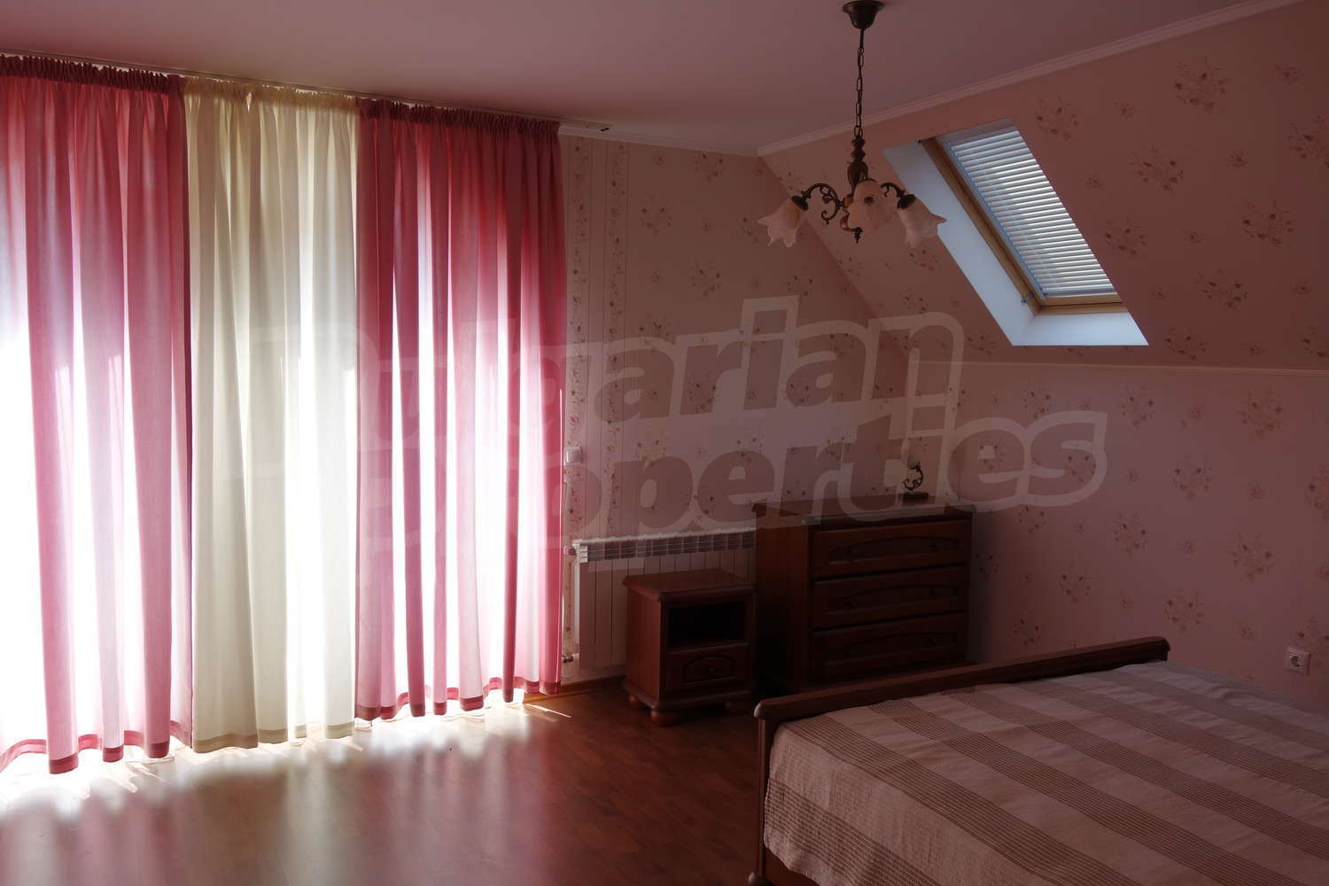 • По вътрешна стълба се стига до втори етаж - три спални, дрешник, баня с тоалетна, тераса.