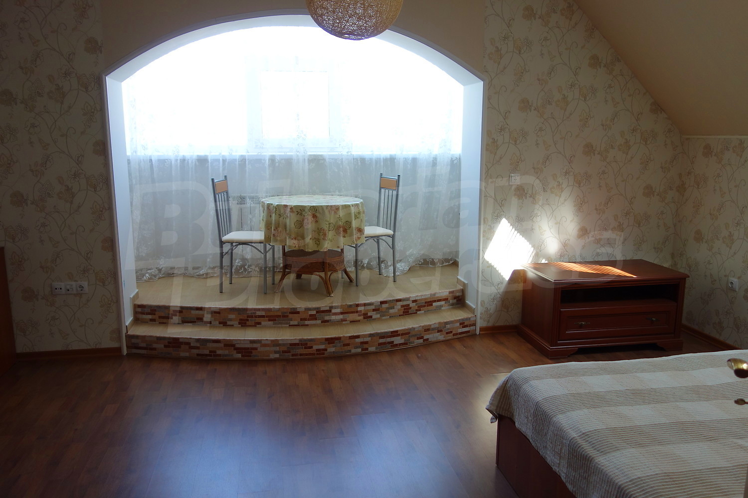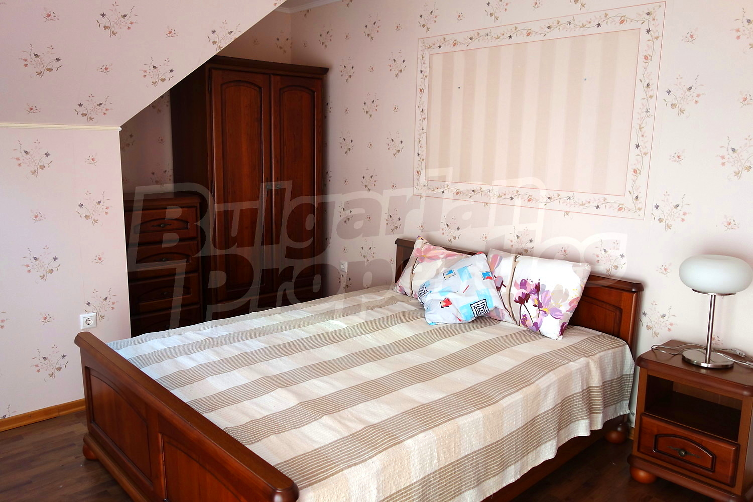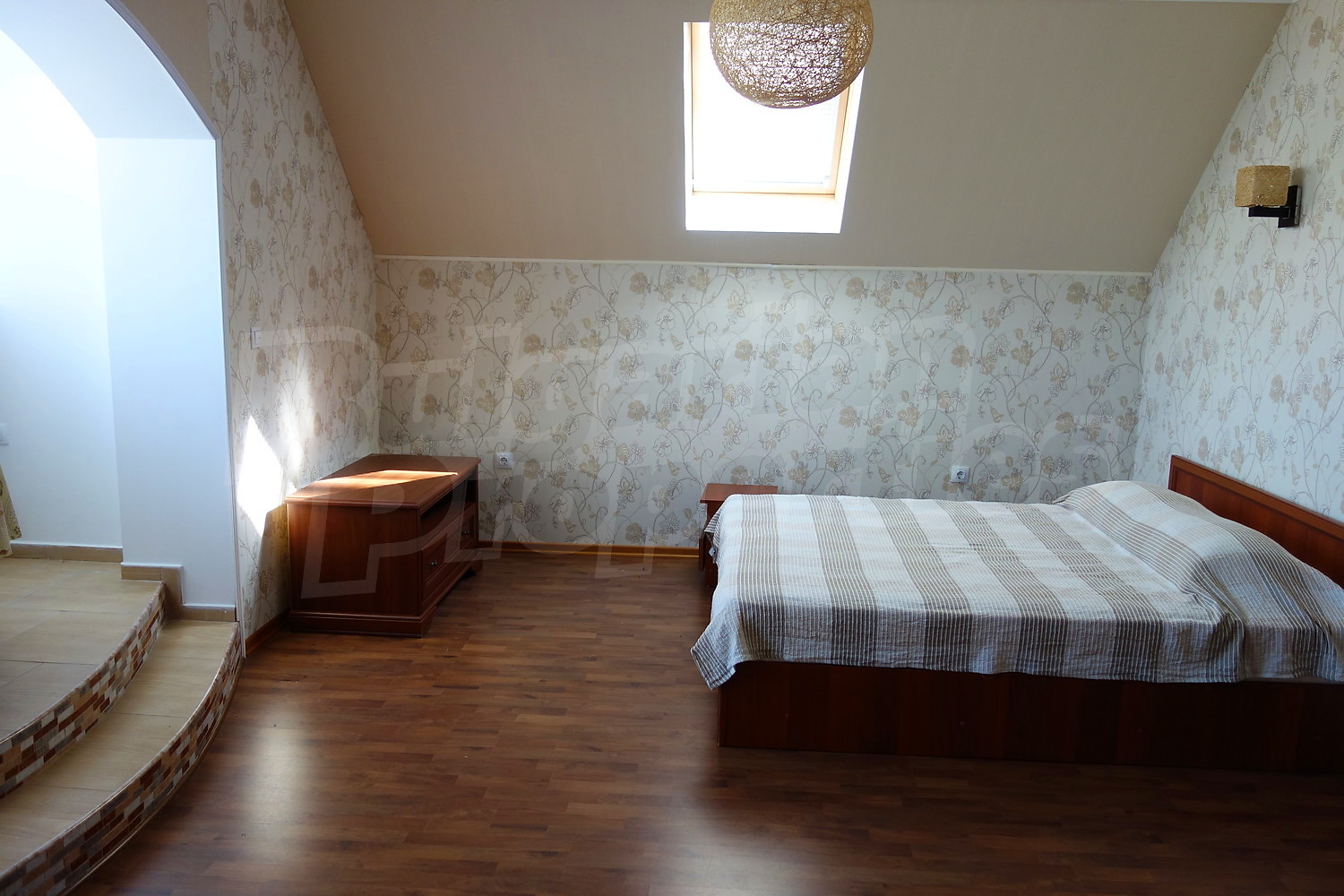 • По вътрешна стълба се стига до втори етаж - три спални, дрешник, баня с тоалетна, тераса.