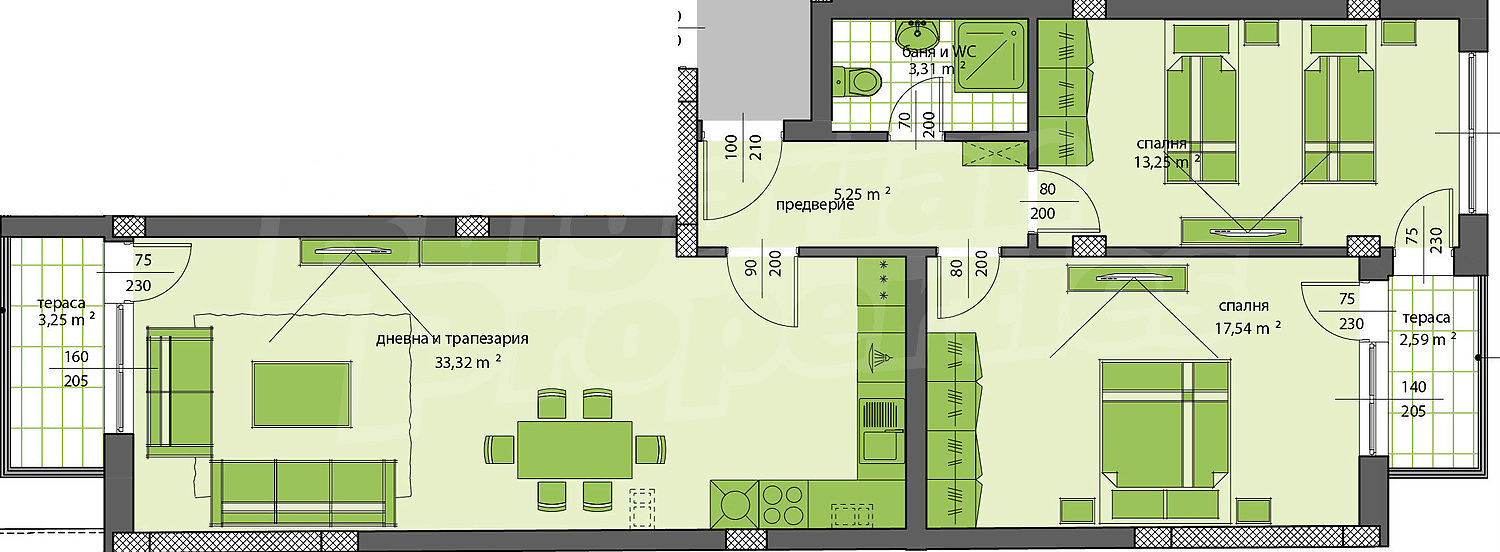 Апартаменти (различни типове), Двустайни апартаменти, Тристайни апартаменти, Четиристайни апартаменти, Многостайни апартаменти, Гаражи