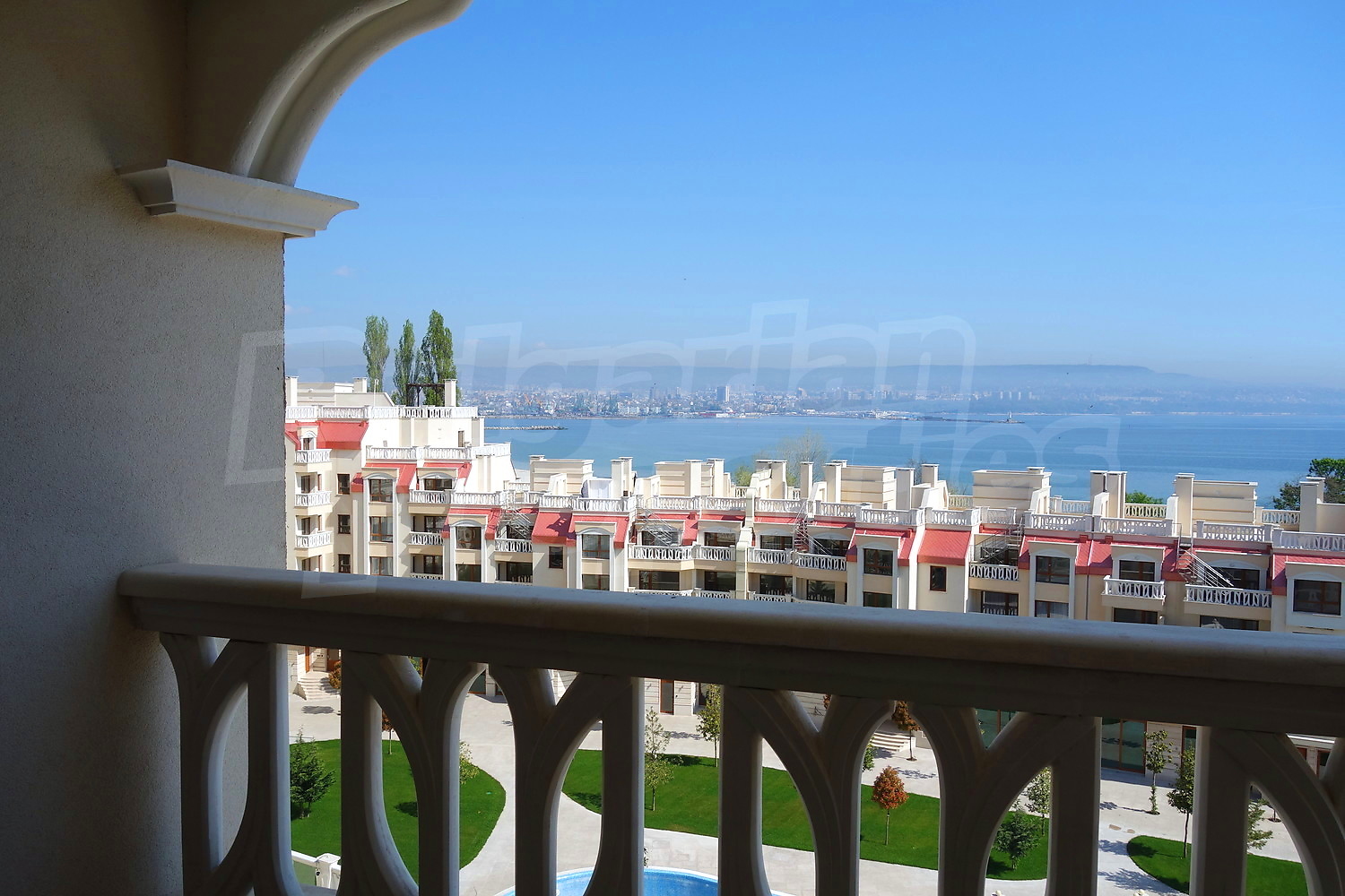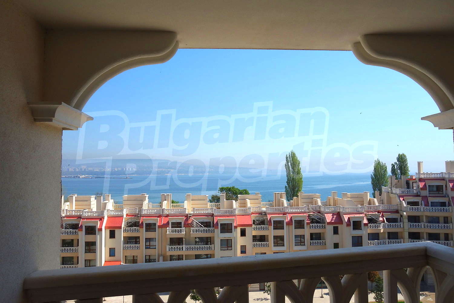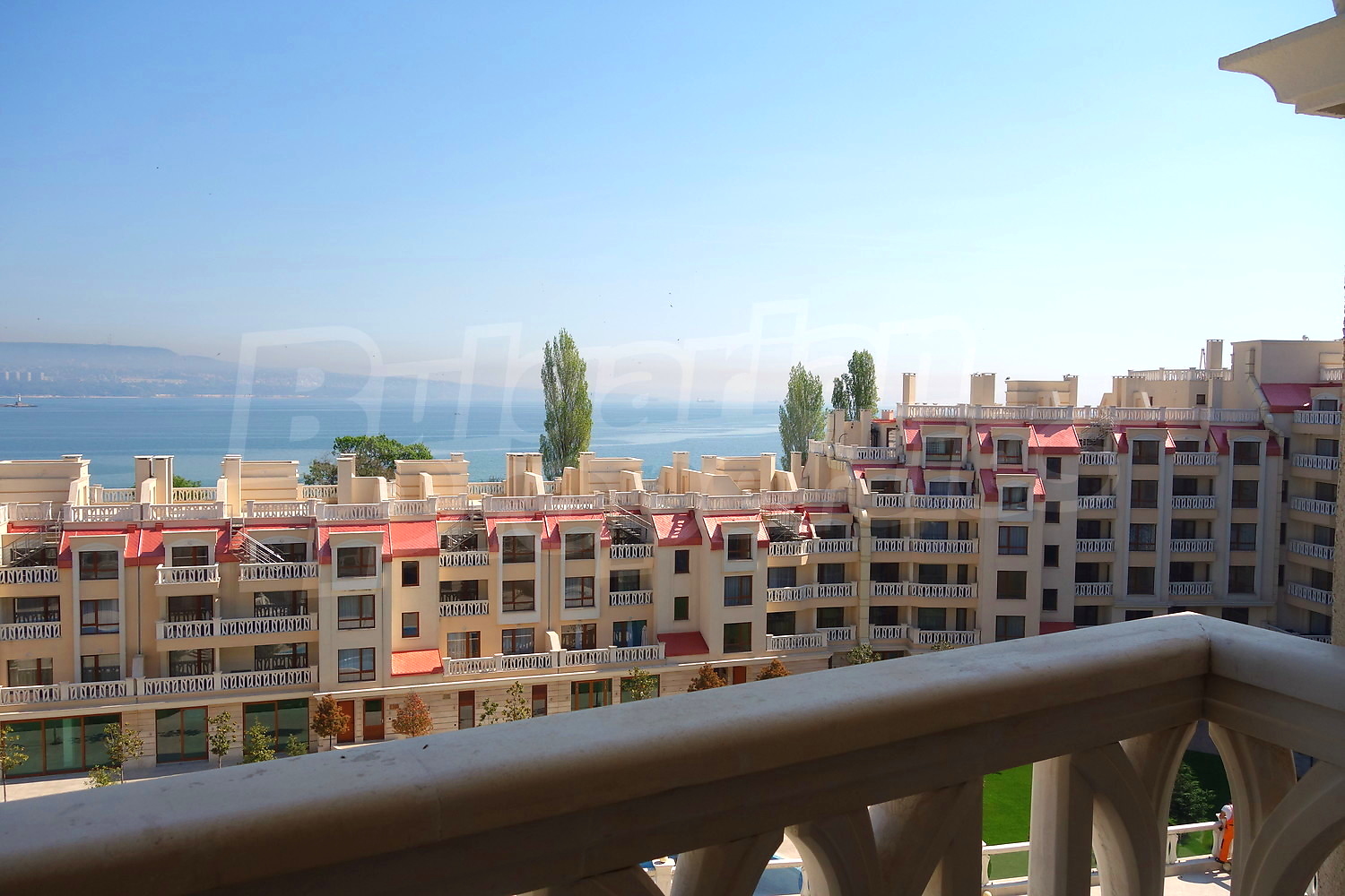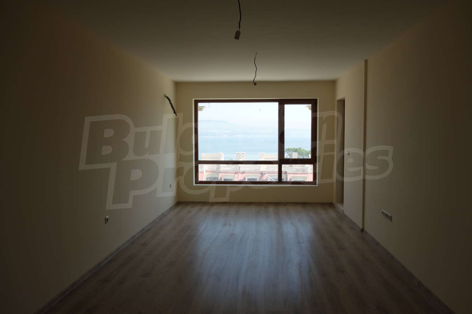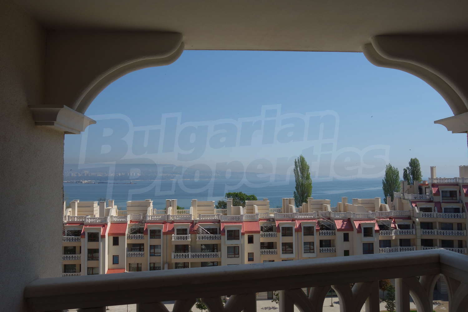 Двустаен апартамент с уникална гледка към Варненския залив и подземно паркомясто към него. Апартаментът е с площ от 76.66 кв.м. и е разположен на пети етаж от общо девет в най-добрата секция на комплекса, разположена фронтално срещу плажа и морето (първа линия). Имотът се продава завършен до ключ с качествени настилки и напълно готова и оборудвана баня.