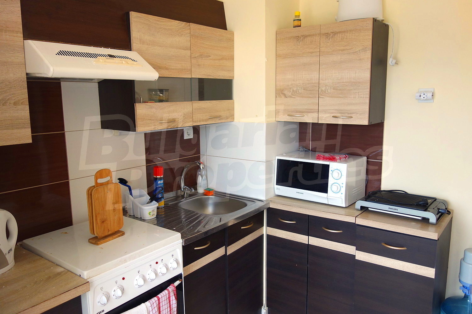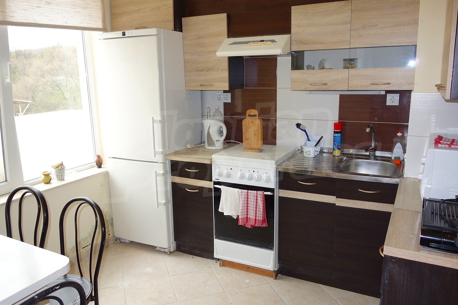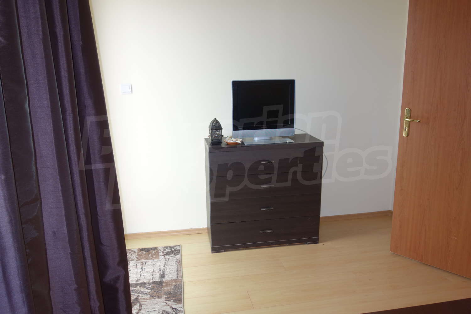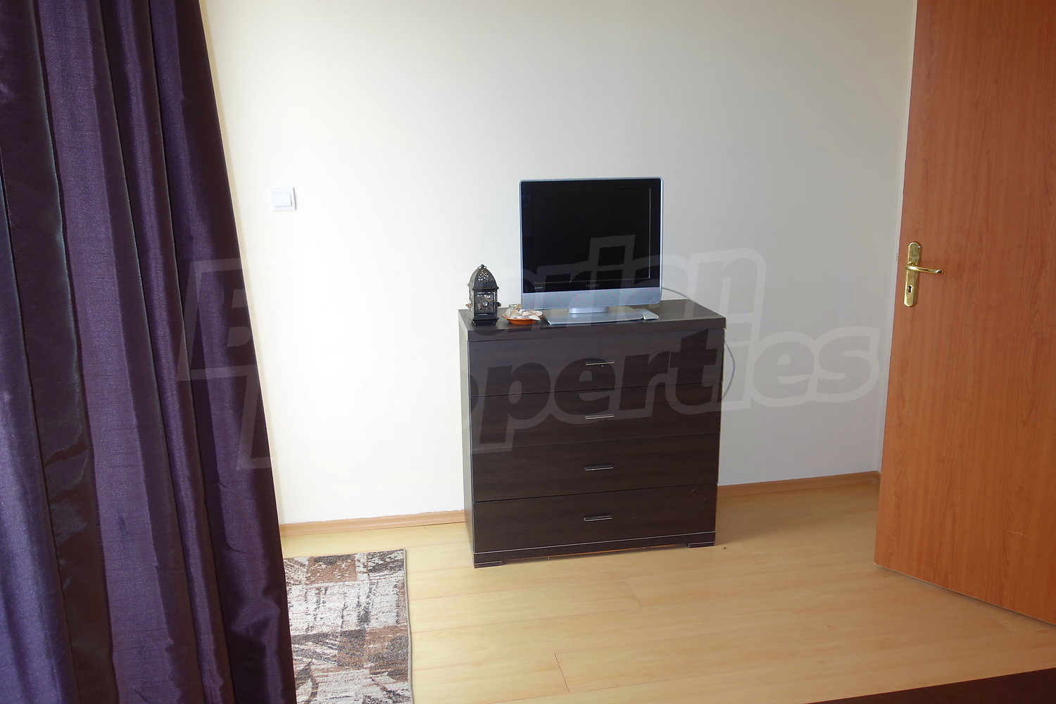 Напълно обзавежден, както е на снимките – оборудвана кухня с маса за хранене, хол с диван, голям гардероб, холна маса, холни шкафчета и телевизор, спалня с голямо легло, нощни шкафчета, гардероб и скрин. Напълно оборудвана баня с толалетна.