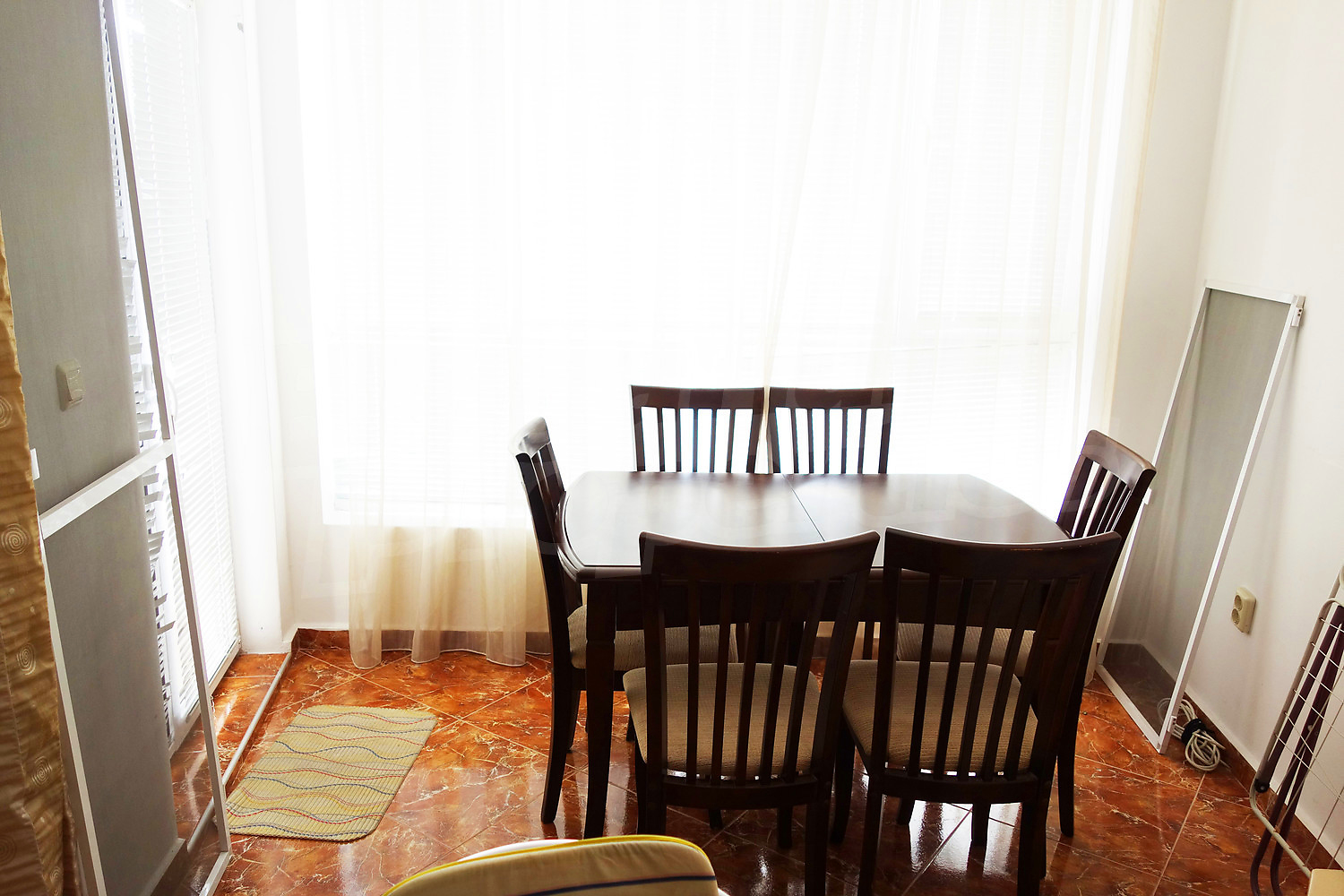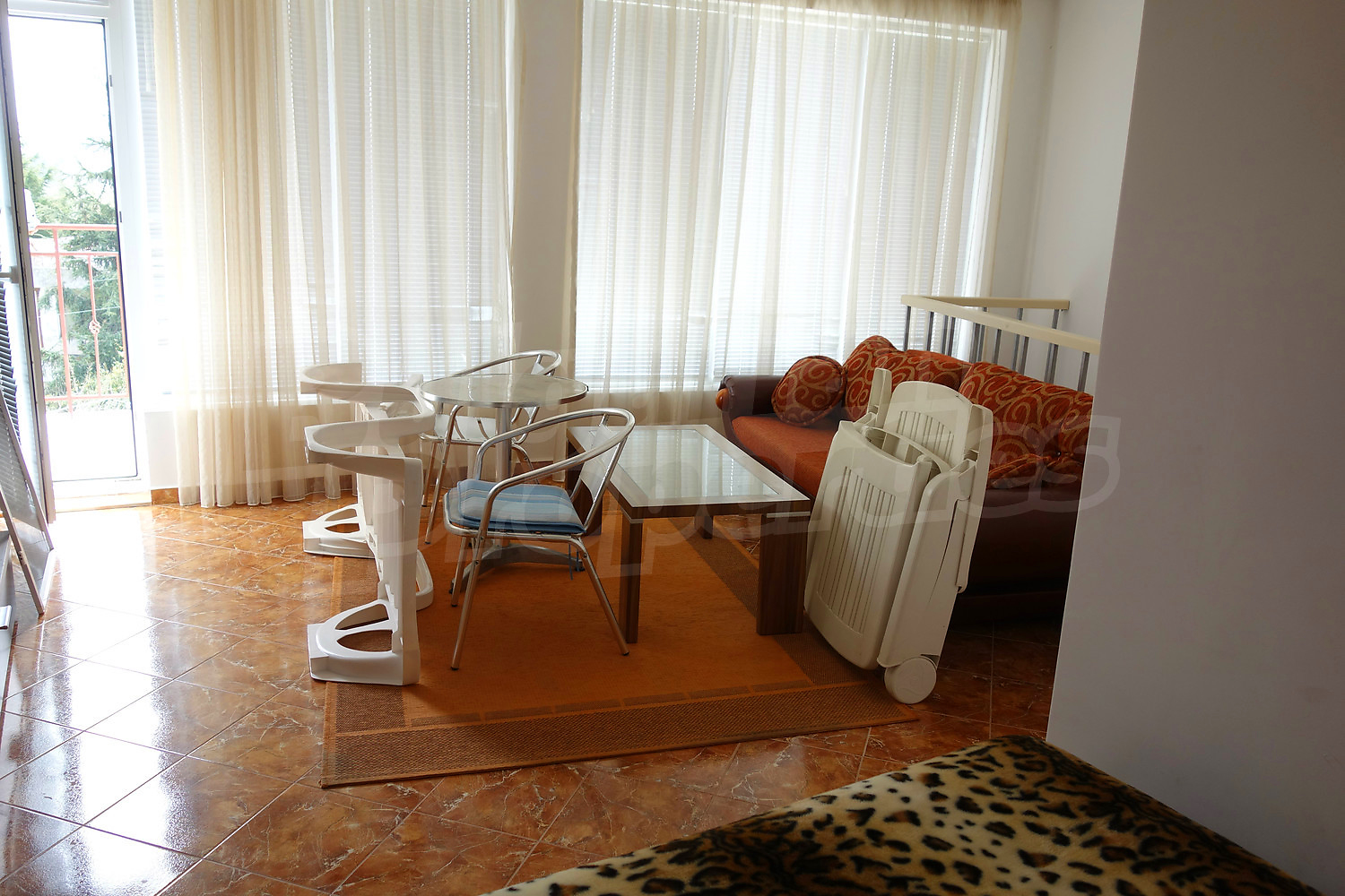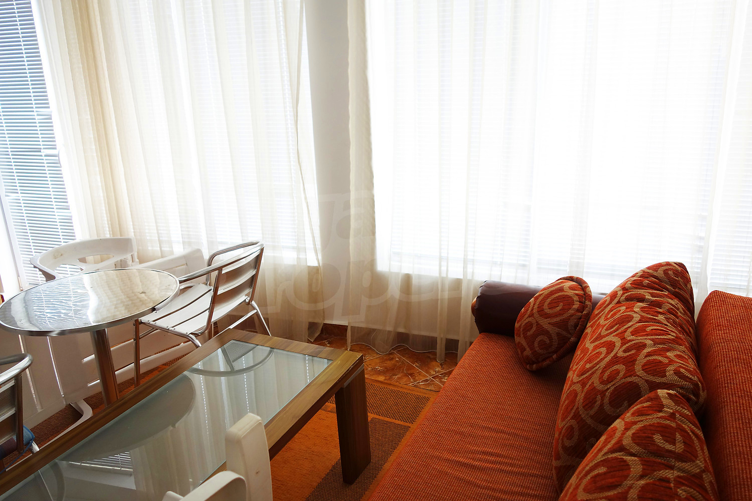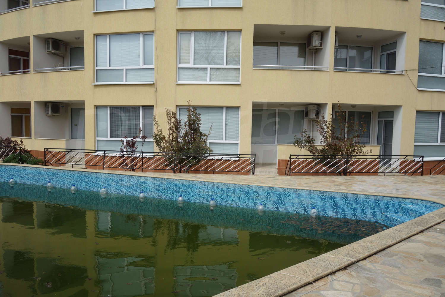 Целият апартамент е напълно обзаведен с всичко необходимо, готов е за нанасяне. В комплекса има външен басейн, барбекю, озеленено пространство, места за свободно паркиране. Годишната такса поддръжка е 6 евро /м2.