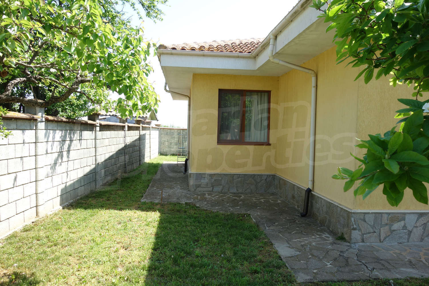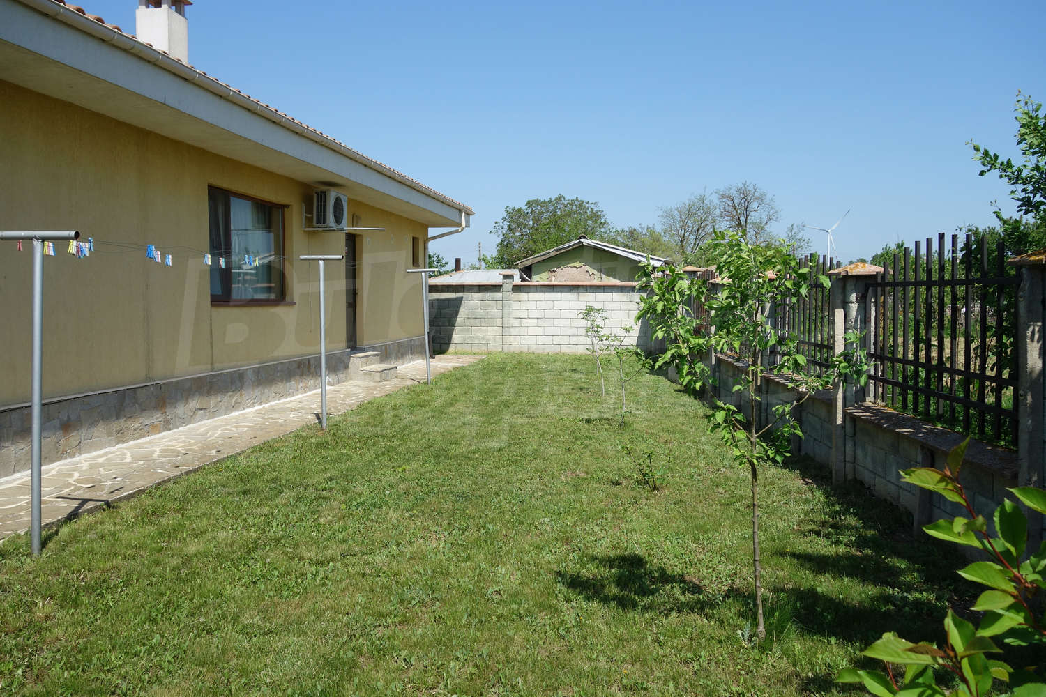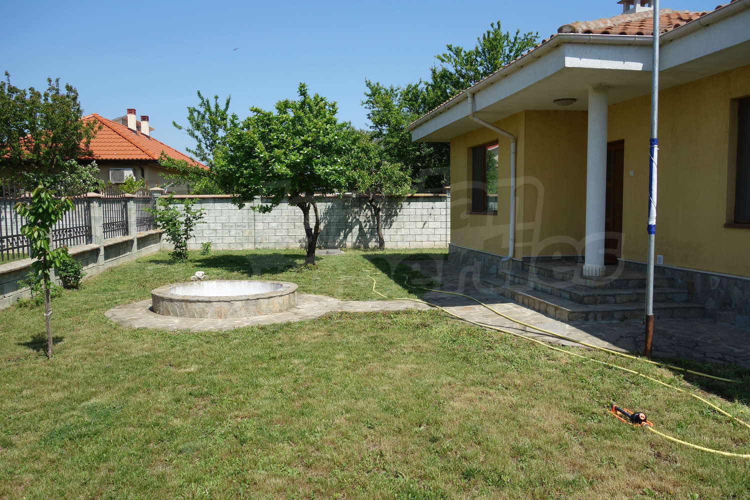 Прекрасна едноетажна къща (123 кв.м.) с веранда и барбекю и приятна гледка към добре поддържан двор (673 кв.м.), засаден с много овошки – круша, череша, смокини и др.