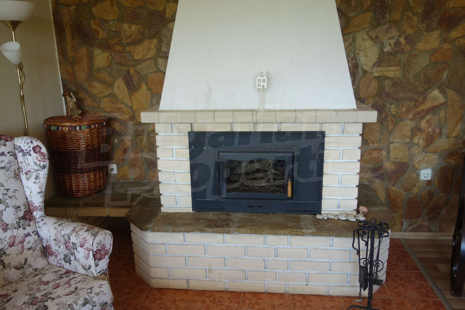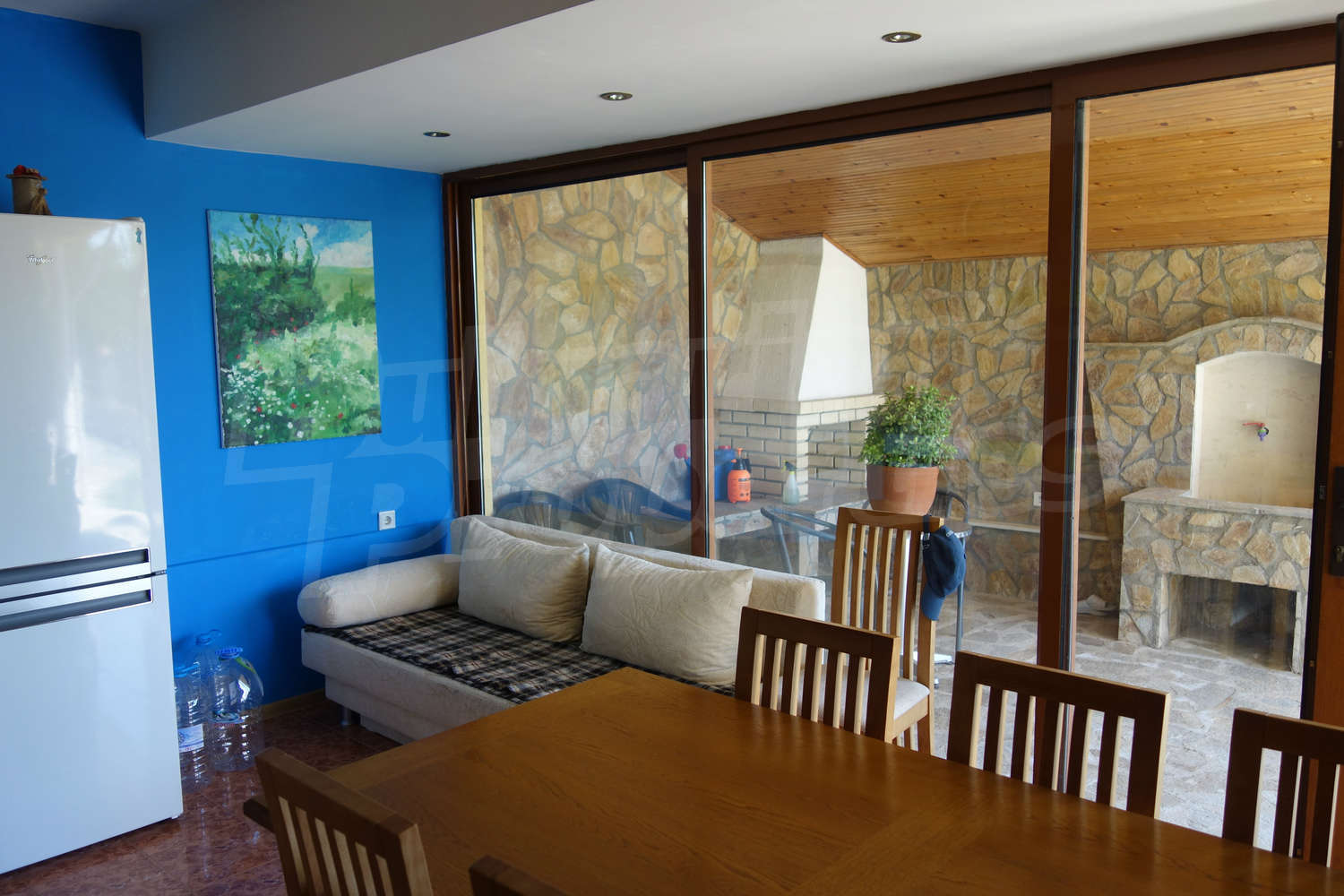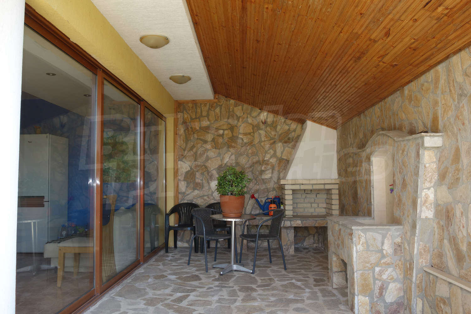 Прекрасна едноетажна къща (123 кв.м.) с веранда и барбекю и приятна гледка към добре поддържан двор (673 кв.м.), засаден с много овошки – круша, череша, смокини и др.