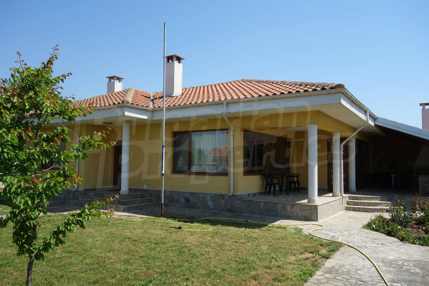 Прекрасна едноетажна къща (123 кв.м.) с веранда и барбекю и приятна гледка към добре поддържан двор (673 кв.м.), засаден с много овошки – круша, череша, смокини и др.
