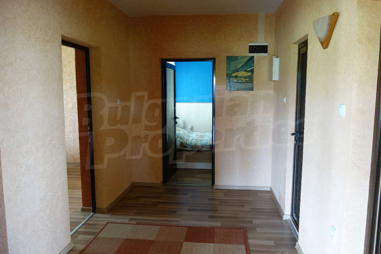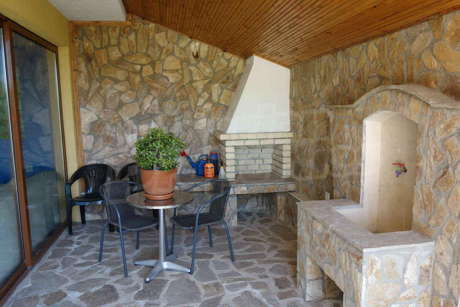 Къщата се състои от кухня, хол с камина, три спални, като една от спалните в момента се използва като втори хол, коридор, баня, оборудвана с вана, втора баня с тоалетна, складово помещение. От кухнята и хола има излаз на голямата веранда. Отоплението е с камина и климатици. Имотът се продава с цялото обзавеждане от поръчкови мебели, както е на снимките. В цялата къща могат да се видят картини, рисувани лично от собственичката. Описваната къща с двор предлага отлични условия за целогодишно живеене и почивка, сред спокойната селска идилия и лесен достъп до златистите плажове на нашето Черноморие.