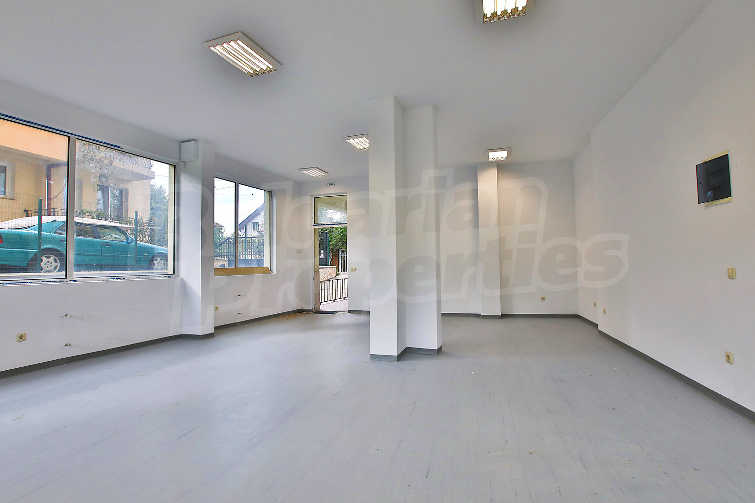 Имотът (159.29 кв.м.) е на две нива, разположен на партера в нова сграда от 2012 година. На първото ниво има голямо и просторно помещение с високи тавани и гледка към вътрешен двор, а на подземното ниво - помещение и санитарен възел. Отоплението е решено чрез локално парно на газ. Имотът е снабден със СОТ. Цената е без ДДС, с минимален период за наемане от 1 година.