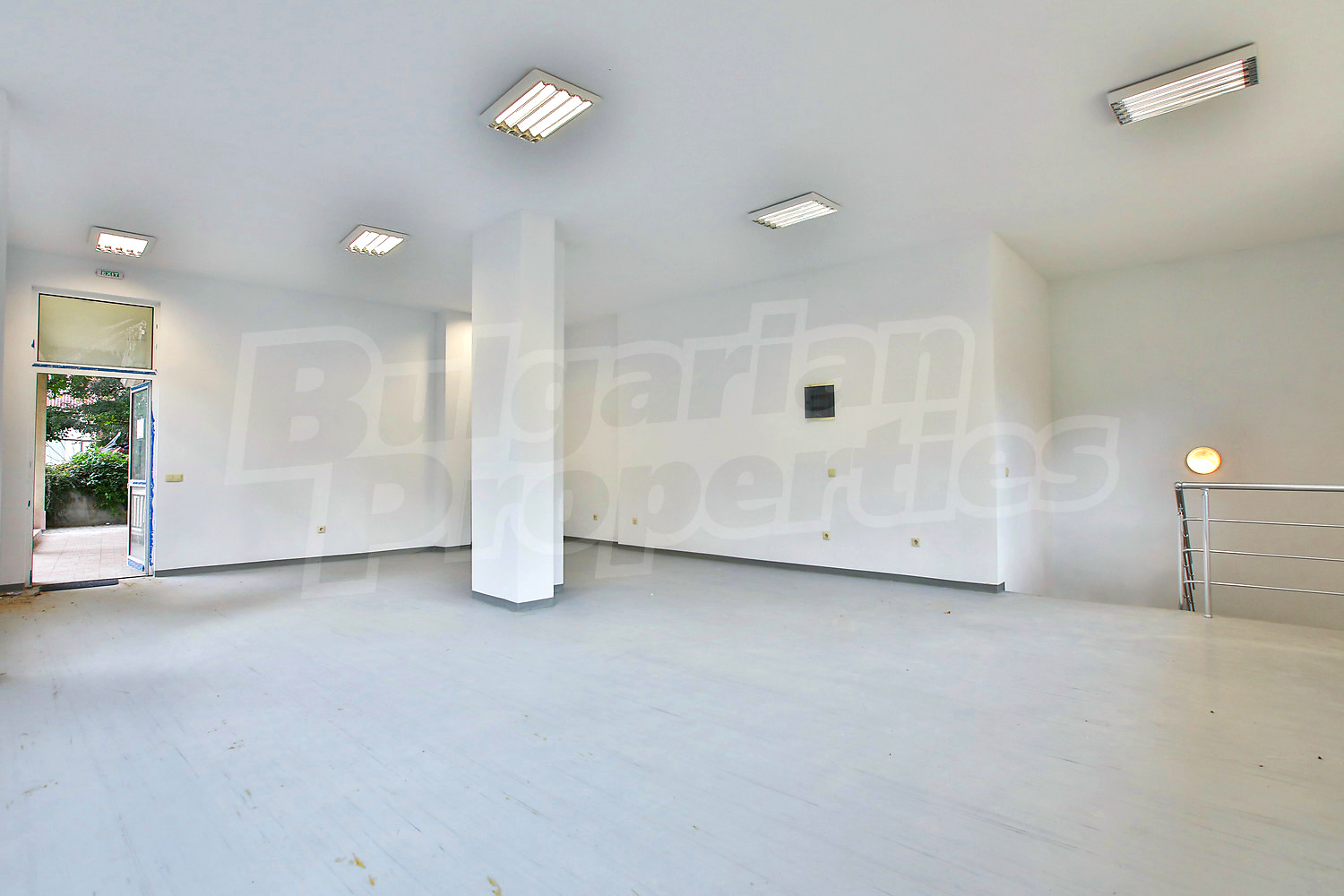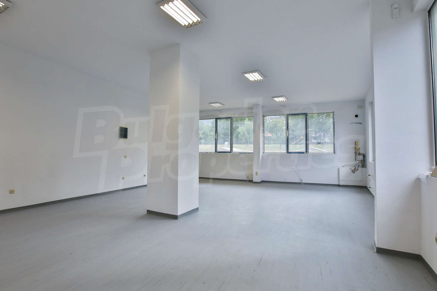 Имотът (159.29 кв.м.) е на две нива, разположен на партера в нова сграда от 2012 година. На първото ниво има голямо и просторно помещение с високи тавани и гледка към вътрешен двор, а на подземното ниво - помещение и санитарен възел. Отоплението е решено чрез локално парно на газ. Имотът е снабден със СОТ. Цената е без ДДС, с минимален период за наемане от 1 година.
