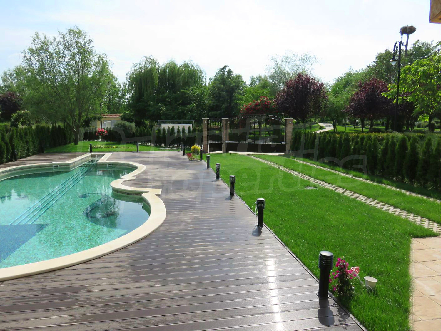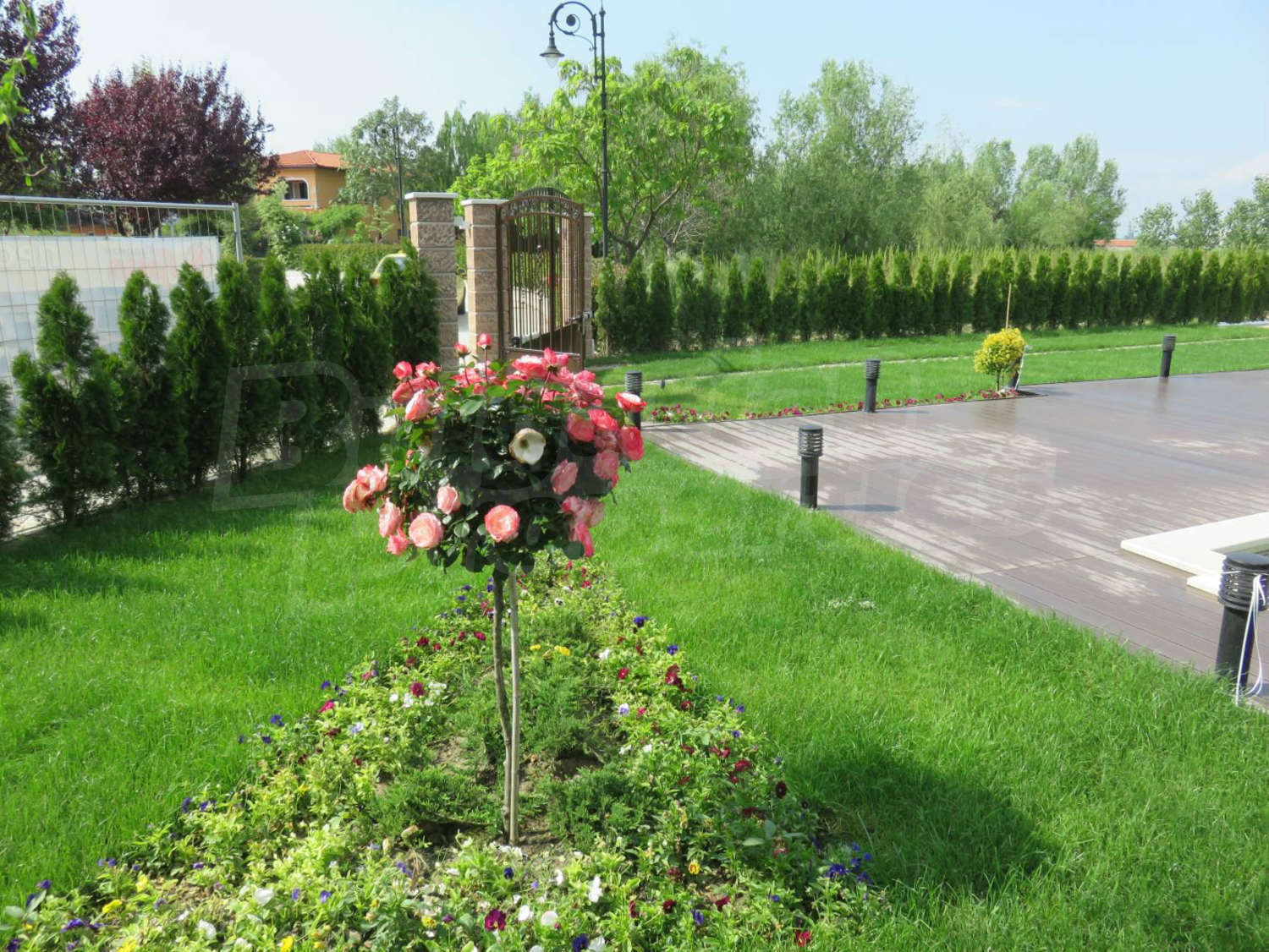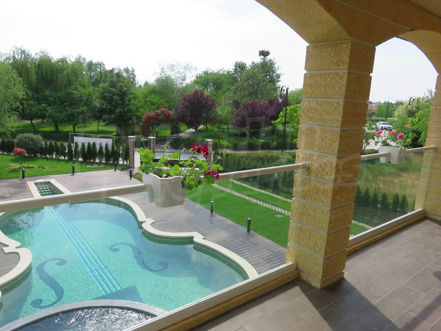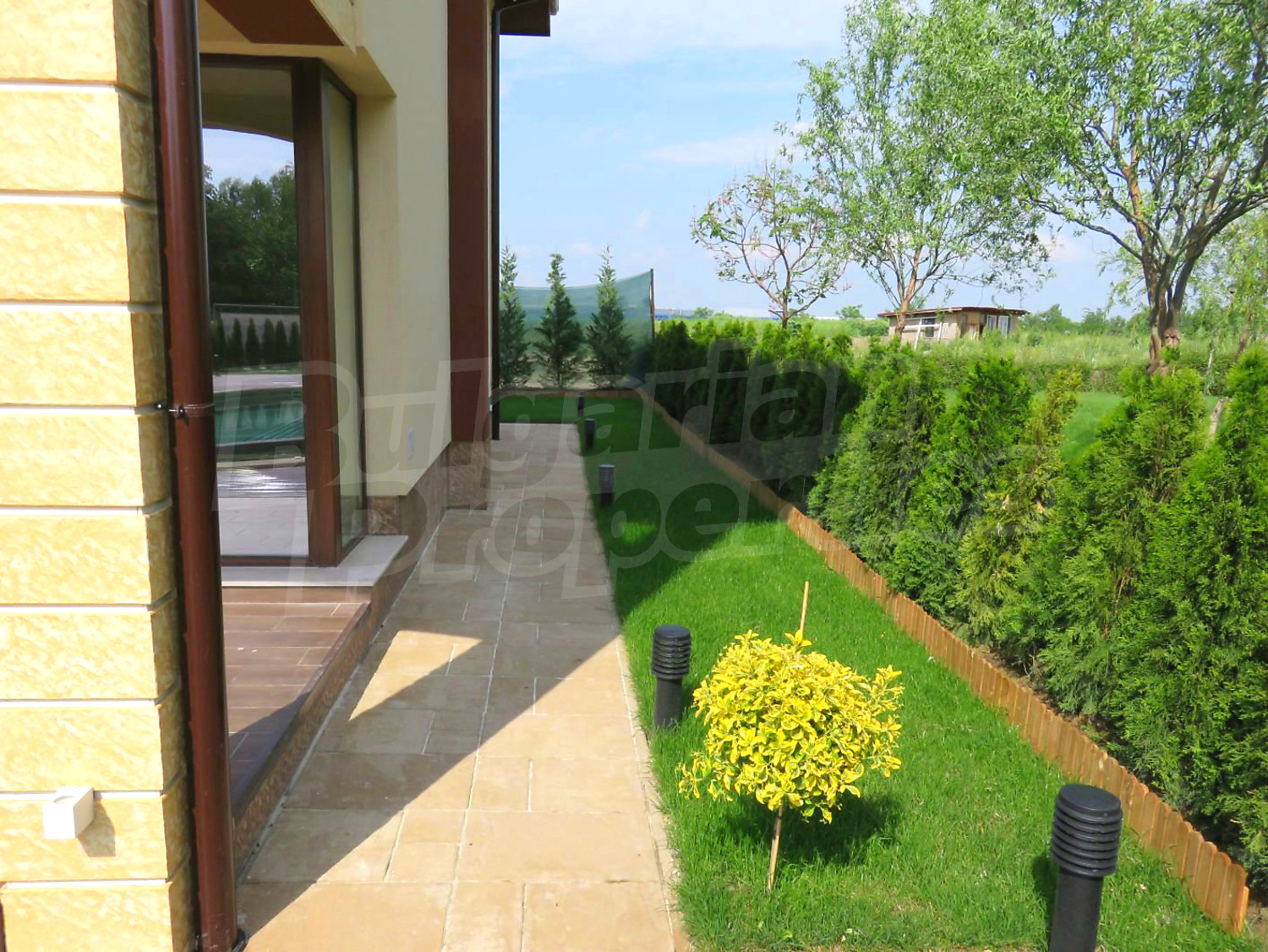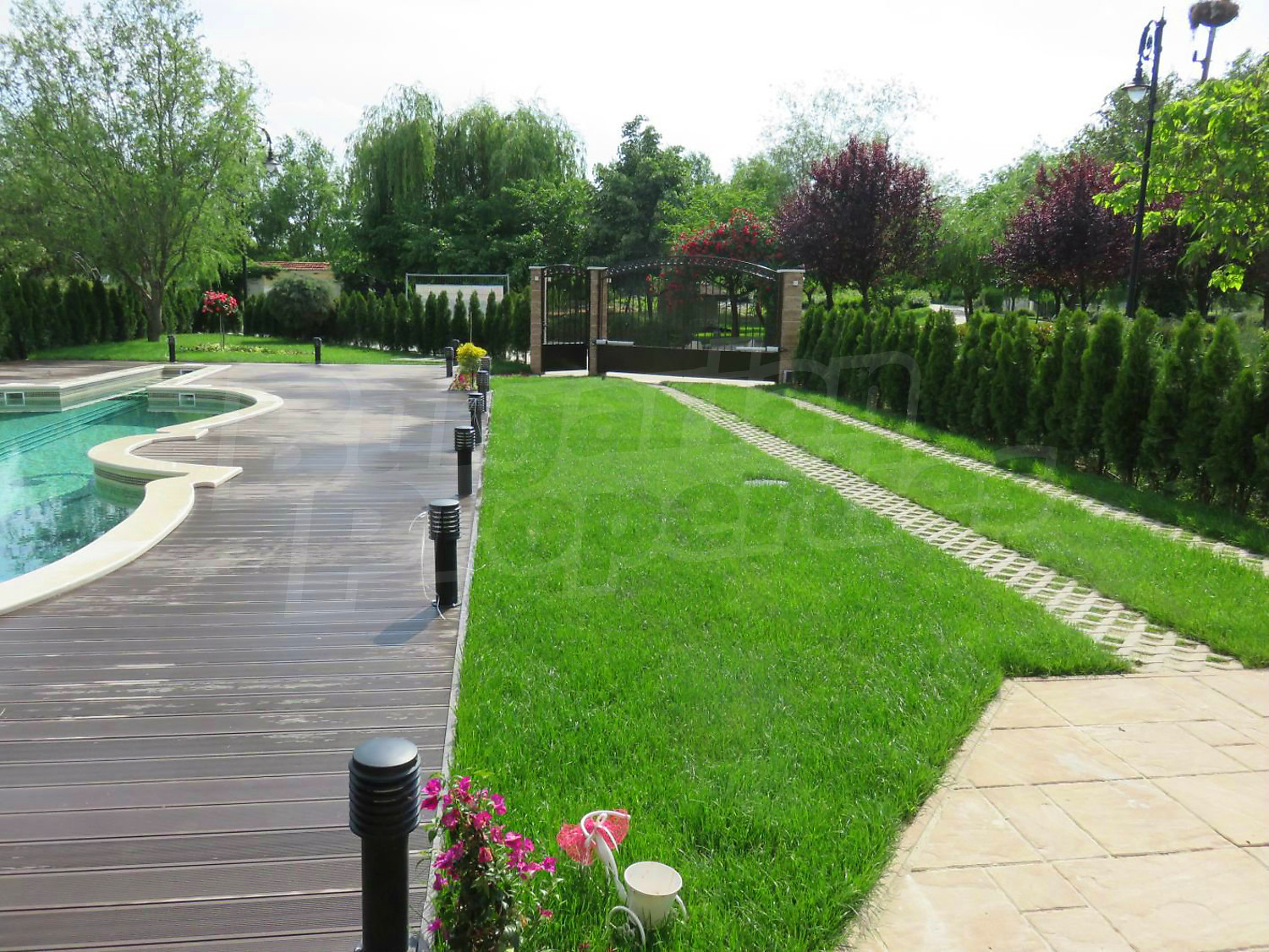 Луксозният имот е проектиран с цел да създаде удобство, уют и спокойствие, като същевременно дава възможност за много различни дизайнерски решения при интериорното завършване. Дворната част е покрита с настилка от павета SEMMELROCK, а около басейна - с Decking.