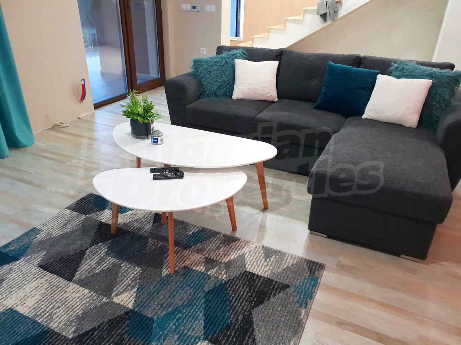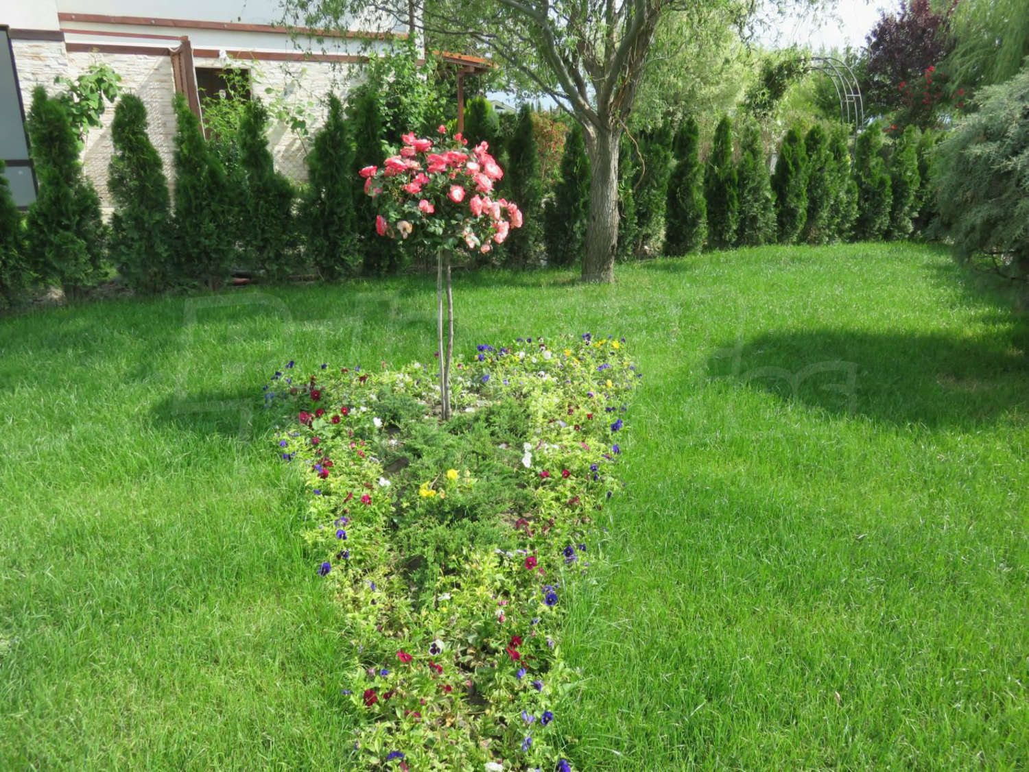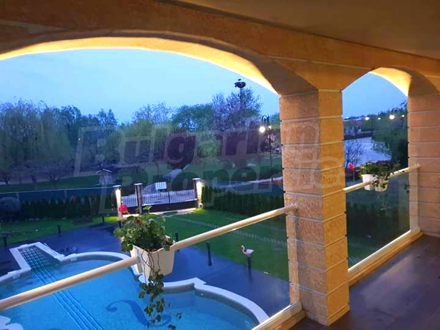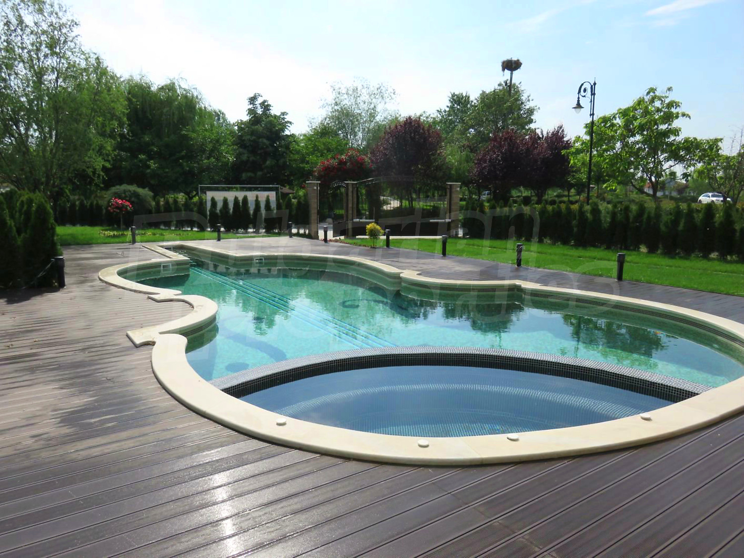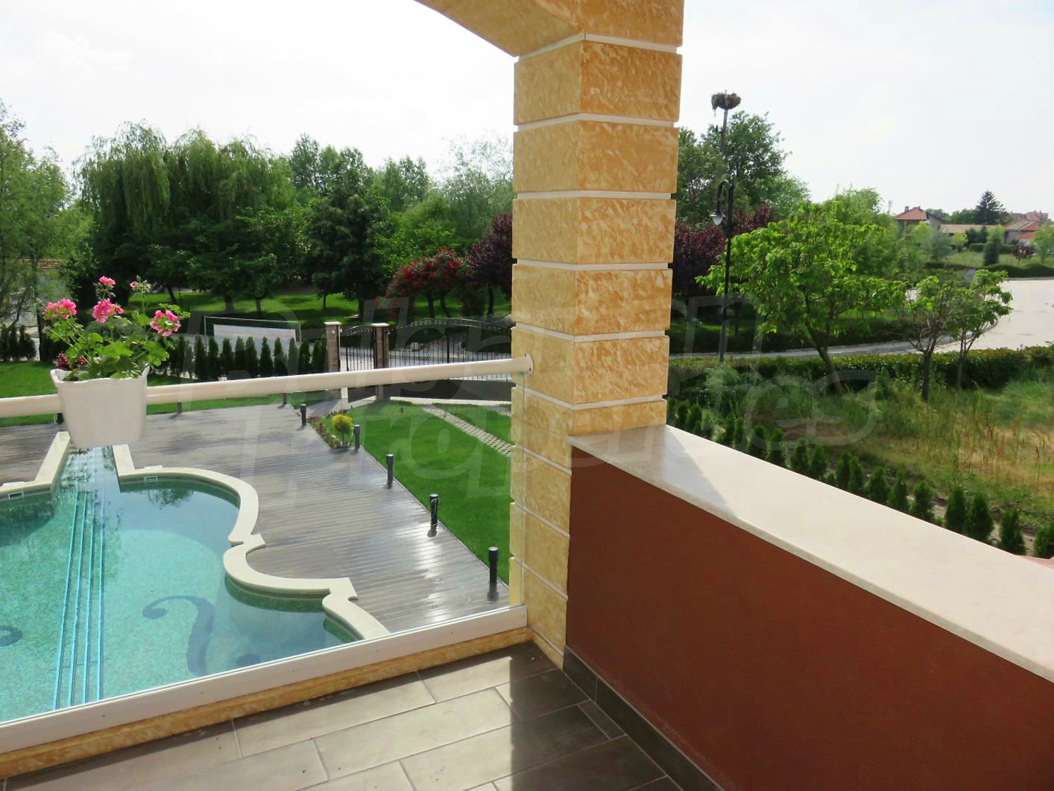 Луксозният имот е проектиран с цел да създаде удобство, уют и спокойствие, като същевременно дава възможност за много различни дизайнерски решения при интериорното завършване. Дворната част е покрита с настилка от павета SEMMELROCK, а около басейна - с Decking.