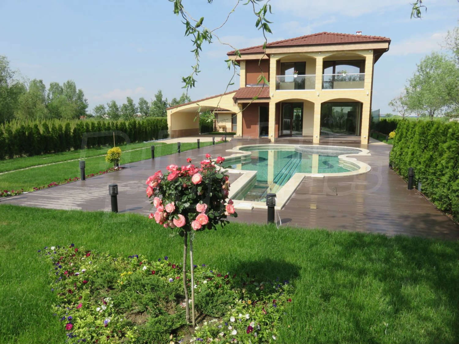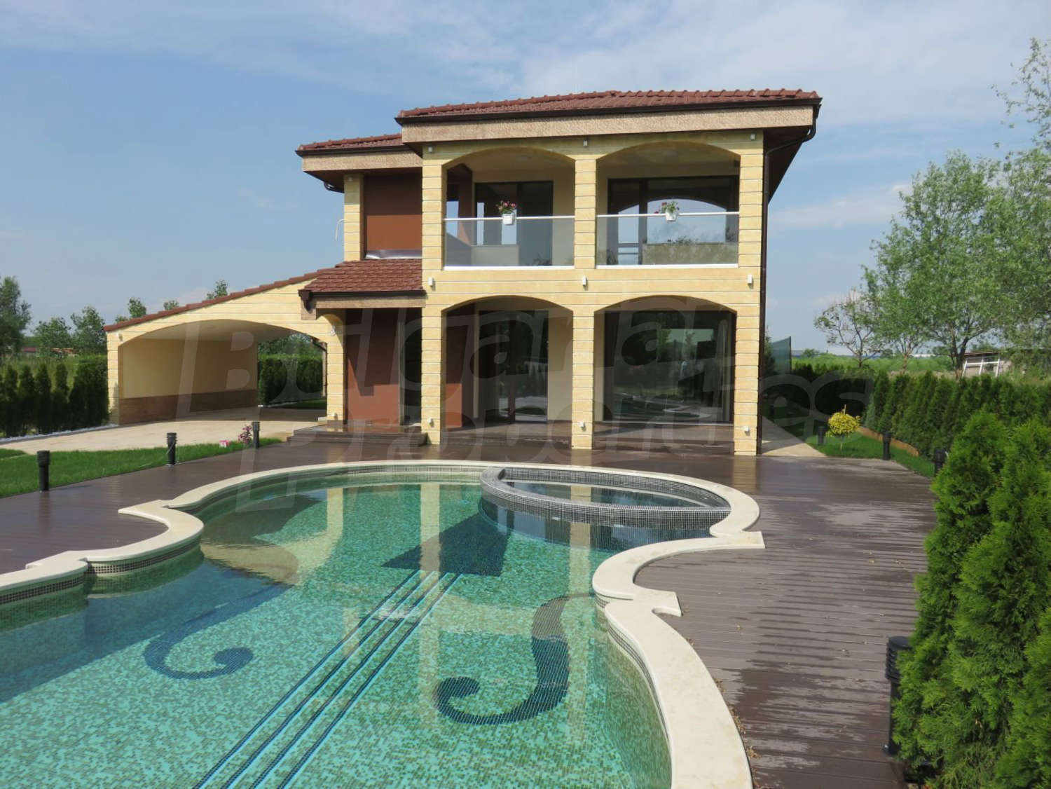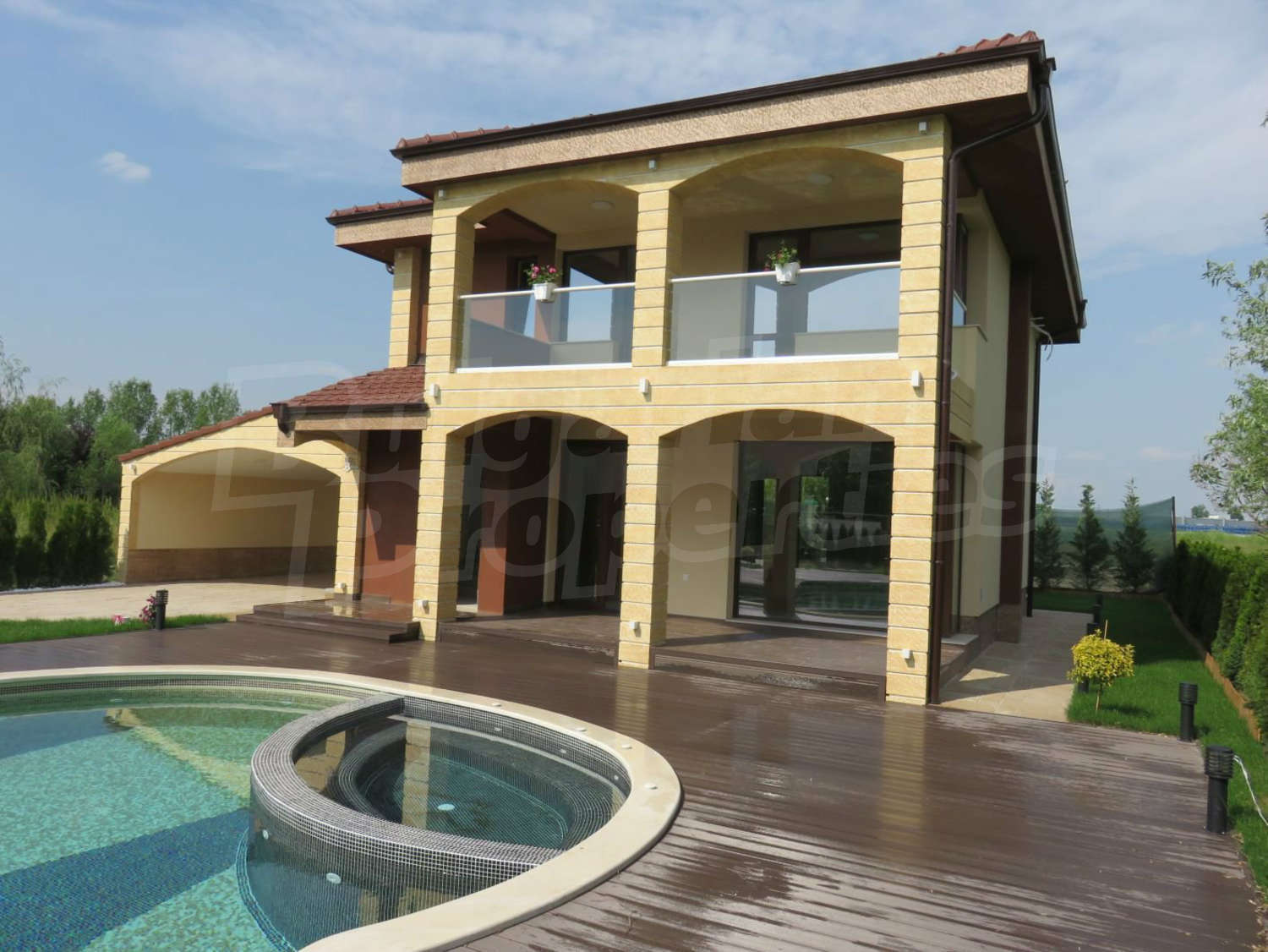 Близо до гр. ПловдивМодерно обзаведена къща с двор, двоен гараж и басейн на 5 км от Пловдив
