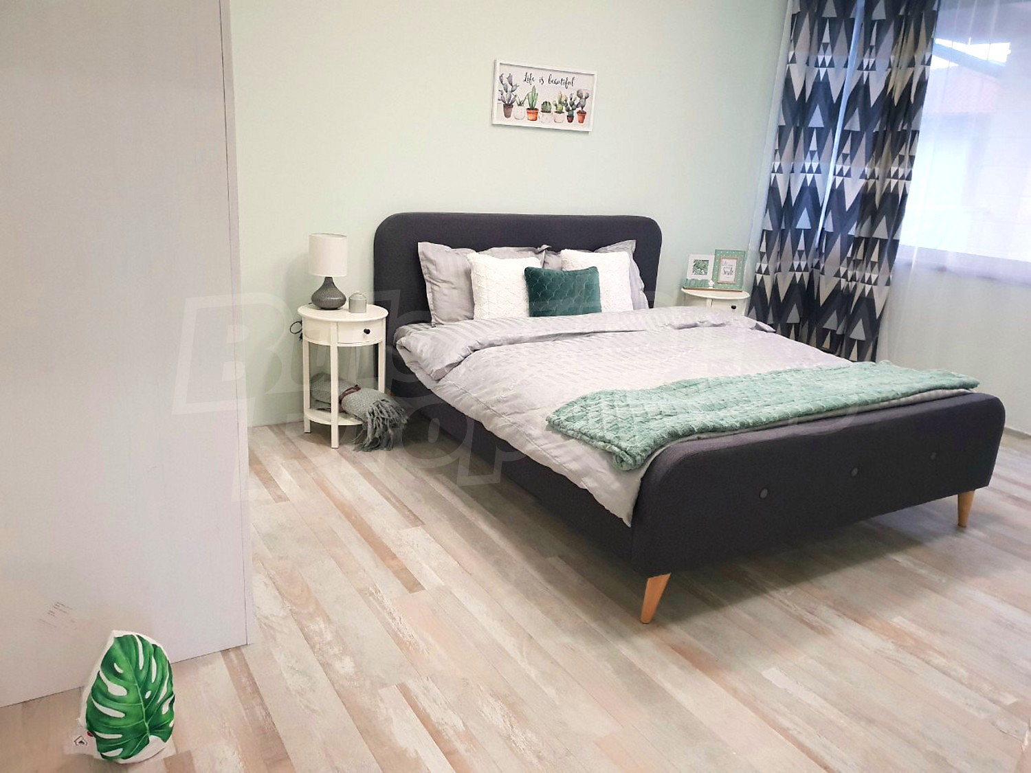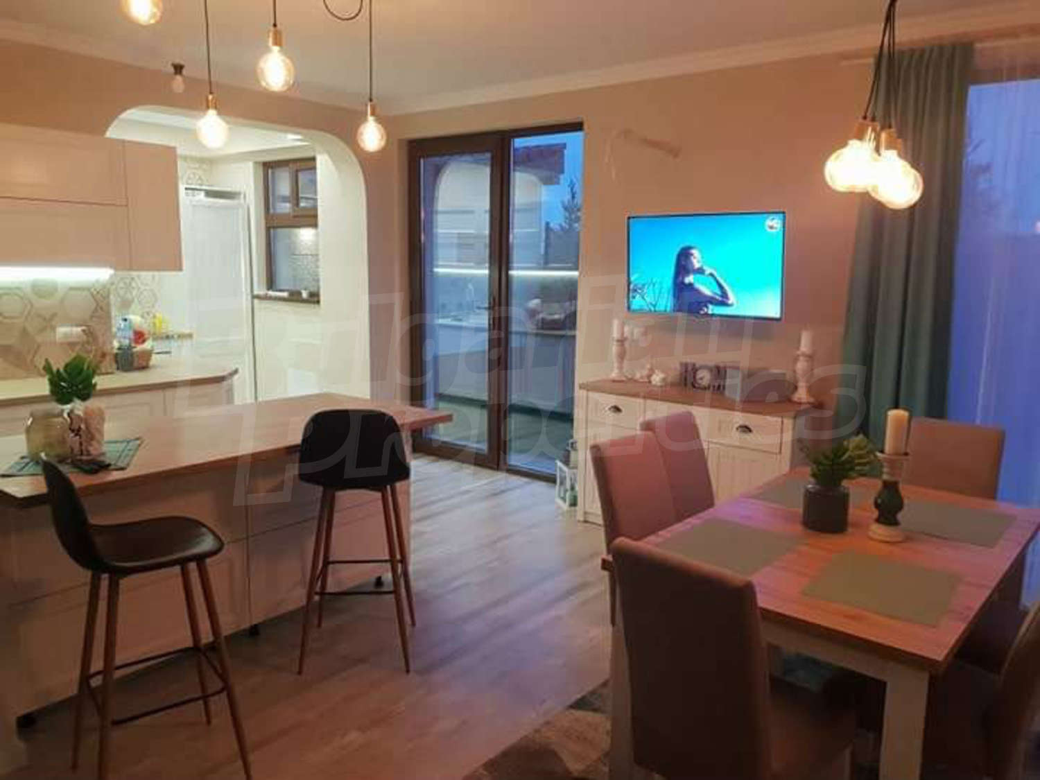 • просторна дневна с кухненски кът с излаз на панорамна веранда, перално помещение и санитарен възел;