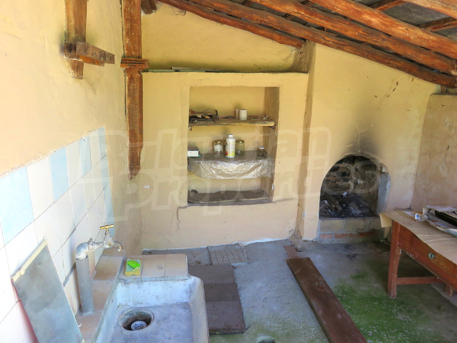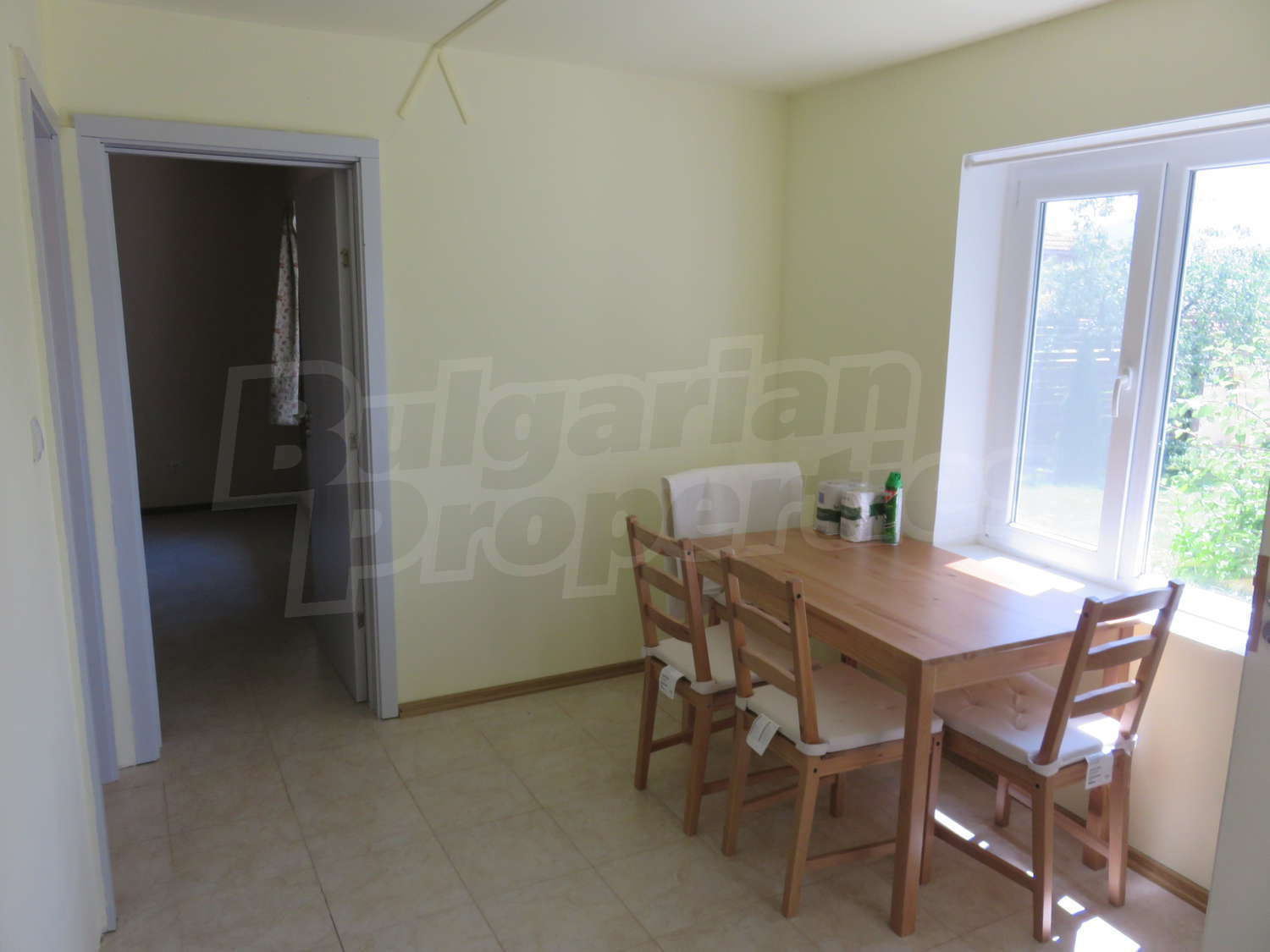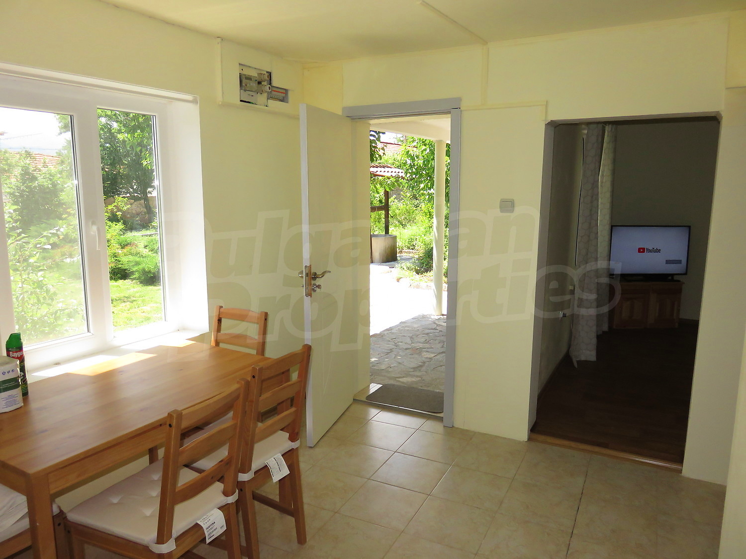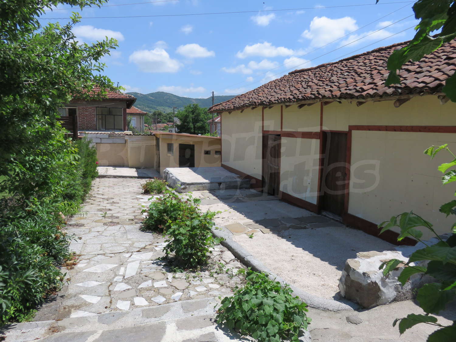Към нея има залепена друга постройка с кухня, спалня, баня. Имотът се предлага след ремонт, със следната степен на завършеност: PVC дограма, подове с теракот и стени - тухла и камък, боядисани с латекс, с вътрешна изолация. По отношение на мебели и оборудване налични са: вградена кухня. Имотът е снабден с електричество, вода и канализация. Имотът разполага с гараж.