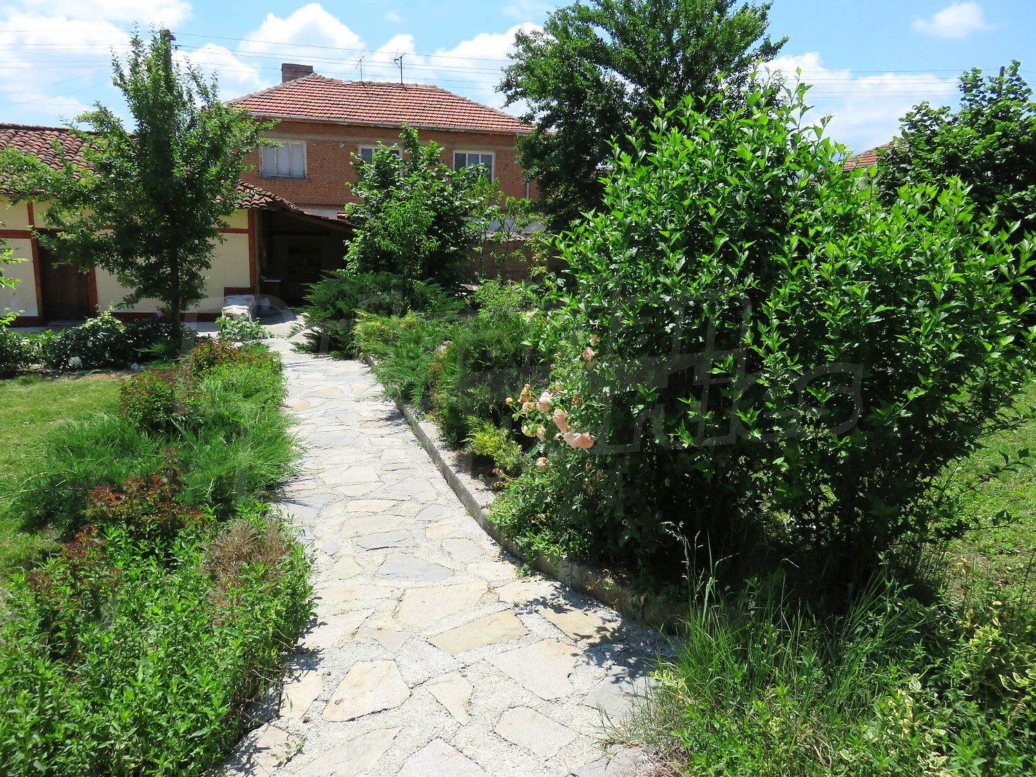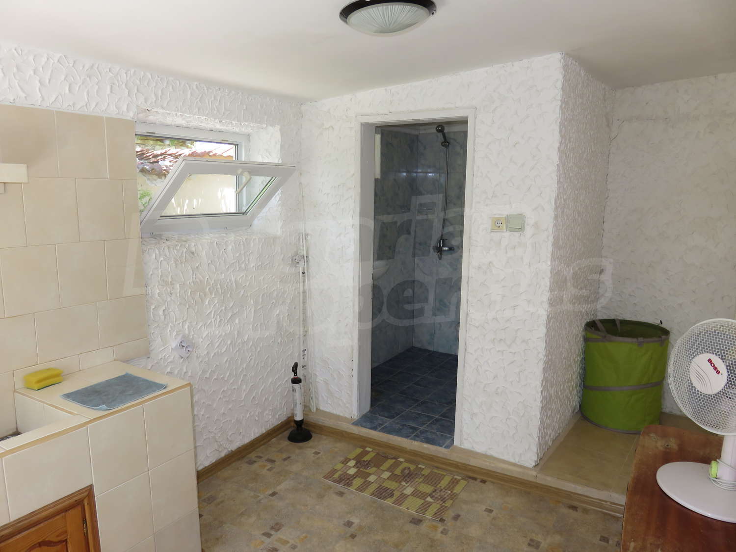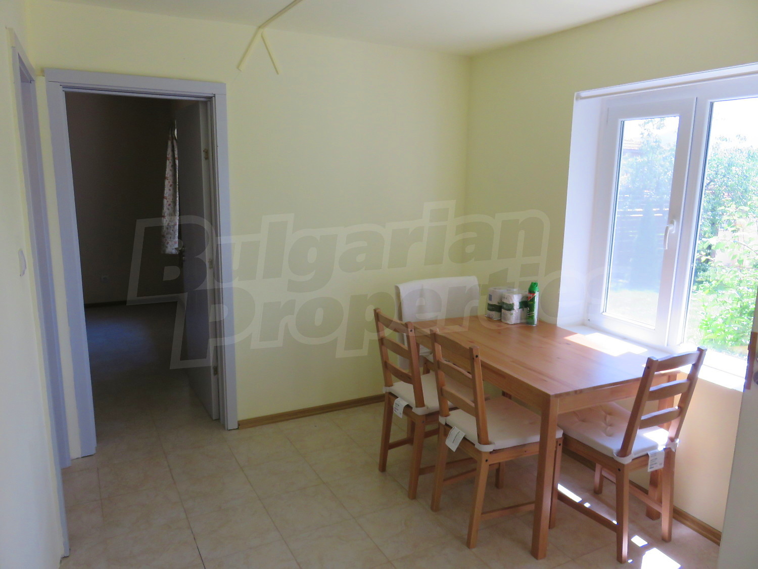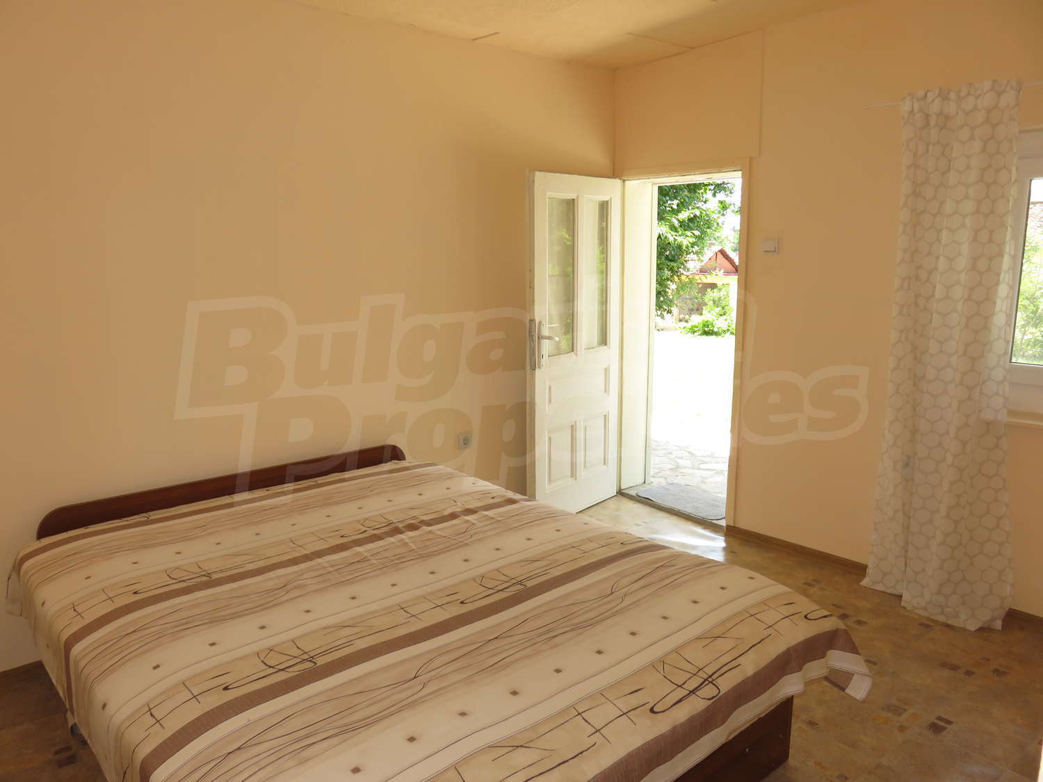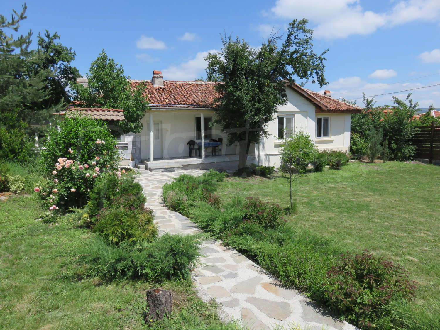 Към нея има залепена друга постройка с кухня, спалня, баня. Имотът се предлага след ремонт, със следната степен на завършеност: PVC дограма, подове с теракот и стени - тухла и камък, боядисани с латекс, с вътрешна изолация. По отношение на мебели и оборудване налични са: вградена кухня. Имотът е снабден с електричество, вода и канализация. Имотът разполага с гараж.