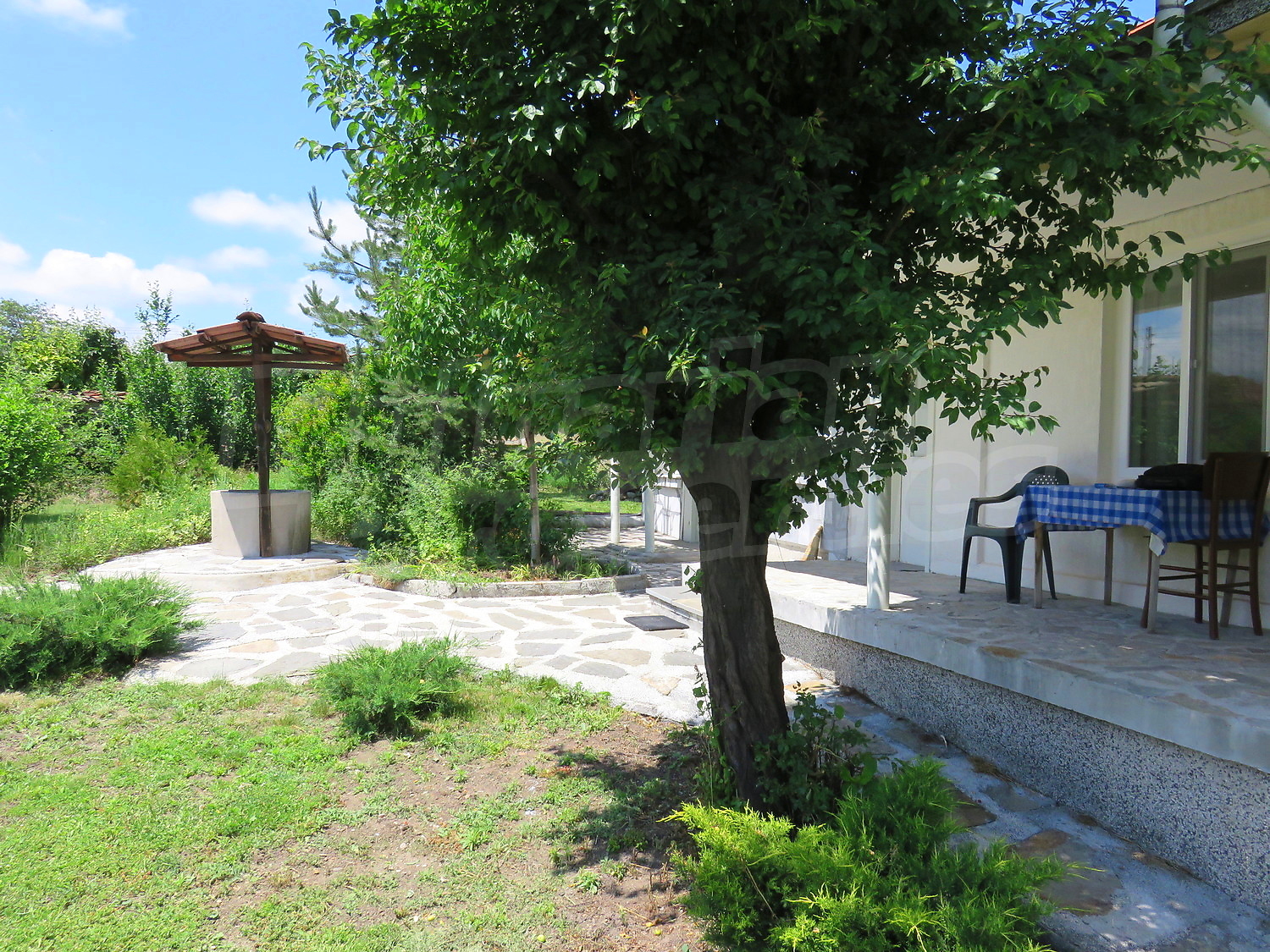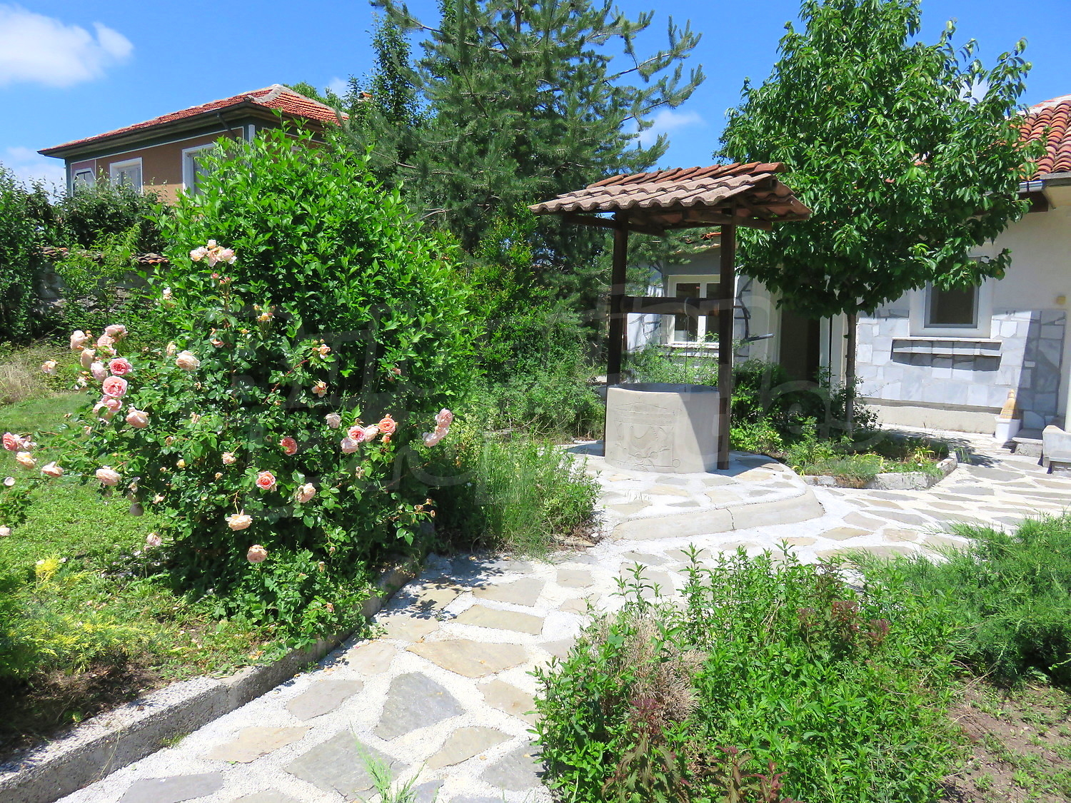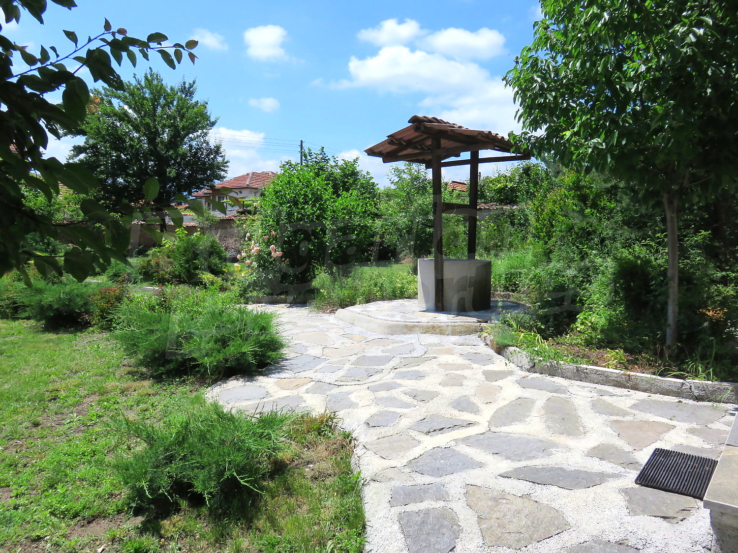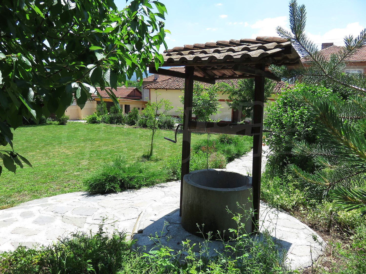 Дворът е с площ от 920 кв.м. и е добре поддържан, засаден с плодни дървета. Има кладенец и помпа с хидрофор, и външна тоалетна вкарана в канализацията.