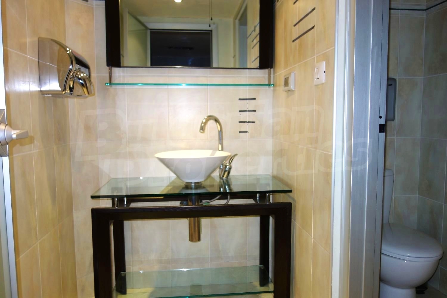 Бизнес помещението е качествено завършено с подови настилки теракот и гранитогрес. Дограмата е PVC, отоплението е на климатици.