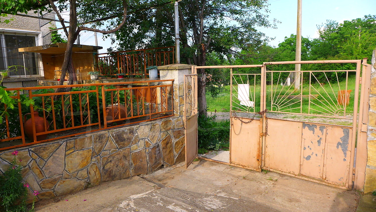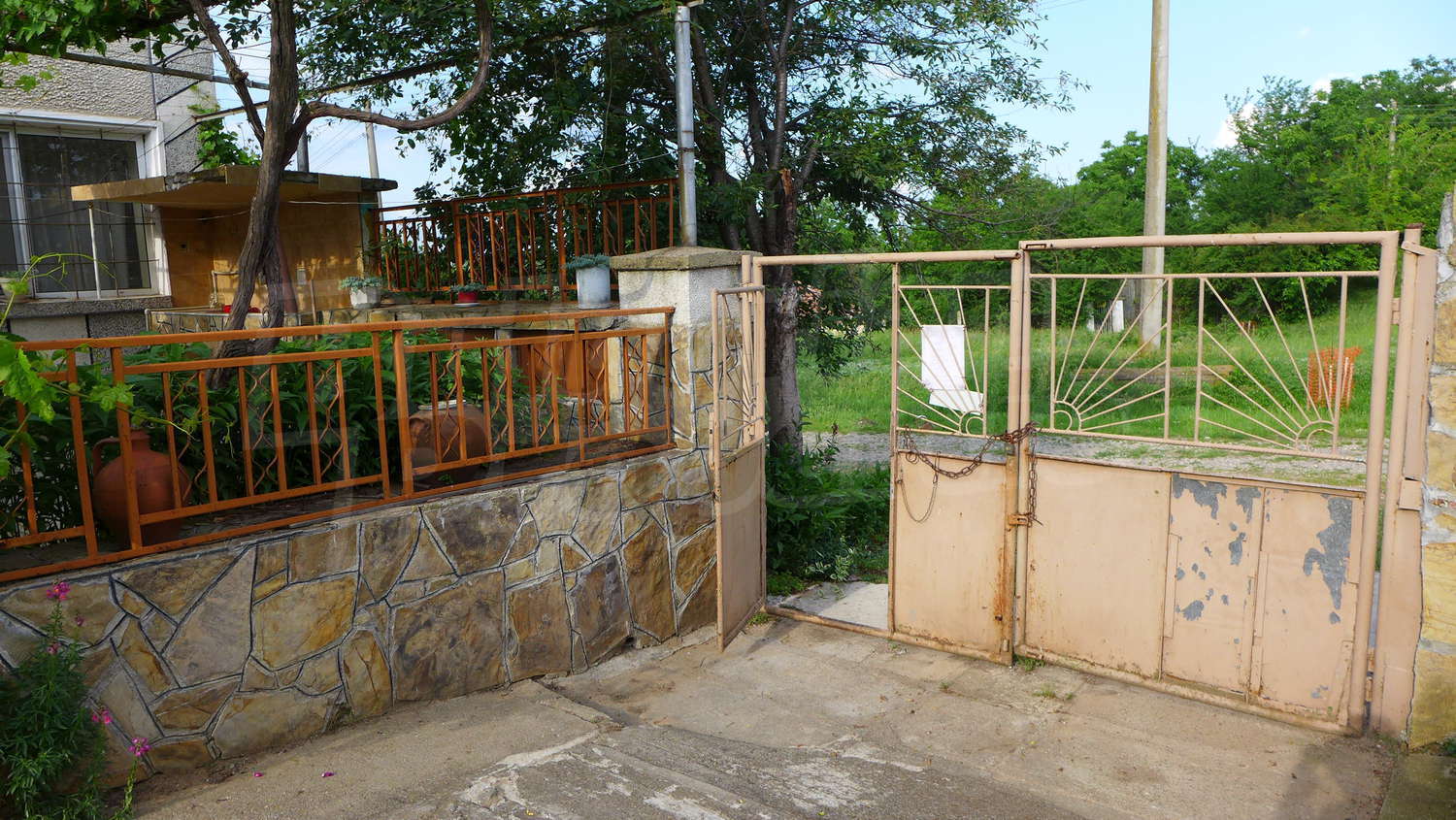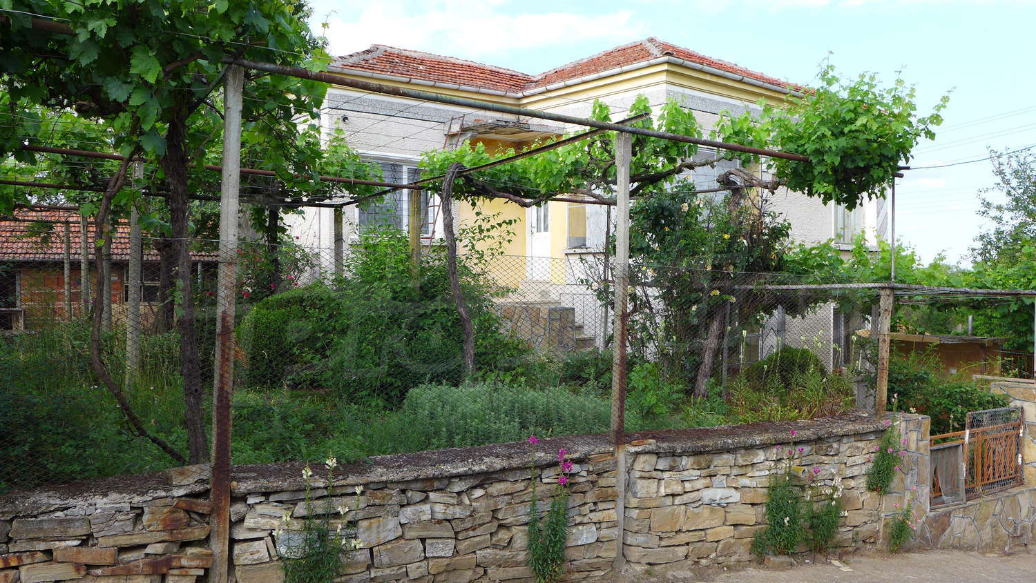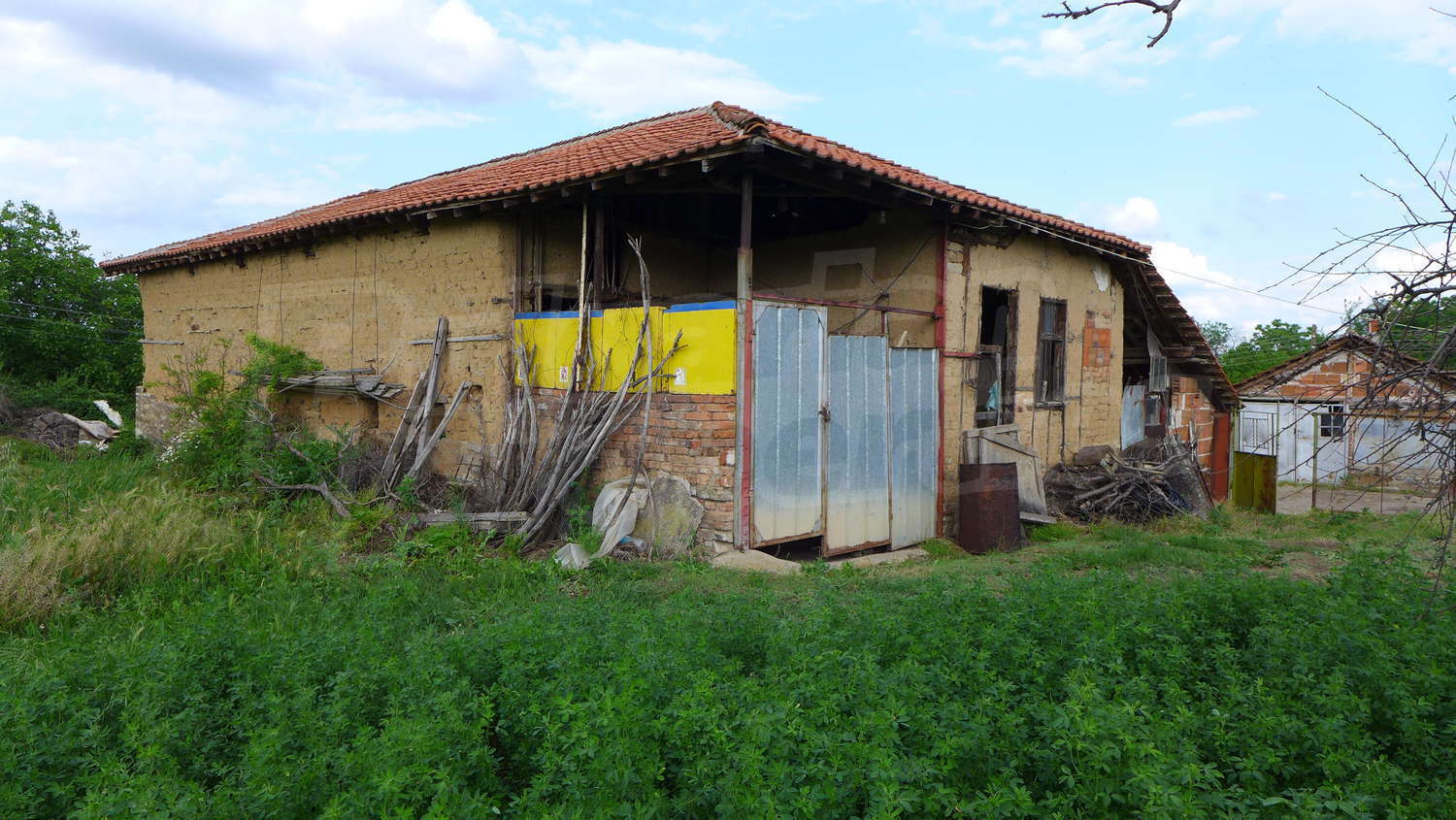 Предлагаме на вашето внимание къща в спокойно село, с площ 125 кв.м и голяма градина с обща площ 3463 кв. м. Към имота има и две големи стопански постройки. Жилищната площ на първи етаж е разпределена между два отделни входа, антре, коридор, 2 стаи, баня, тоалетна и склад. Външни стълби водят към втори етаж. Тук разпределенито е между коридор и 3 спални. Къщата има и мазе 16 кв. м. Имотът се предлага със следната степен на завършеност: дървена дограма, масивни стени и подове с дюшеме и замазка. Имотът е снабден с електричество и питейна вода. На около 200 метра от границите на имота тече и малка река, която е приятно място за разходки и риболов.