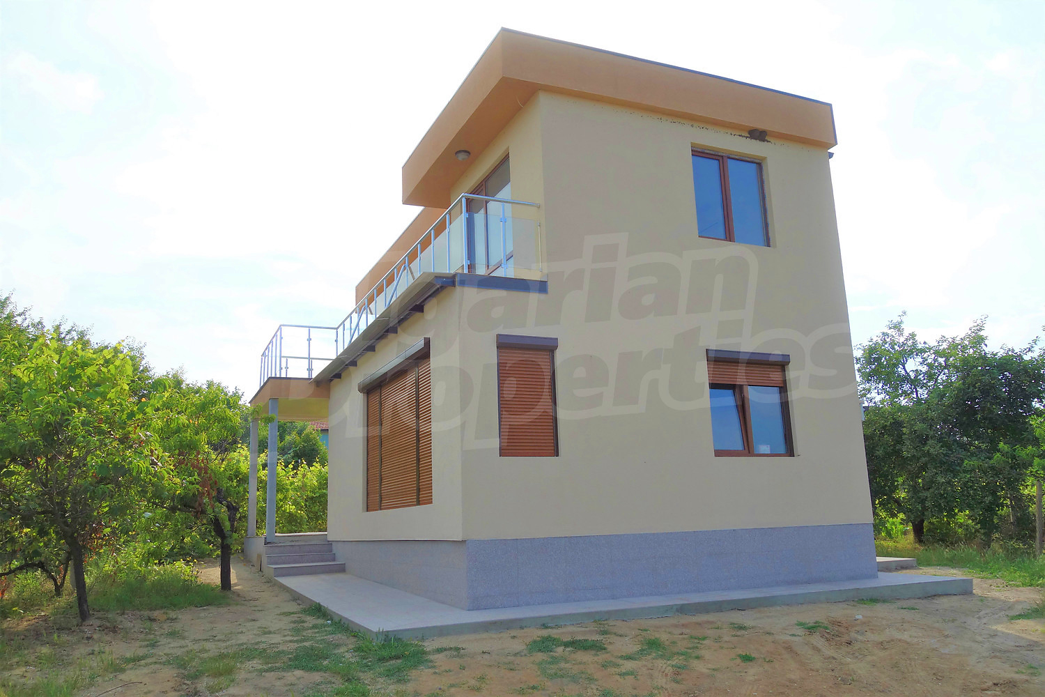 Къщата е изградена от бетонна основа, метална конструкция, аквапанели, 8 см. външна изолация, вътрешна изолация и гипскартон. Завършена е с 5-камерна ПВЦ дограма и нова септична яма 27 м3, с одобрение от ВиК. Завършена е до ключ с частично обзавеждане, което може да разгледате на снимките.