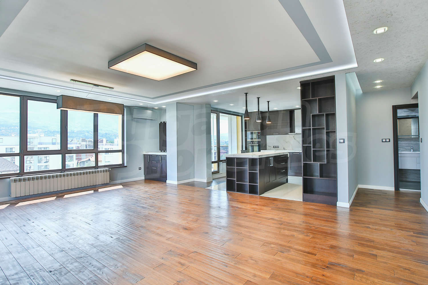 Жилището заема пети надпартерен етаж от общо шест, сградата разполага с асансьор. Изложението е юг-изток,с разкриващи се уникални гледки към планината. Имотът се предлага с висококачествето изпълнение на довършителните работи, с отличаващи се стилни интериорни линии, придаващи цялостен елегантен вид: