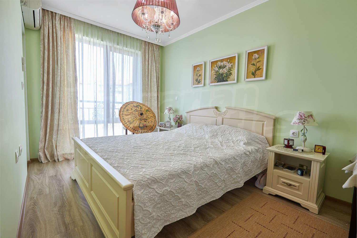 Елегантно завършен тристаен апартамент на метри от яхтеното пристанище Марина Диневи в Свети Влас, на 450 м от плажа, на 300 м от автобусна спирка, на 40 км от летище Бургас. Имотът е част от добре поддържан малък комплекс (2007 година) с минимална такса поддръжка - 200 Евро на година, разполагащ с открит плувен басейн и зелени площи.