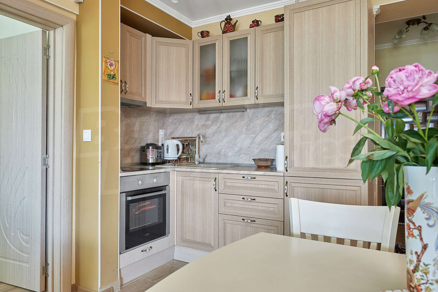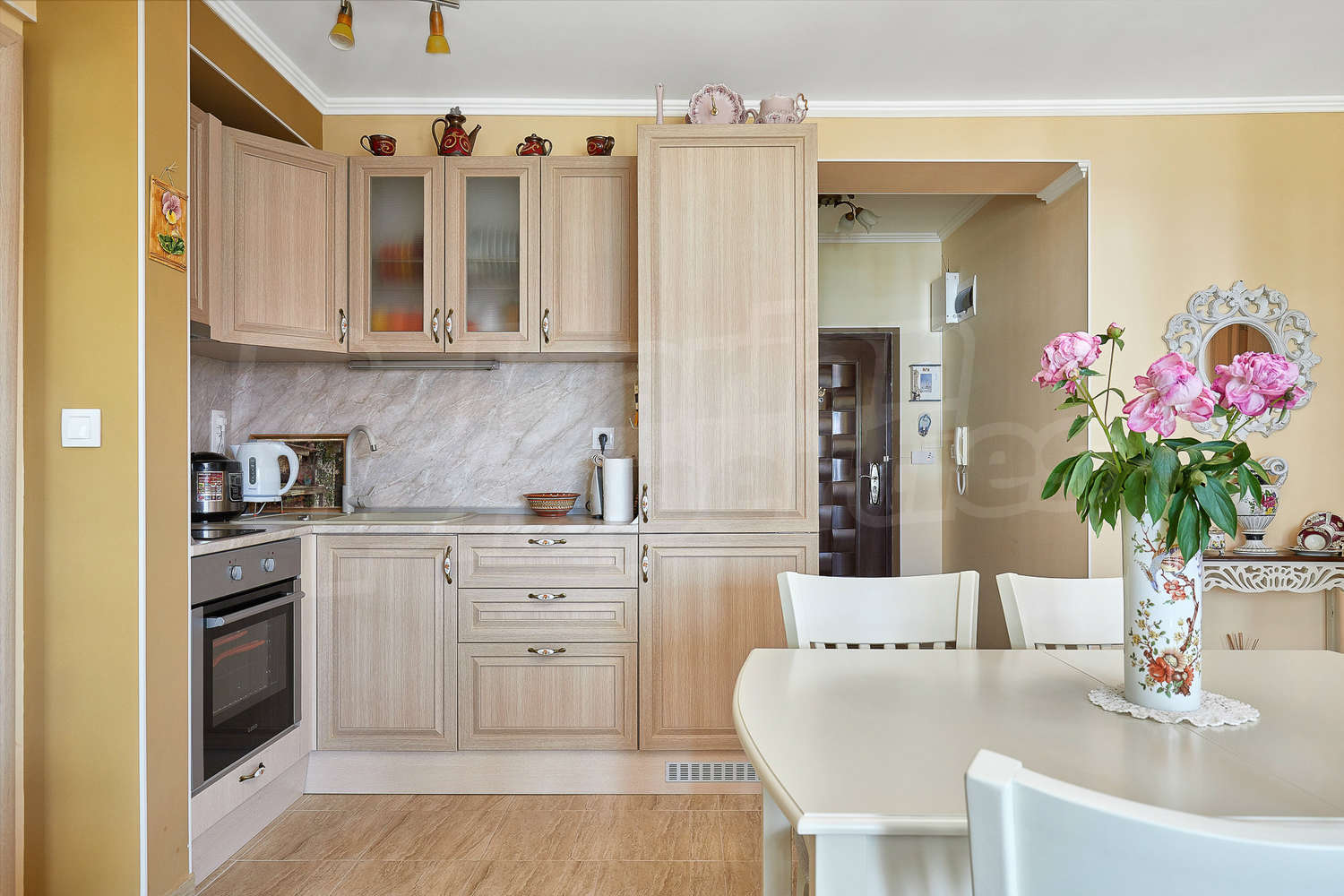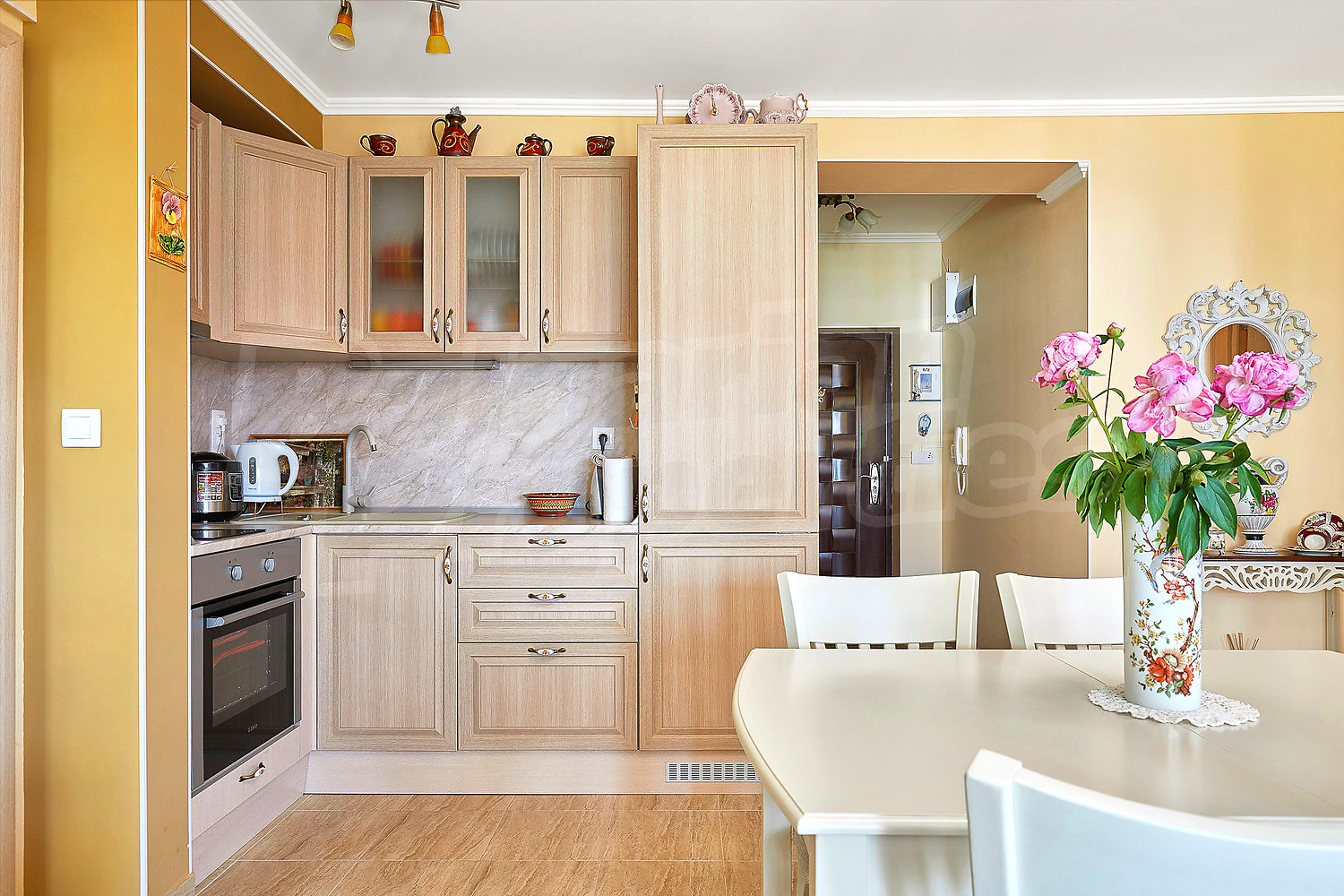 Подовите настилки са с ламинат и теракот, стени – латекс, ПВЦ дограми. Отоплението и охлаждане е с климатици. Жилището разполага с кабелна телевизия и интернет. Стилното обзавеждане и висок клас оборудване може да разгледате на снимките.