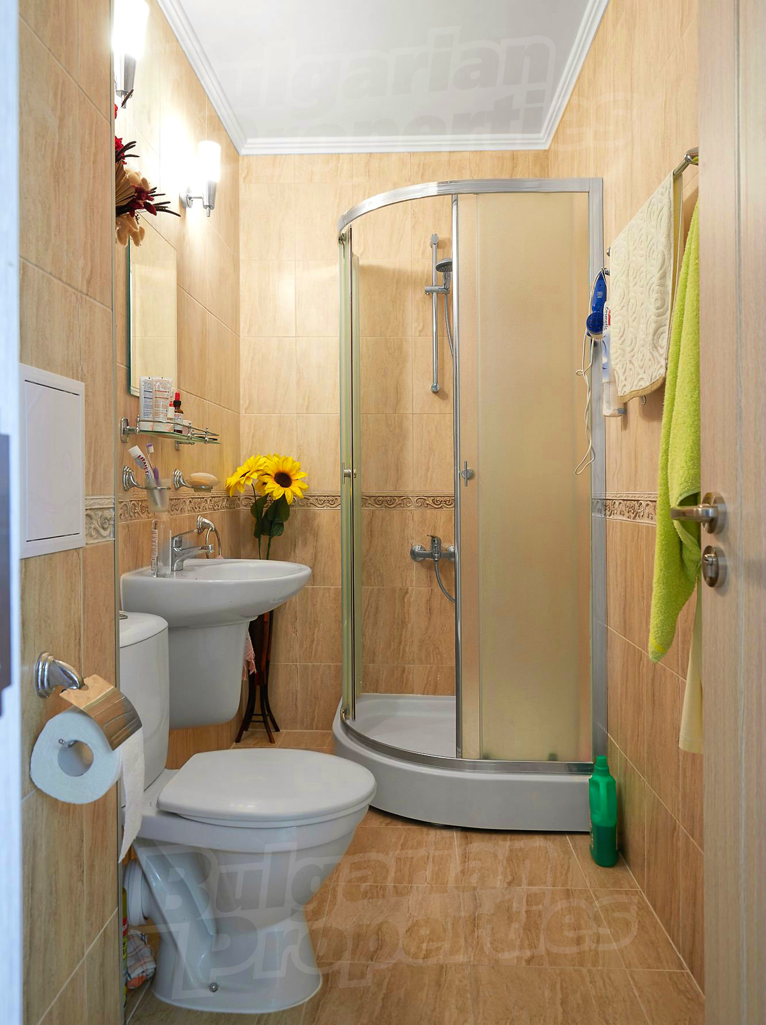 Апартаментът е разположен на 3/4 етаж с приятна гледка към околните сгради, морето и планината. Общата площ от 76.37 кв.м., чиста площ – 69.24 кв.м., се разпределя между: