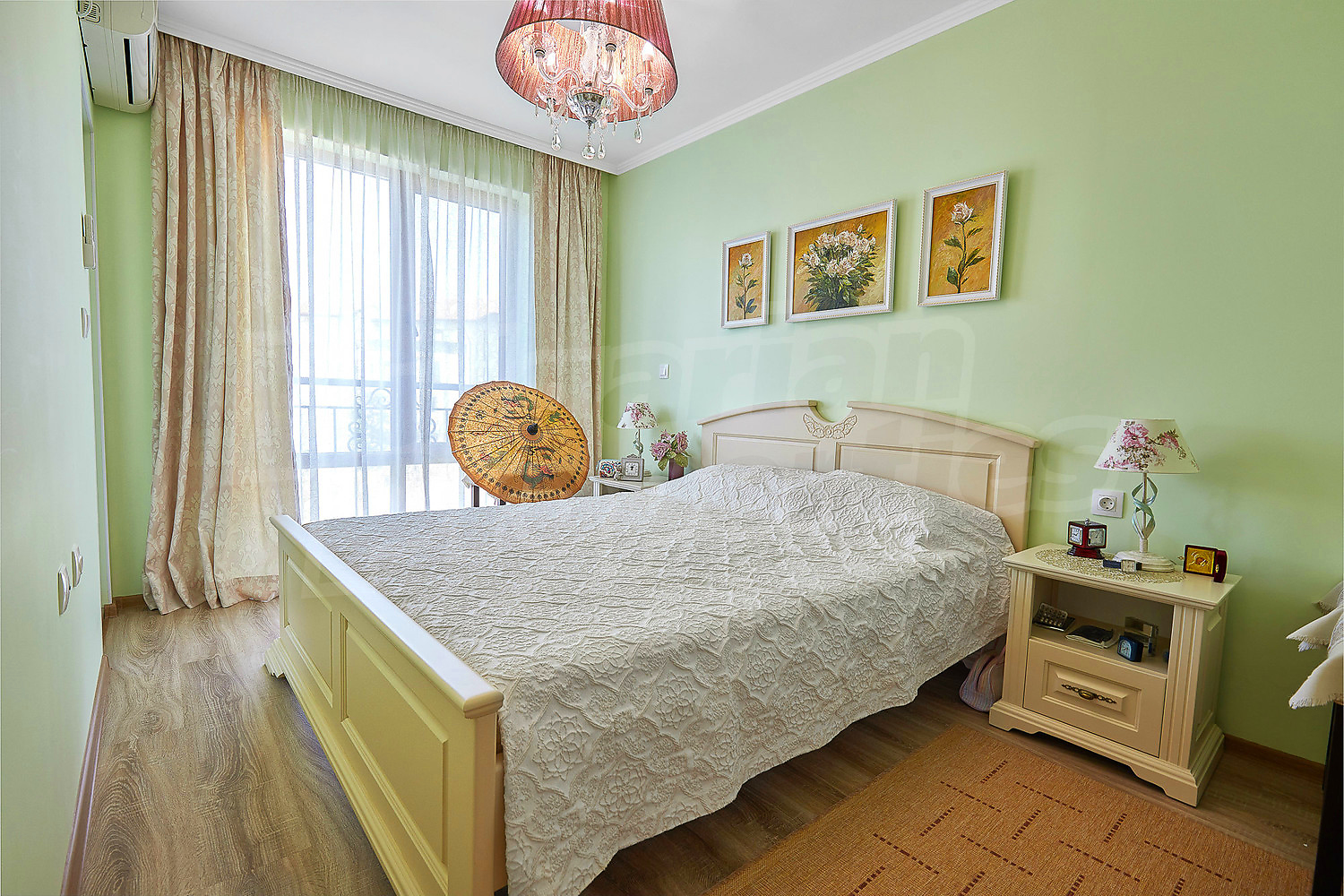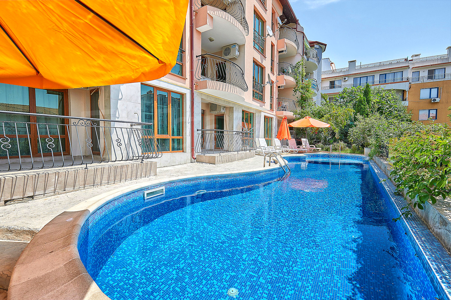 Елегантно завършен тристаен апартамент на метри от яхтеното пристанище Марина Диневи в Свети Влас, на 450 м от плажа, на 300 м от автобусна спирка, на 40 км от летище Бургас. Имотът е част от добре поддържан малък комплекс (2007 година) с минимална такса поддръжка - 200 Евро на година, разполагащ с открит плувен басейн и зелени площи.