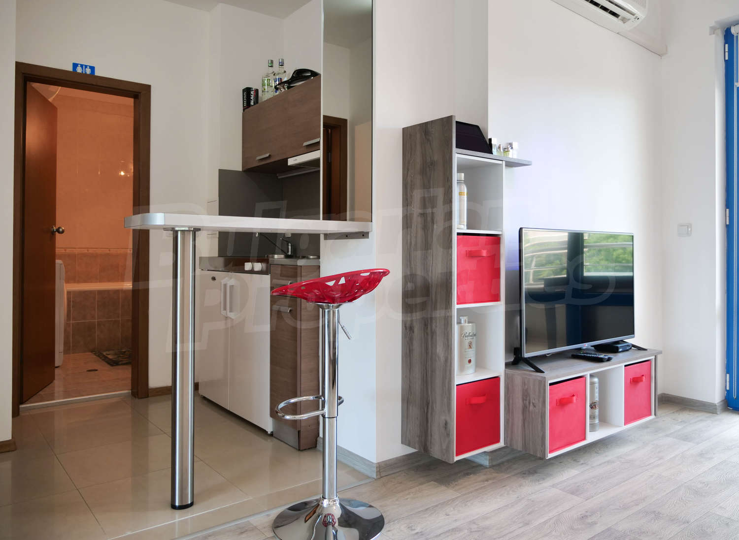 Продава се добре оборудван и обзаведен в отлично състояние студио апартамент в добре поддържан комплекс на метри от плажа – топ локация.
