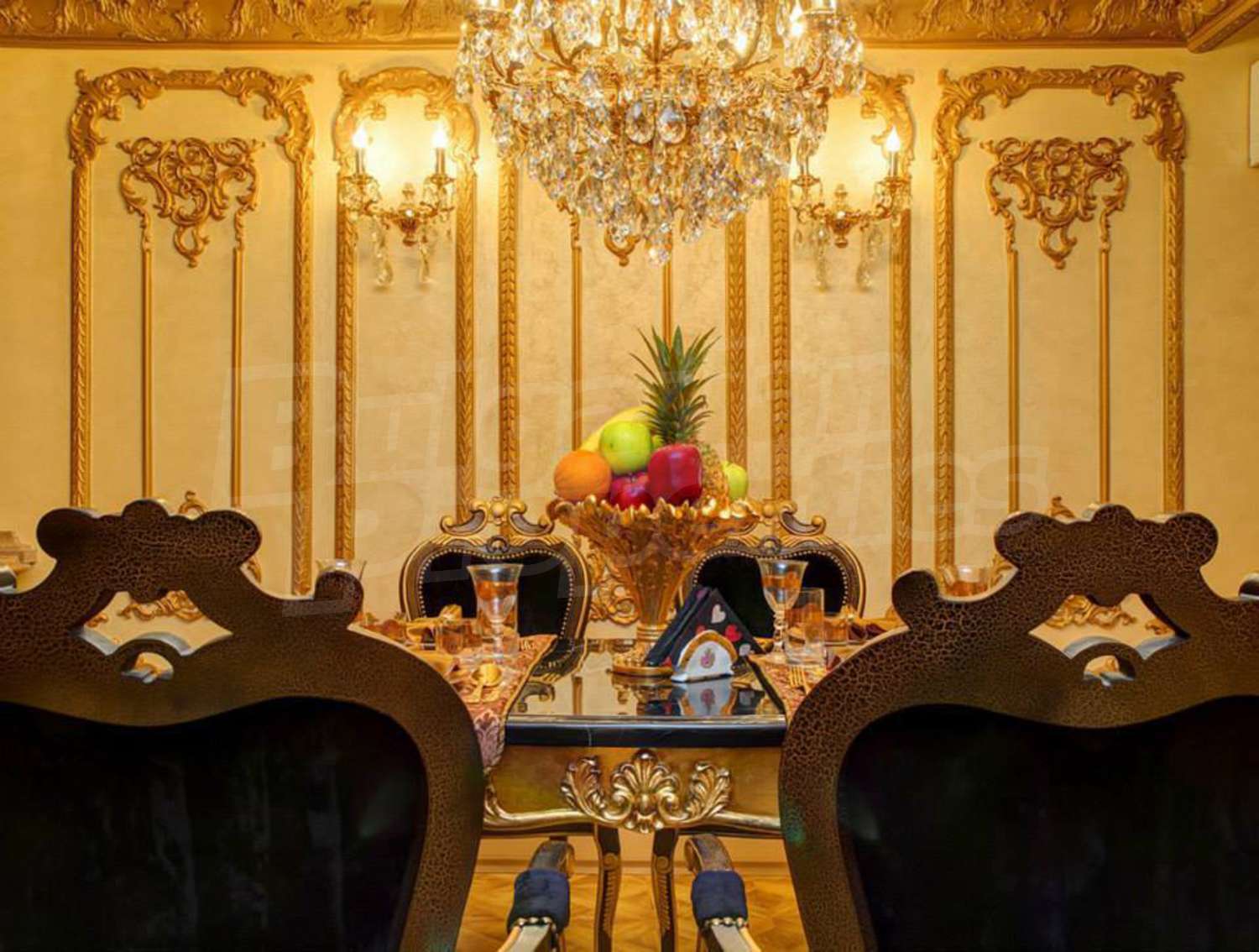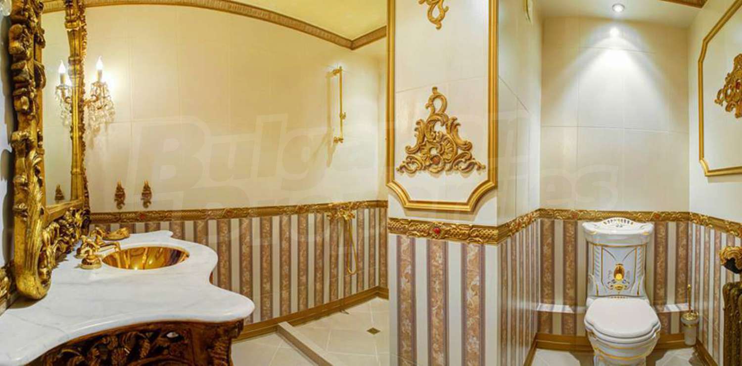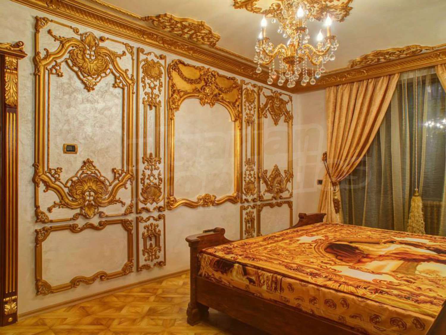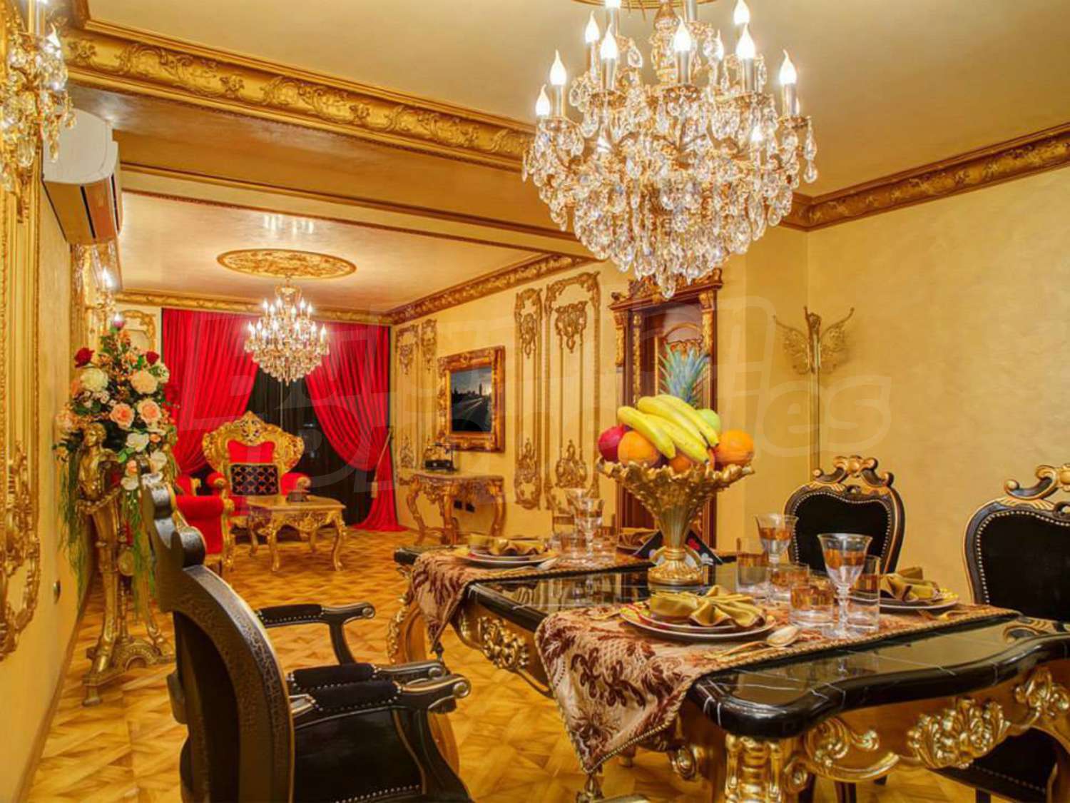 Висококачествени мебели, крановете на мивките са 'Versace', вратите са масивни, изработени от гръцки орех, навсякъде има позлатени елементи. В апартамента има вградена пералня.