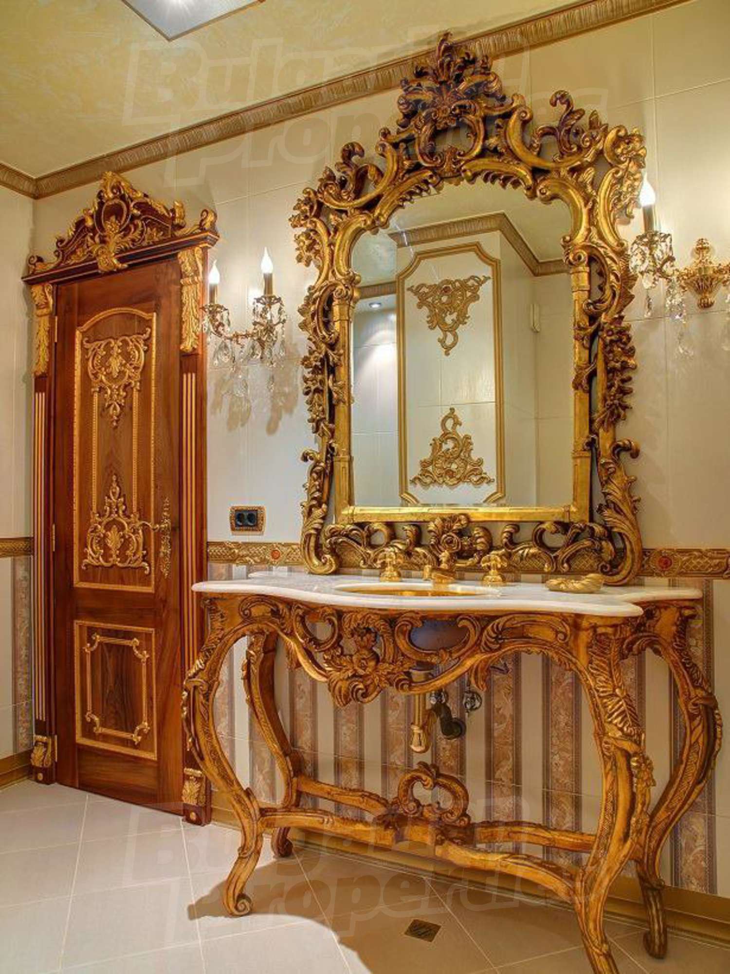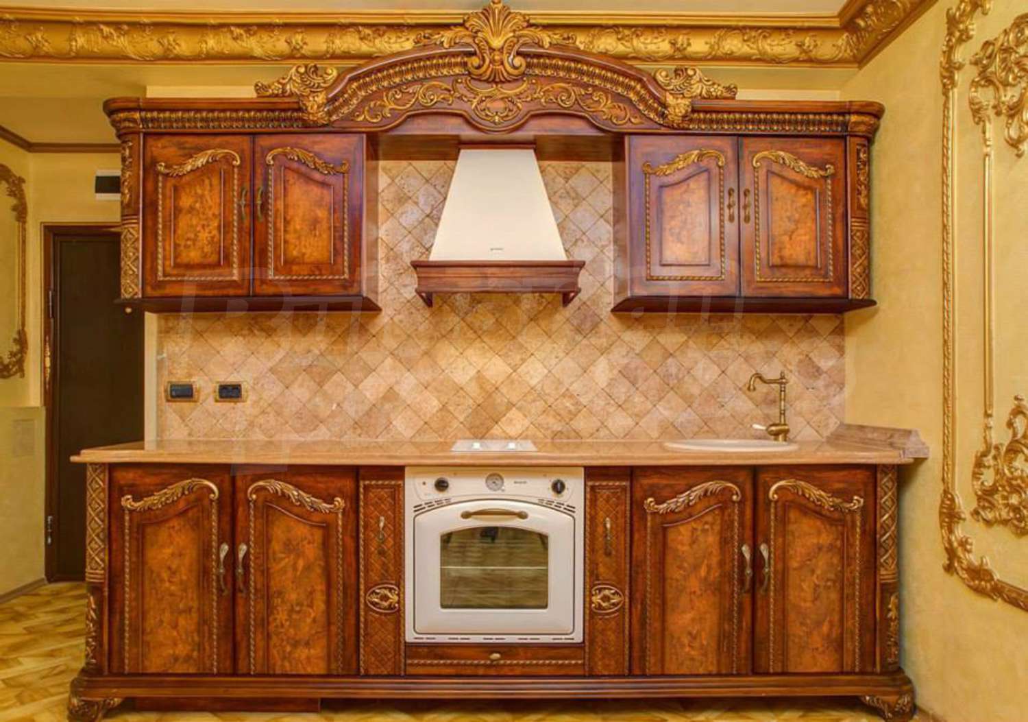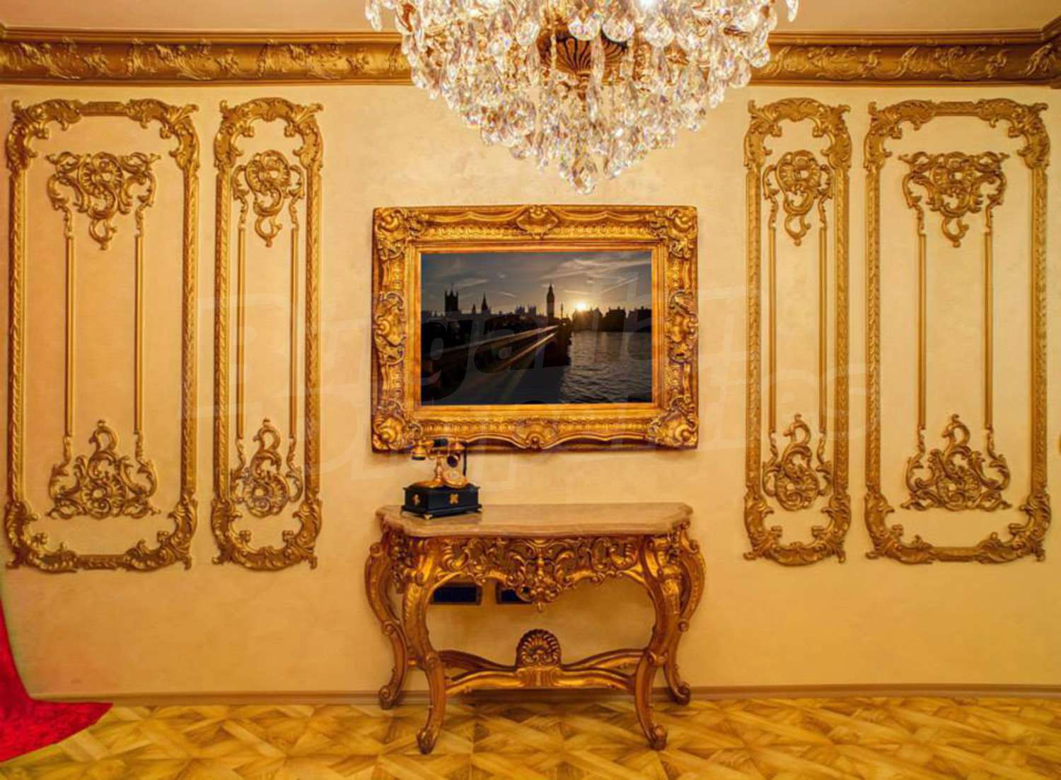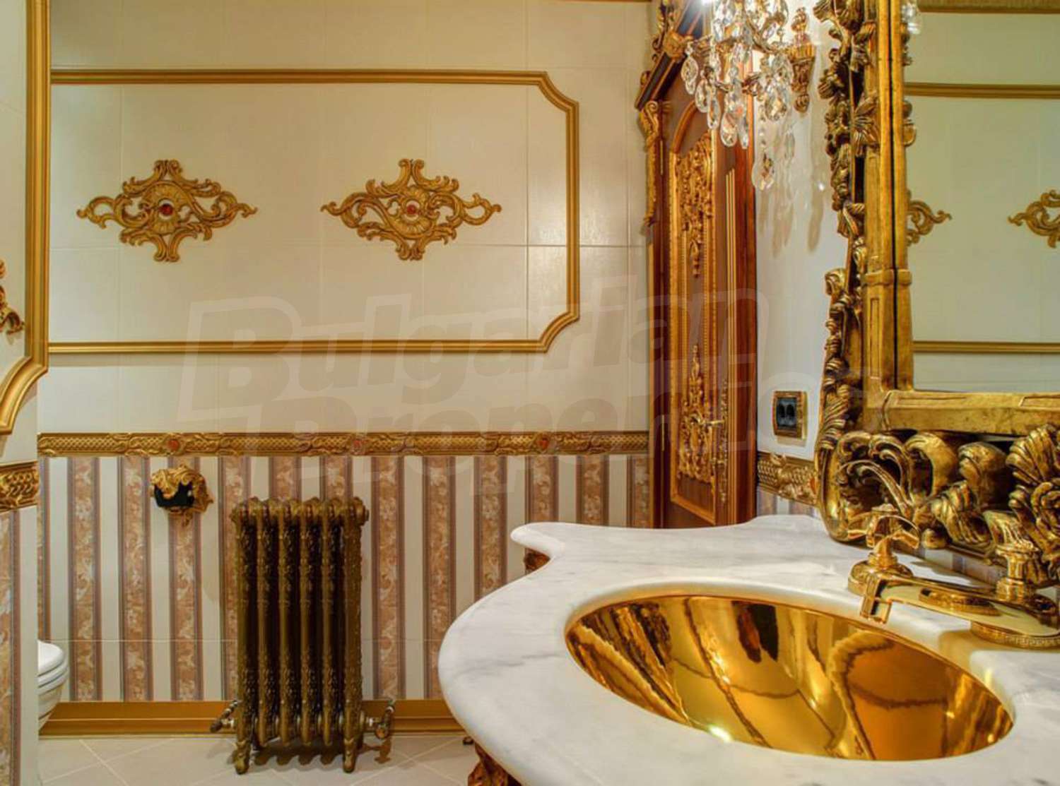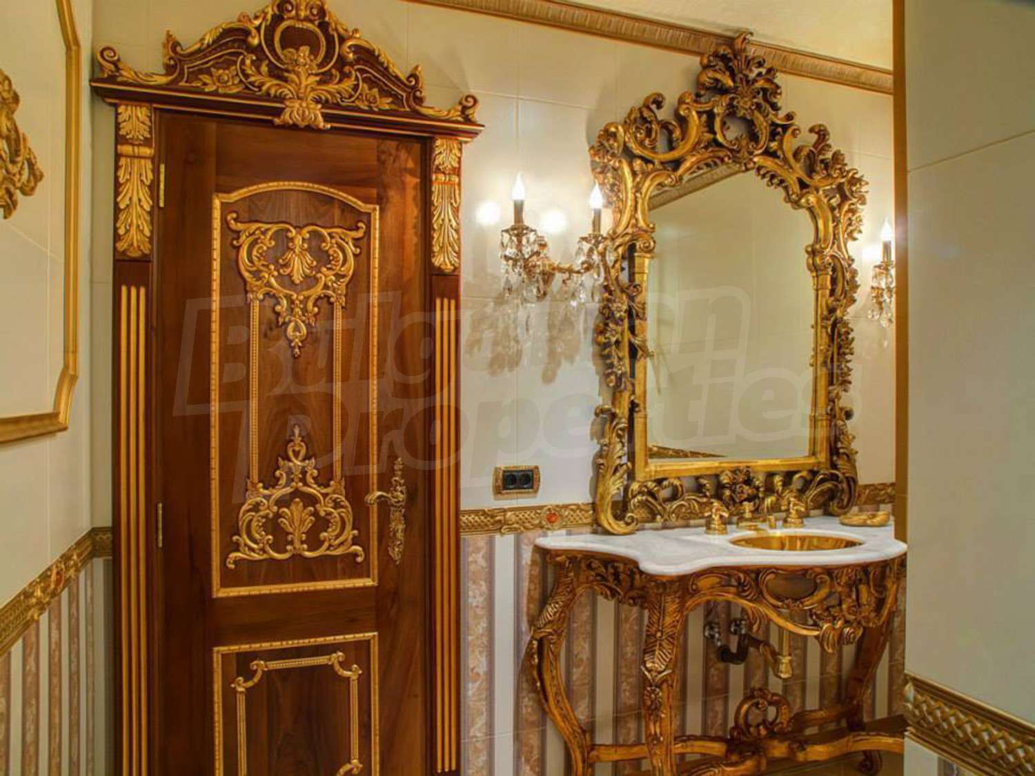 Висококачествени мебели, крановете на мивките са 'Versace', вратите са масивни, изработени от гръцки орех, навсякъде има позлатени елементи. В апартамента има вградена пералня.