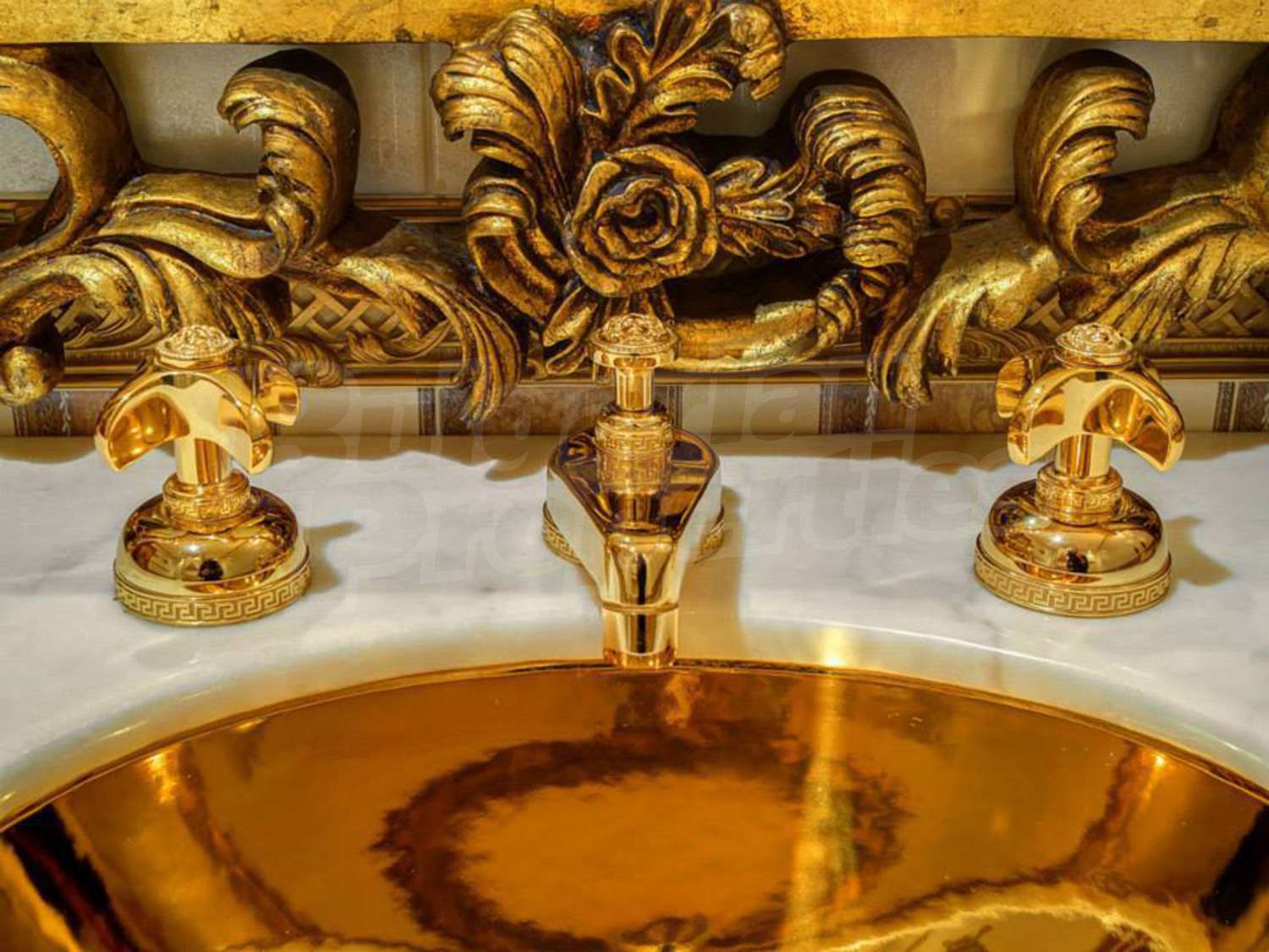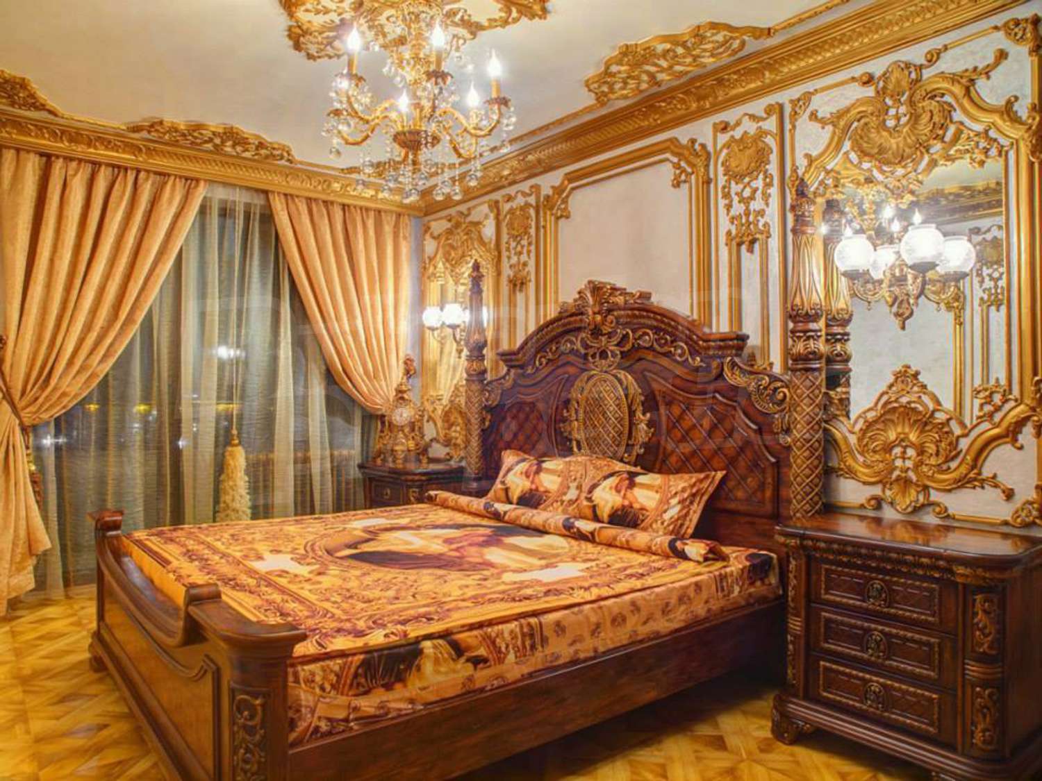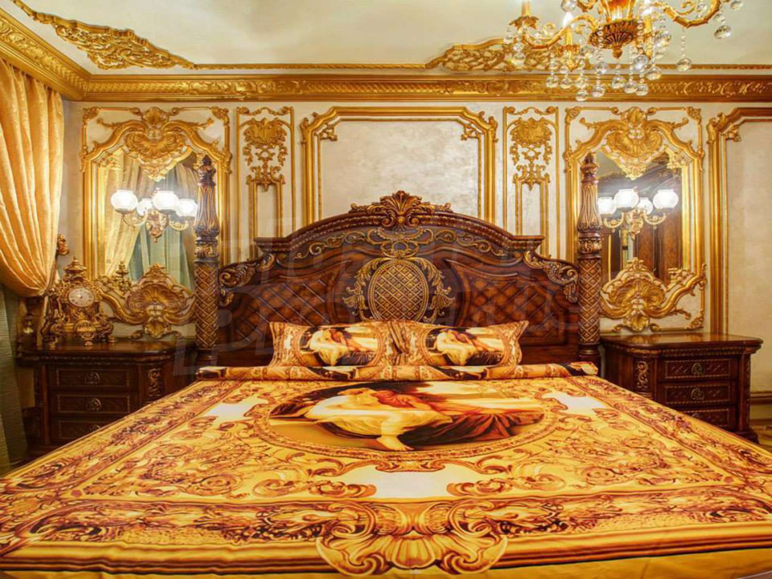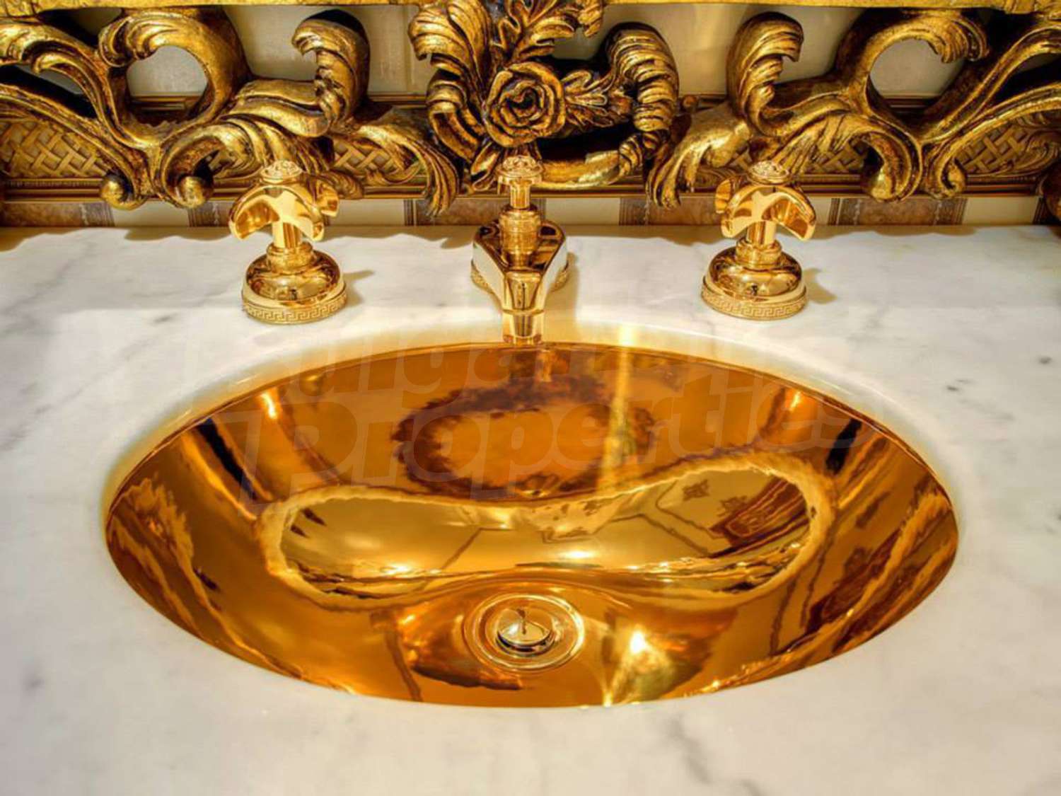 Висококачествени мебели, крановете на мивките са 'Versace', вратите са масивни, изработени от гръцки орех, навсякъде има позлатени елементи. В апартамента има вградена пералня.