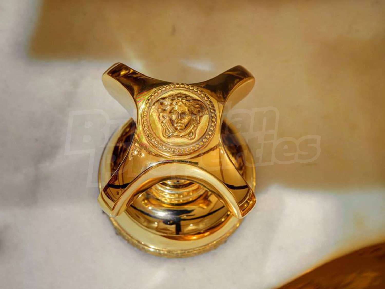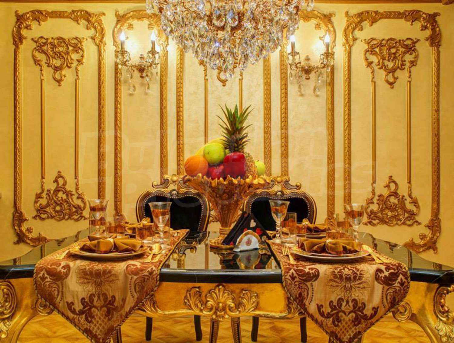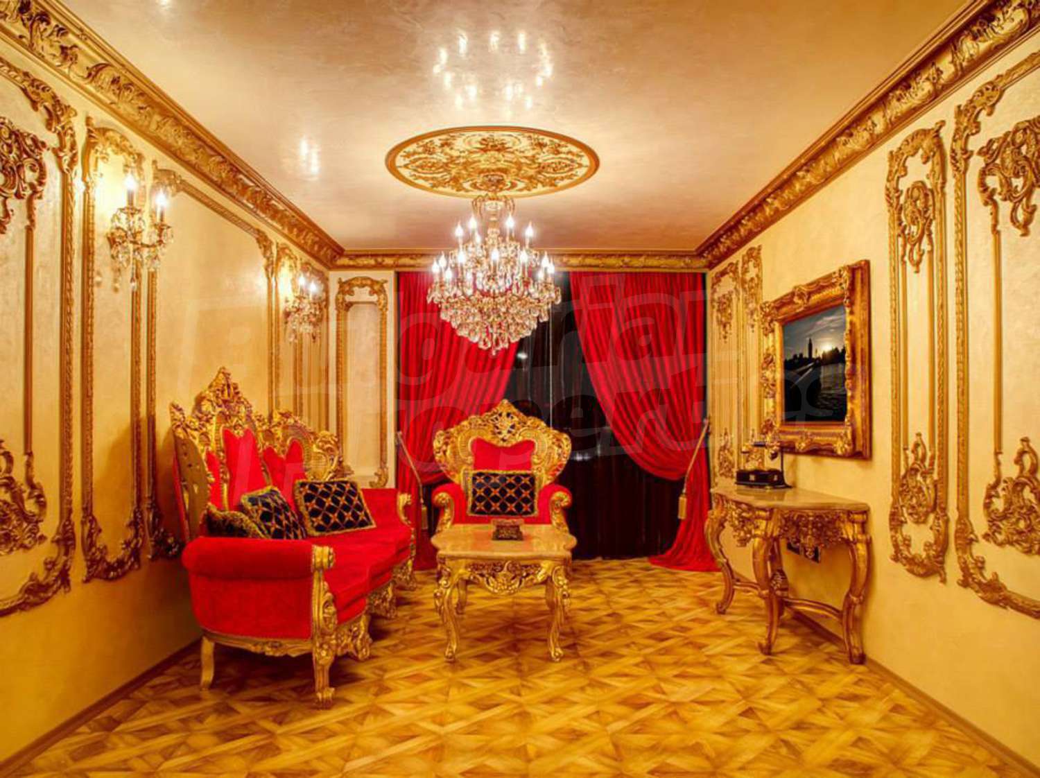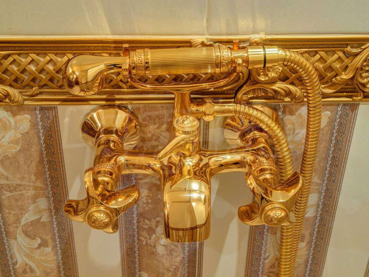 Висококачествени мебели, крановете на мивките са 'Versace', вратите са масивни, изработени от гръцки орех, навсякъде има позлатени елементи. В апартамента има вградена пералня.