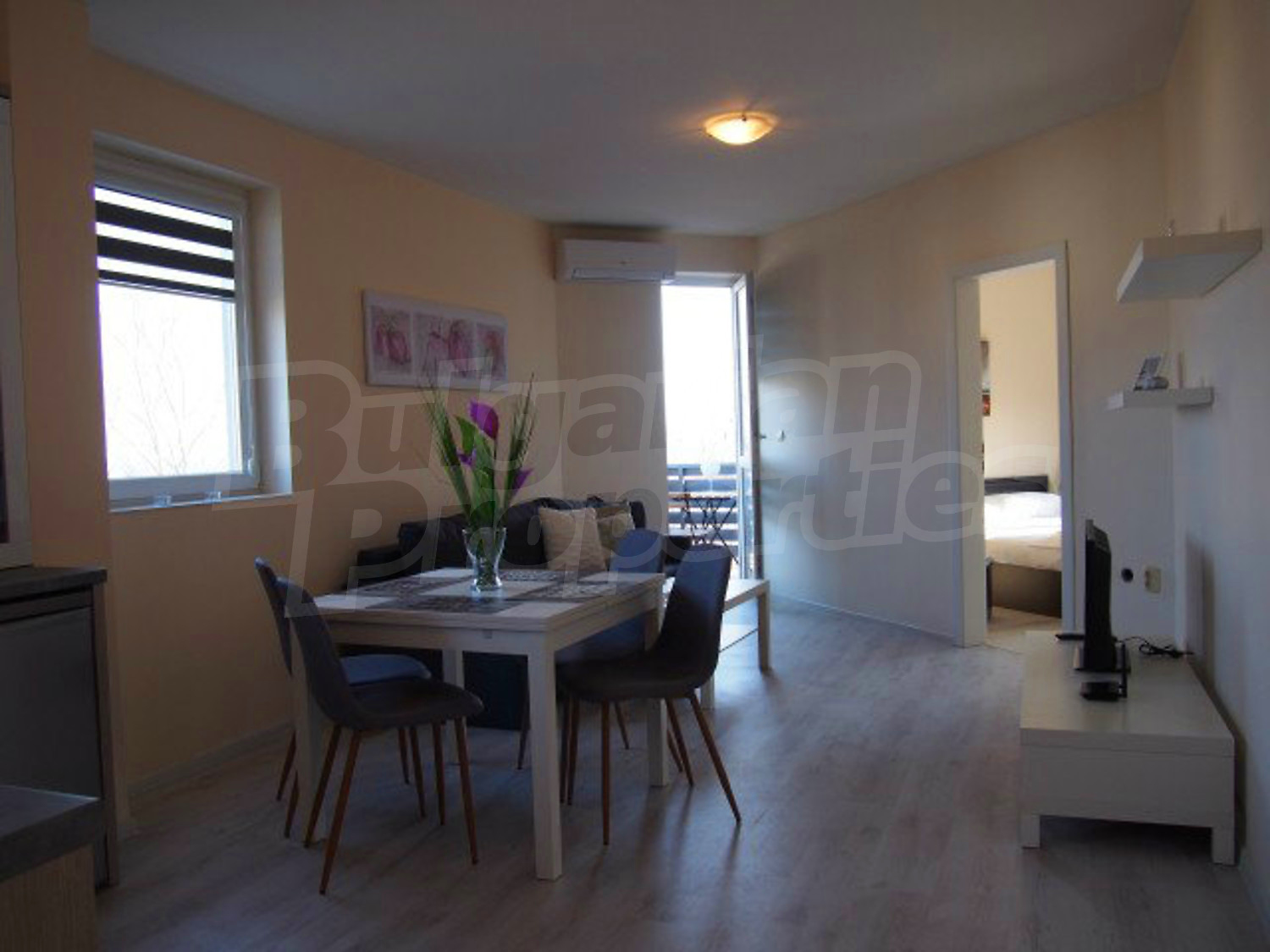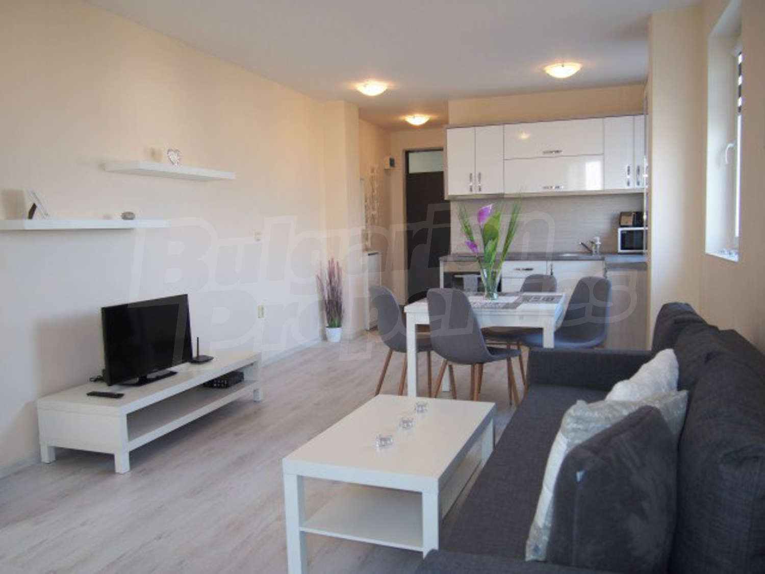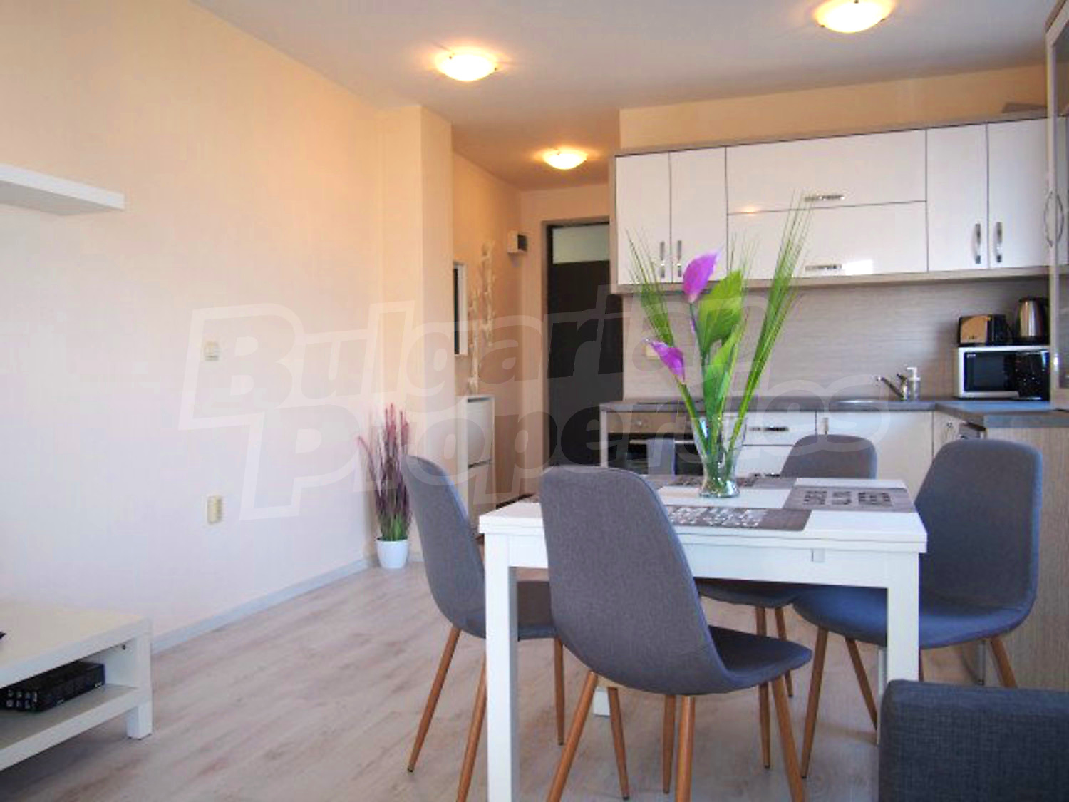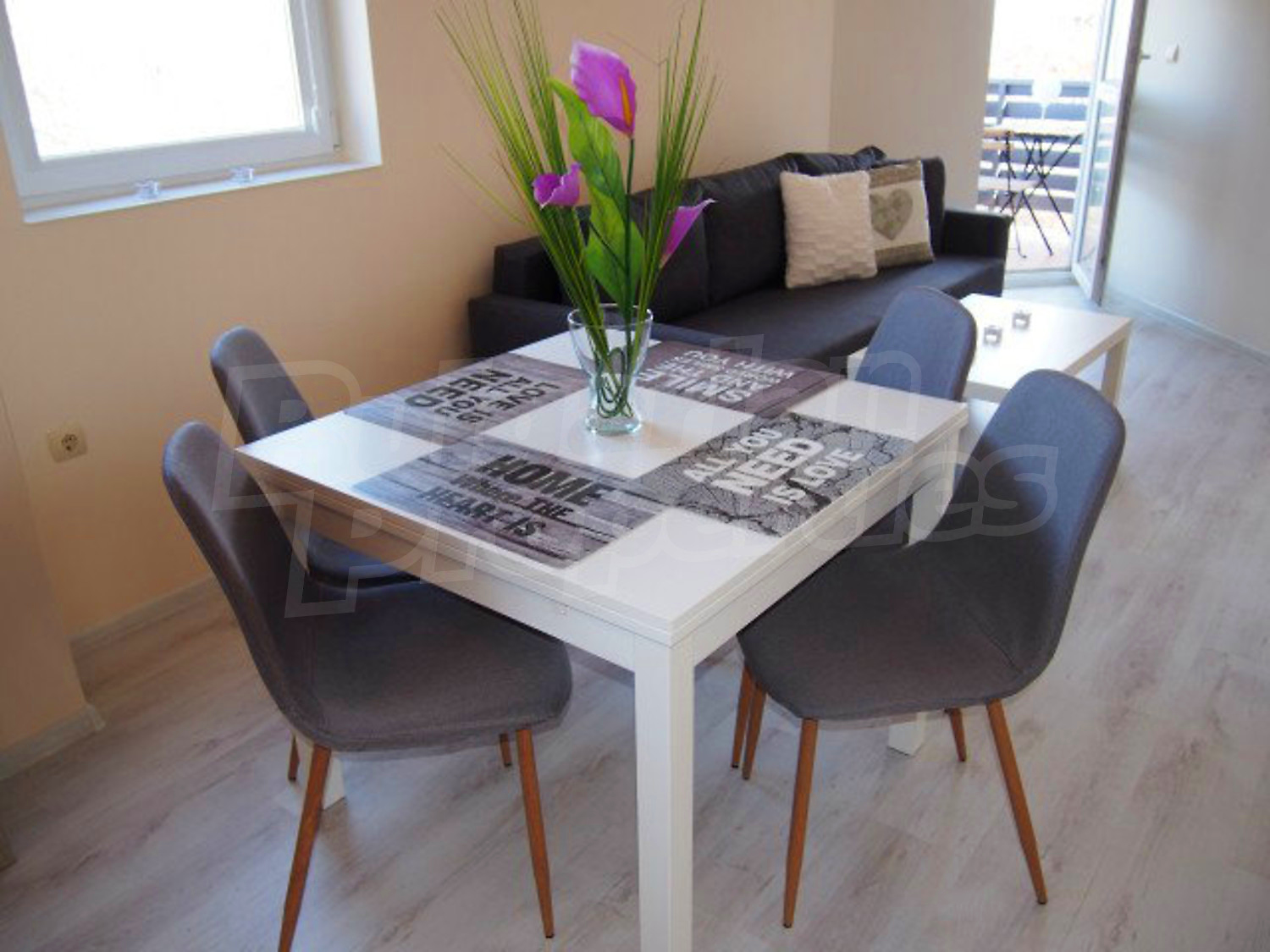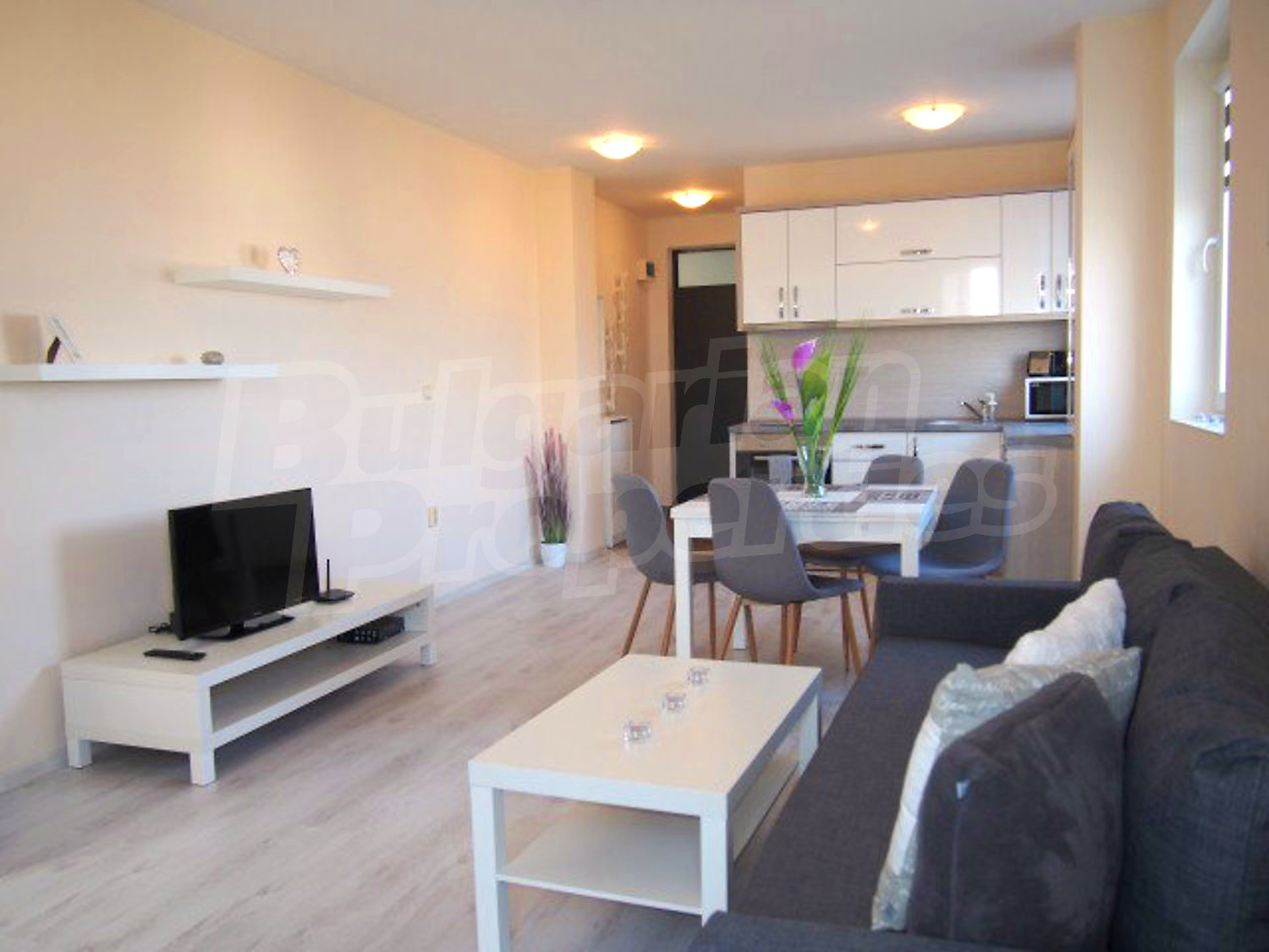 Апартаментът се продава напълно обзаведен, както е на снимките, подходящ за целогодишно обитаване. Снабден е с климатици, кабелна телевизия, интернет и СОТ.