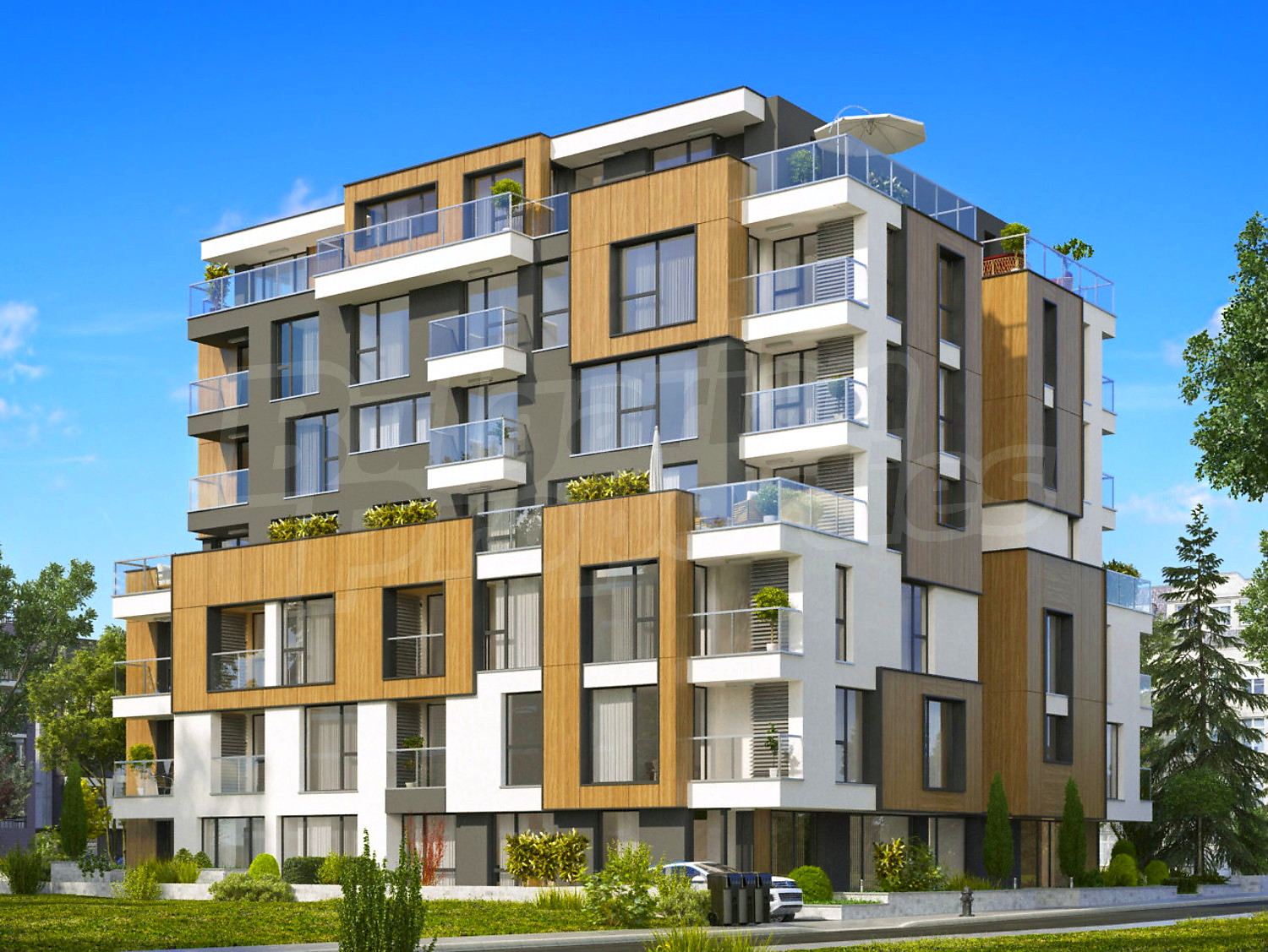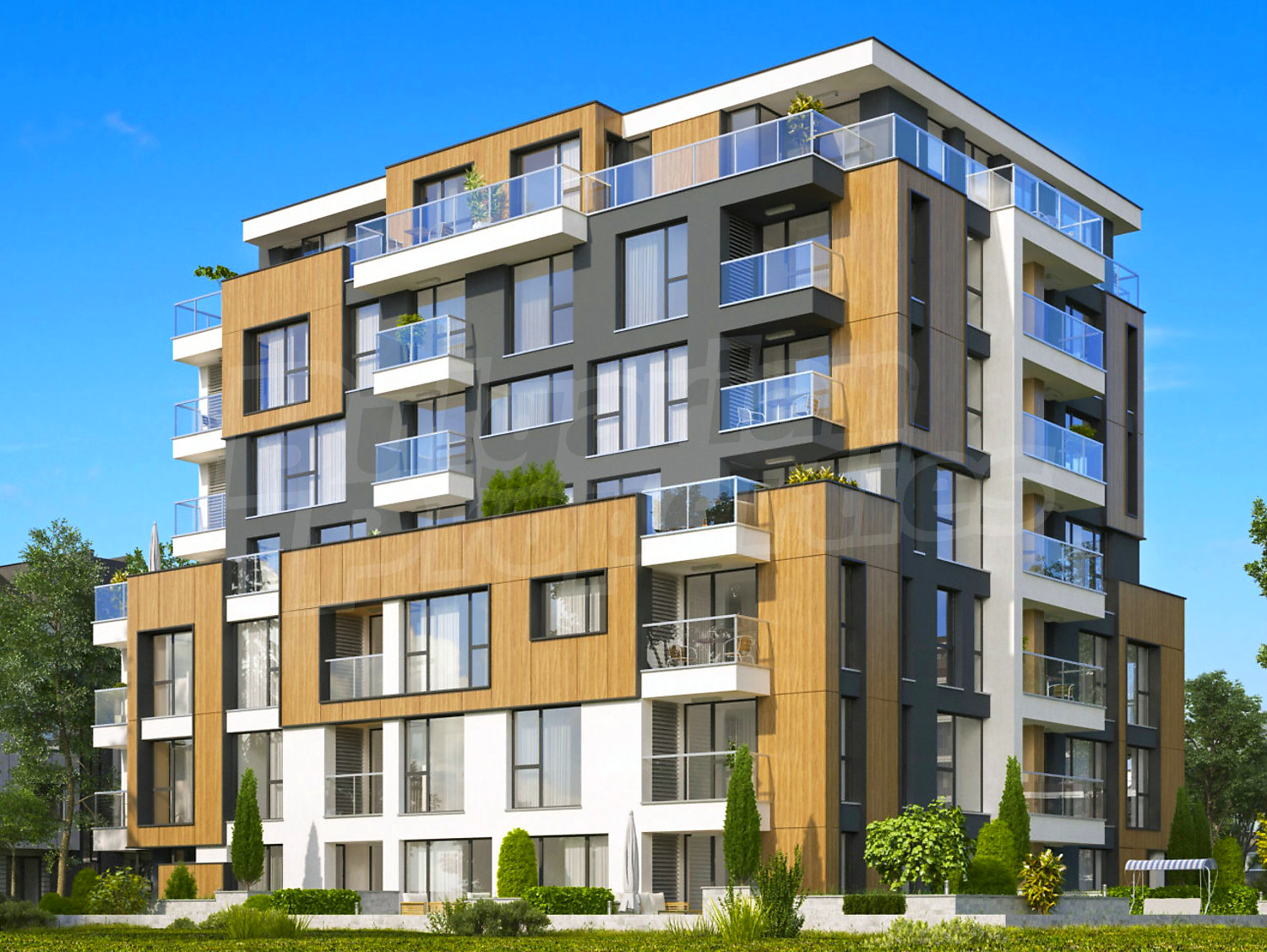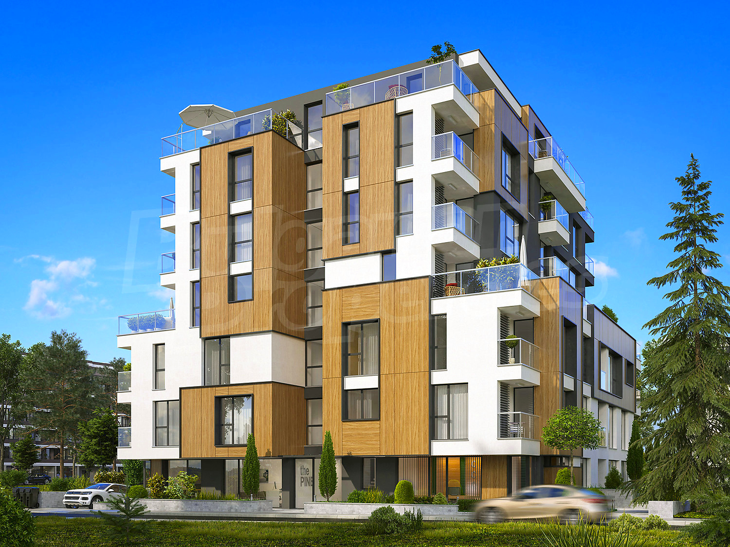 Луксозната сграда е завършена с уникална архитектурна визия, съчетаваща окачена фасада, структурна мазилка, френски прозорци и парапети по архитектурен детайл, с луксозно дизайнерско входно фоайе, функционалност, комфортна жилищна среда, спокойствие и сигурност, сред зеленина, с комуникативно местоположение.