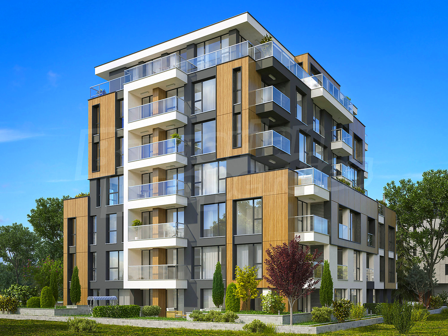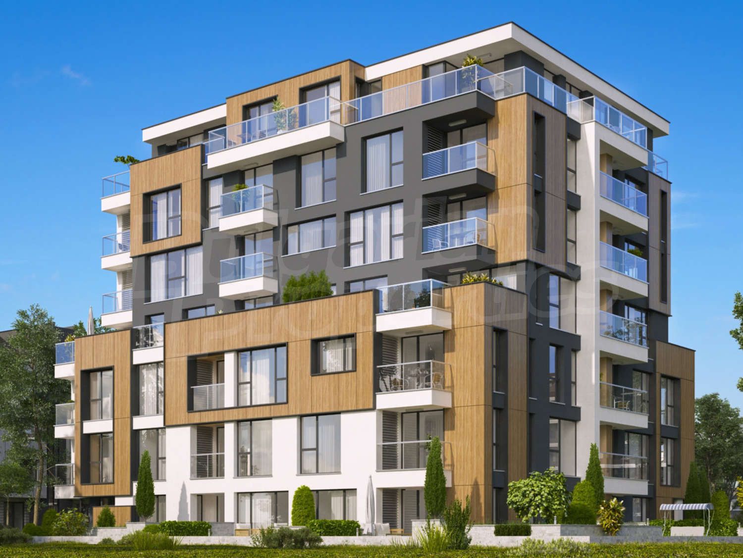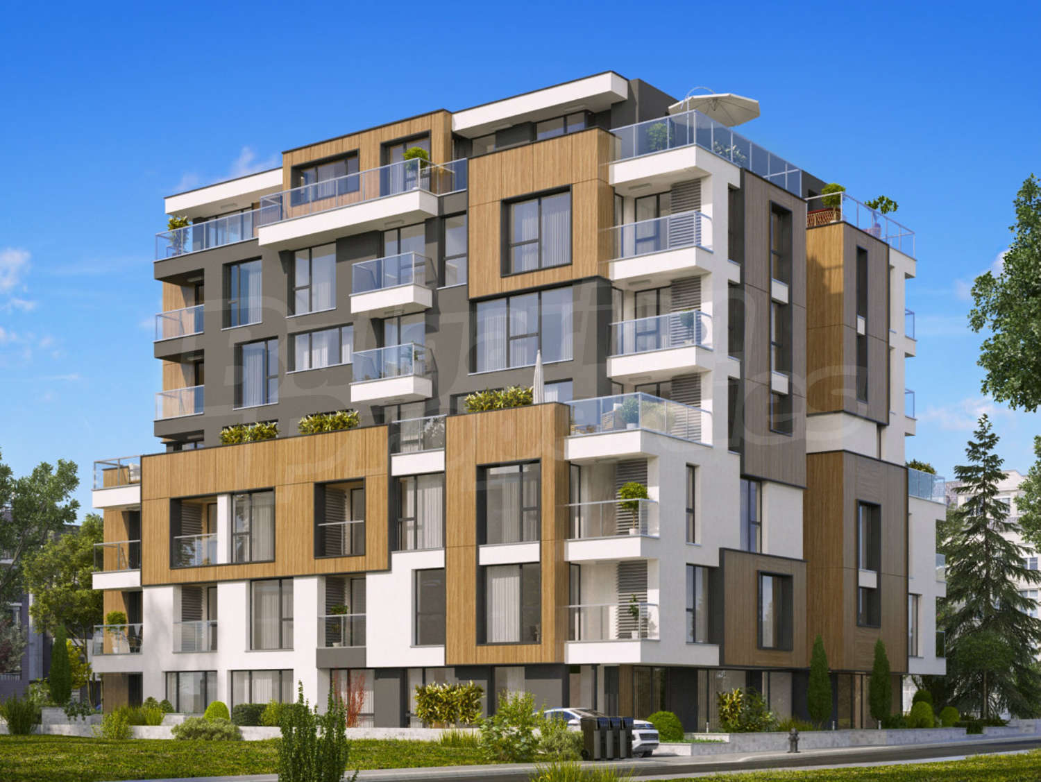 Луксозната сграда е завършена с уникална архитектурна визия, съчетаваща окачена фасада, структурна мазилка, френски прозорци и парапети по архитектурен детайл, с луксозно дизайнерско входно фоайе, функционалност, комфортна жилищна среда, спокойствие и сигурност, сред зеленина, с комуникативно местоположение.