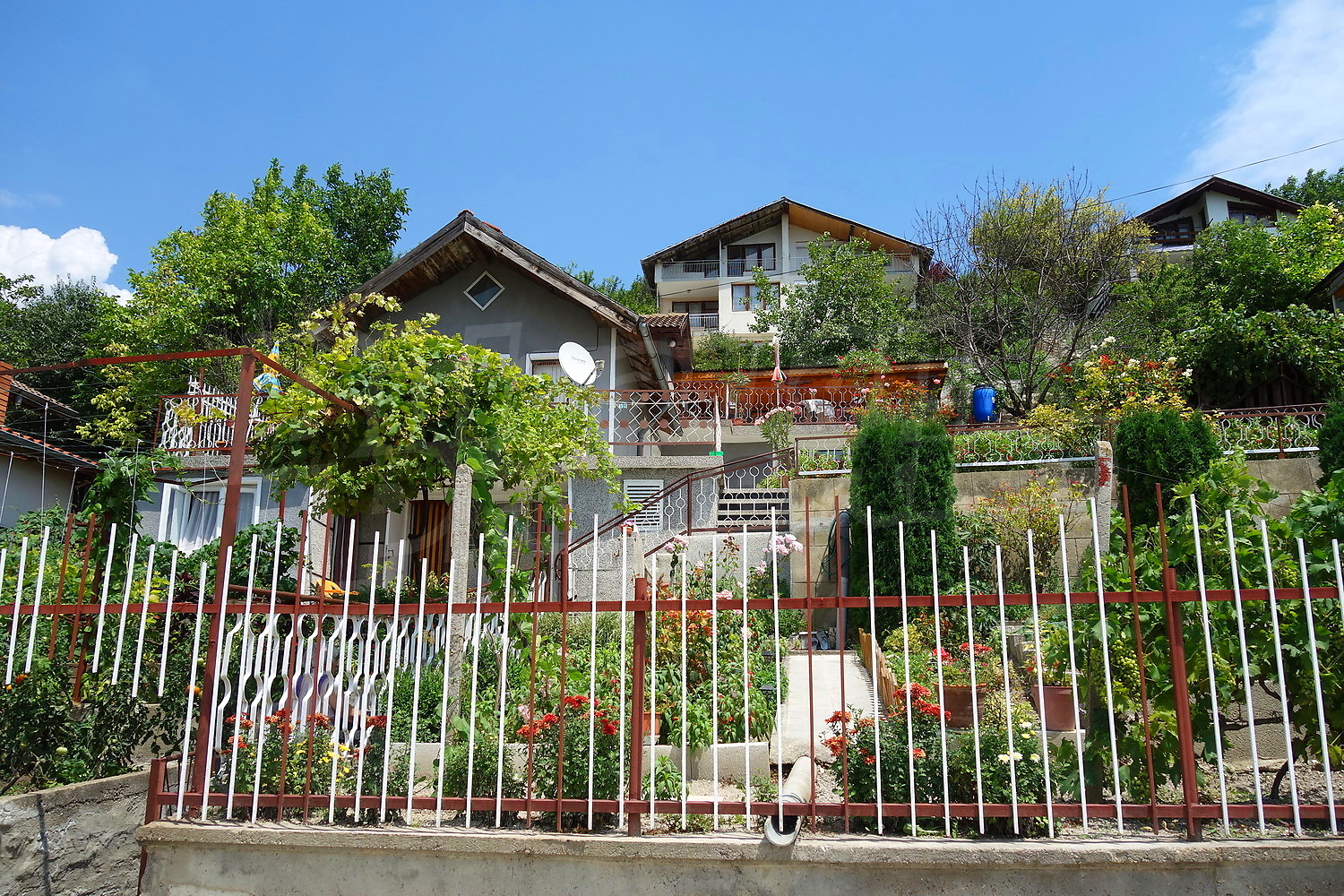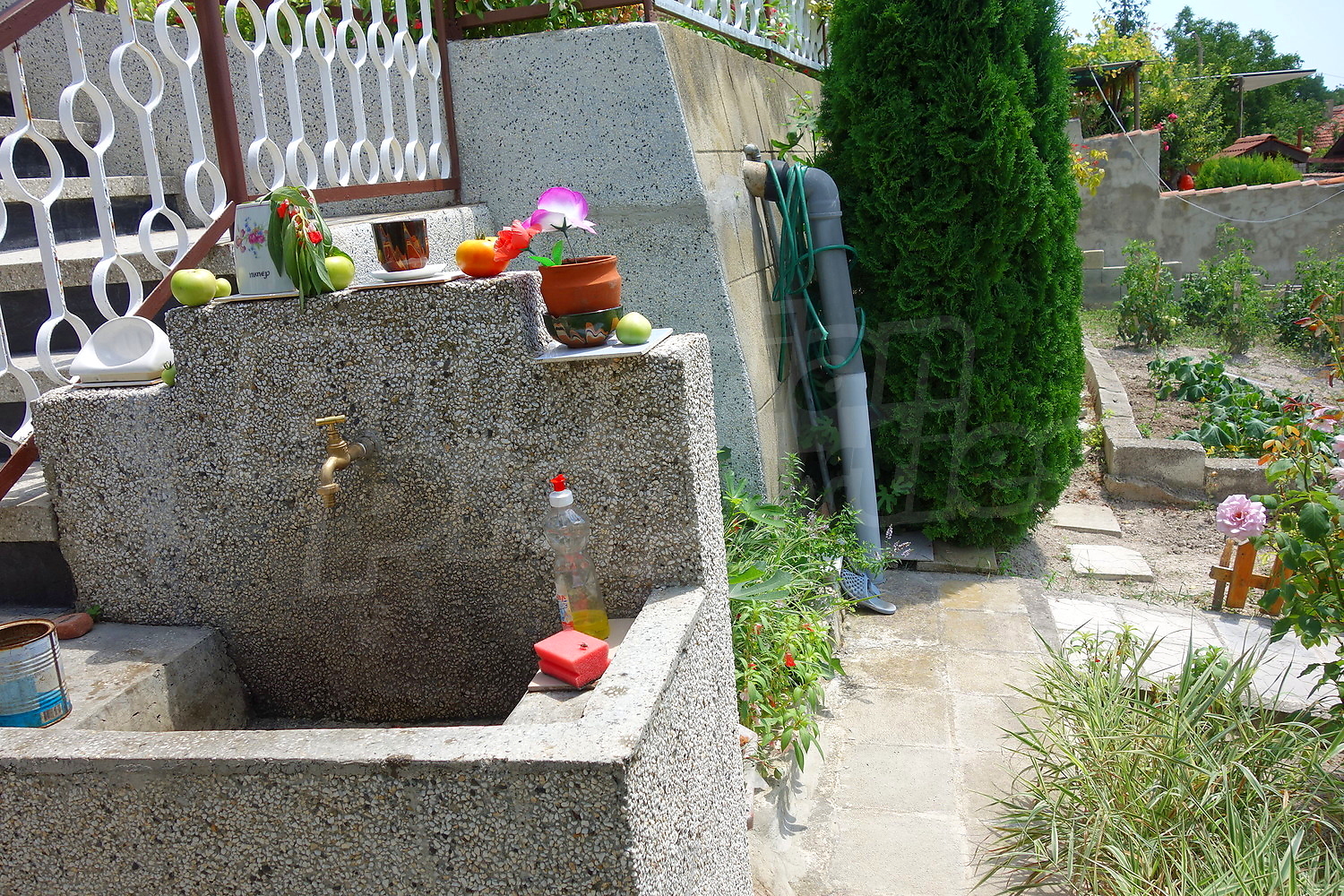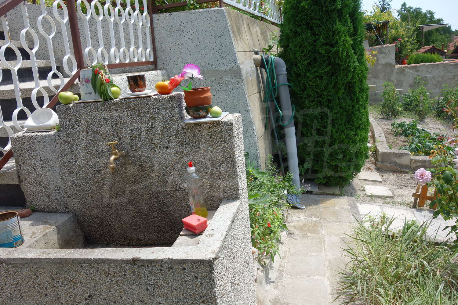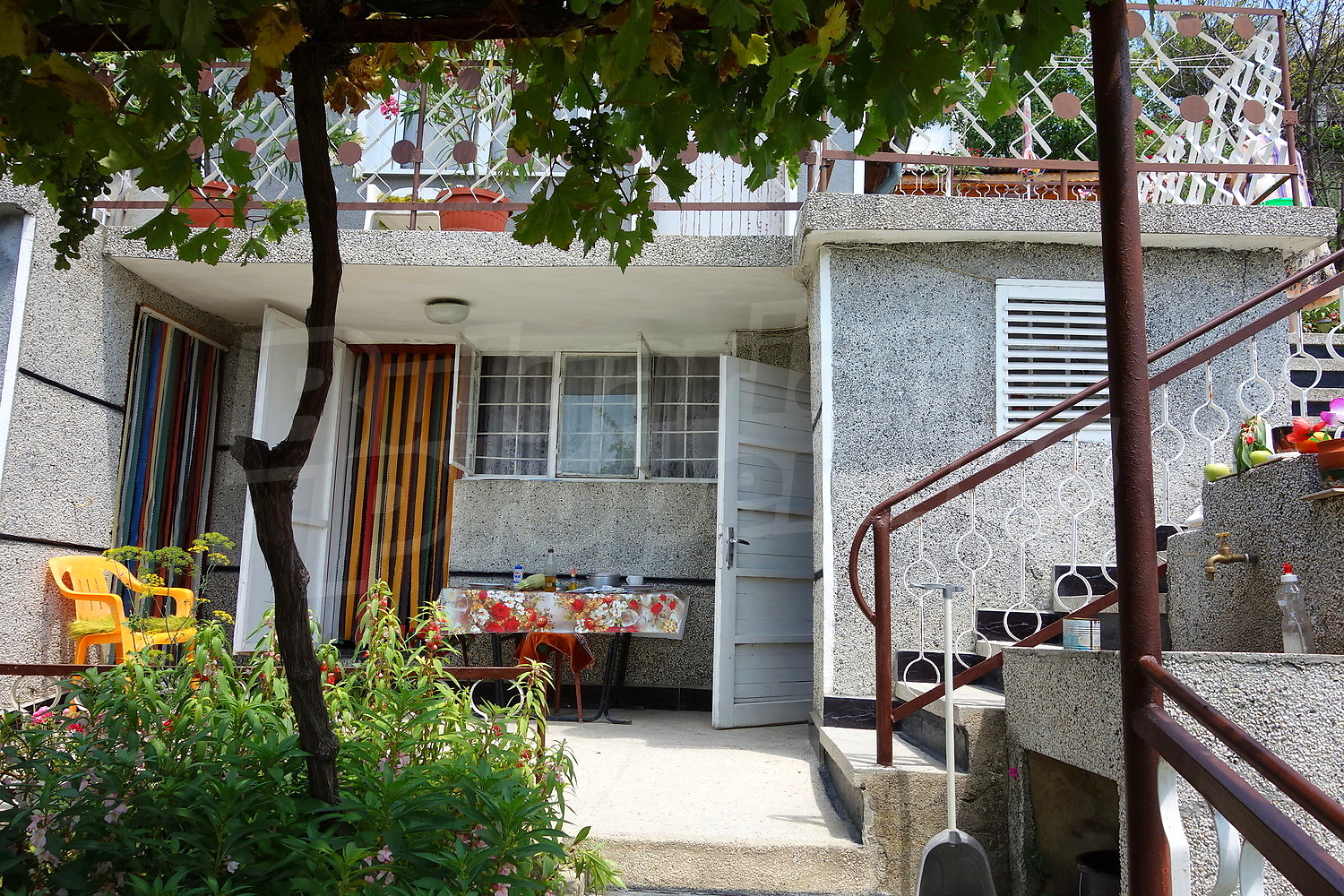 • Първо ниво – 2 стаи, от които едната кухничка, баня, веранда, чешма пред верандата