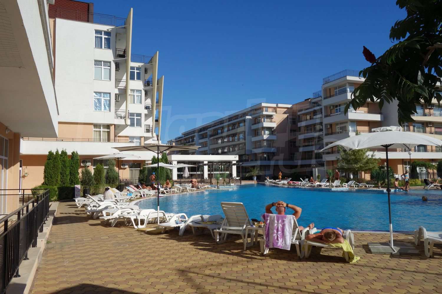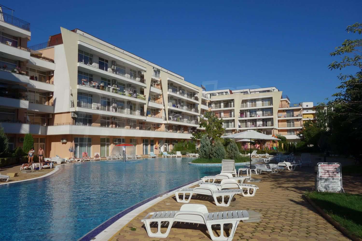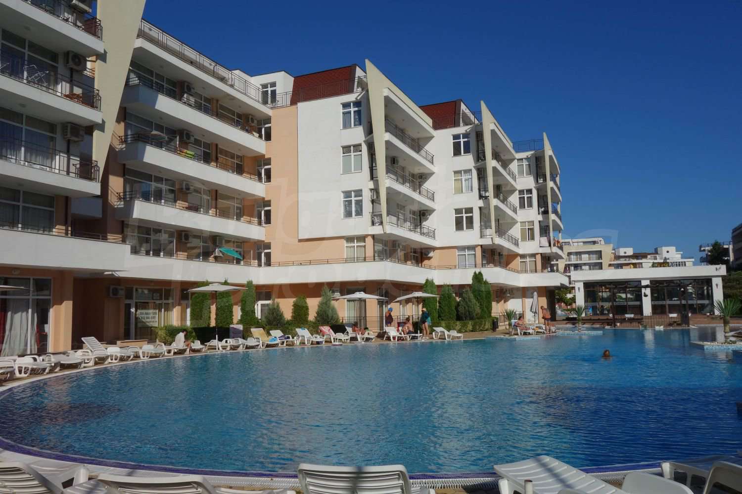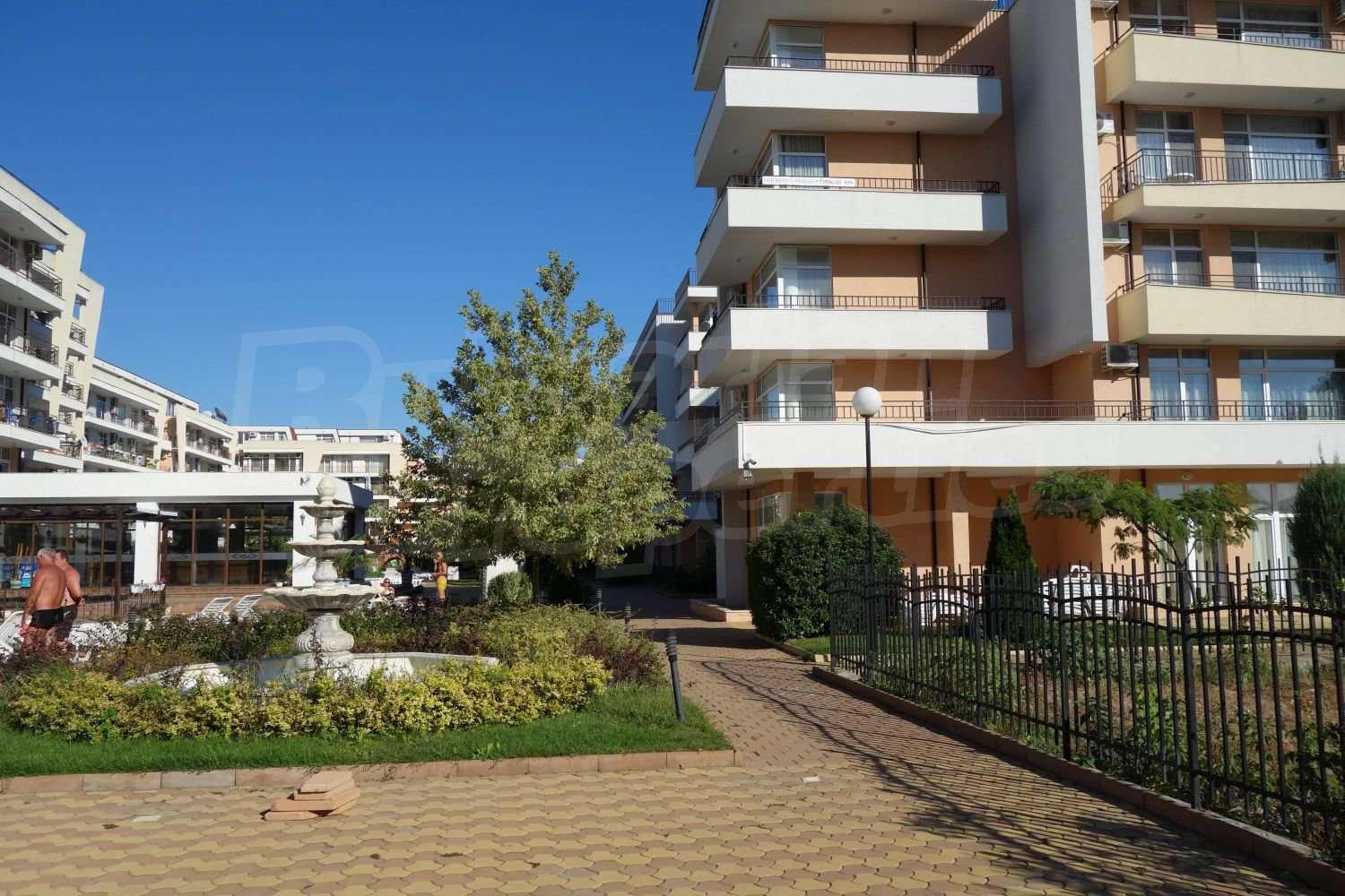 Апартаментът се намира на 2-ри етаж в модерен комплекс с басейн, паркинг и поддържана градина.