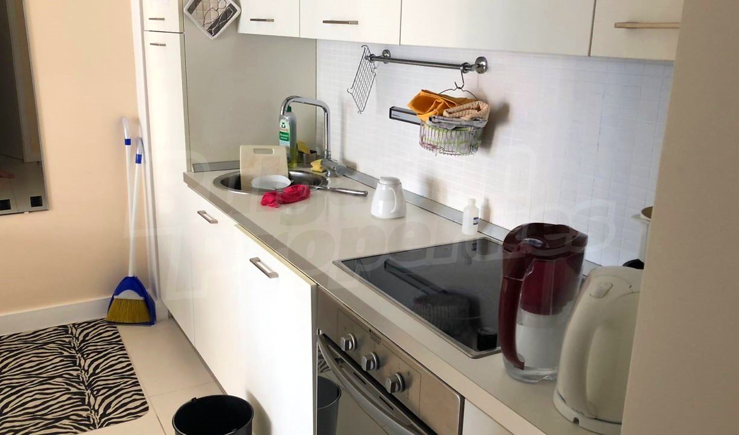 Продава се напълно обзаведен, както е на снимките. Кухненски бокс с кухненски шкафове и всички необходими електроуреди, маса за хранене със столове, голям диван и телевизор. Светла спалня с голямо легло, детско легло и шкафове. Напълно оборудвана баня.