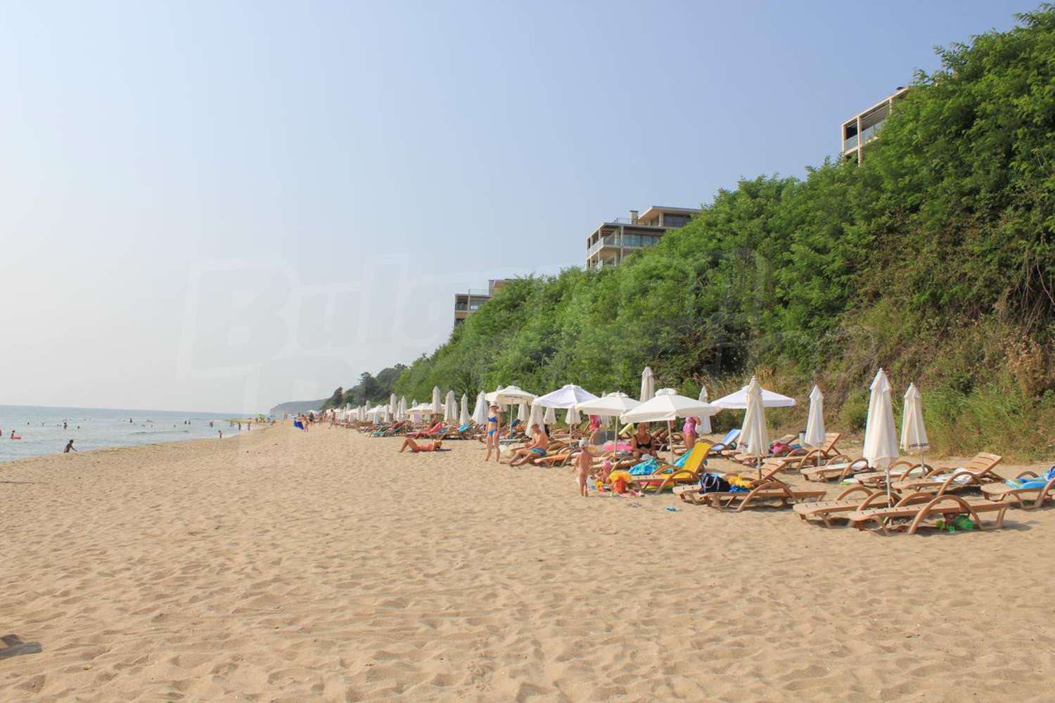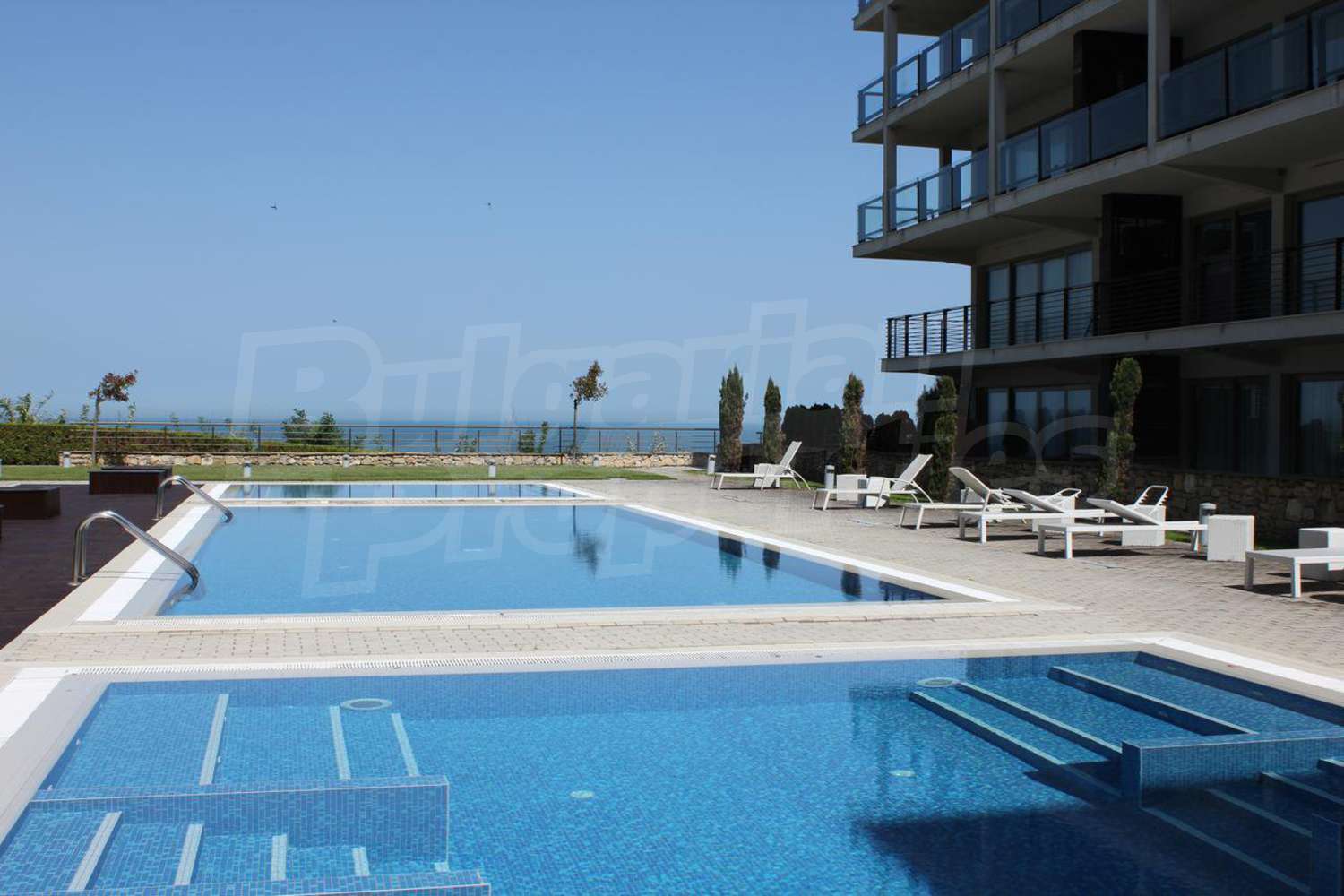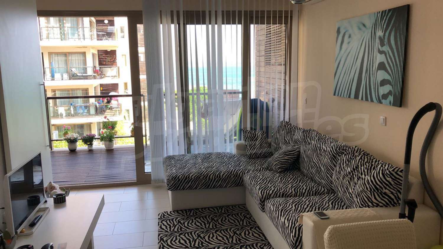 Двустаен напълно обзаведен апартамент с прекрасна морска панорама, на първа линия. Апартаментът е част от луксозен комплекс от затворен тип на морския бряг в крайбрежната зона на гр. Обзор, сред обширен парк, потънал в зеленина и предлага широка морска панорама. Сградата впечатлява с уникално строителство и забележителни дизайнерски решения – великолепни френски прозорци, откриващи фронтална гледка към морето, изчистена фасада, зелени площи и подземен гараж.