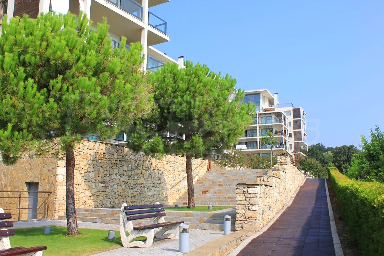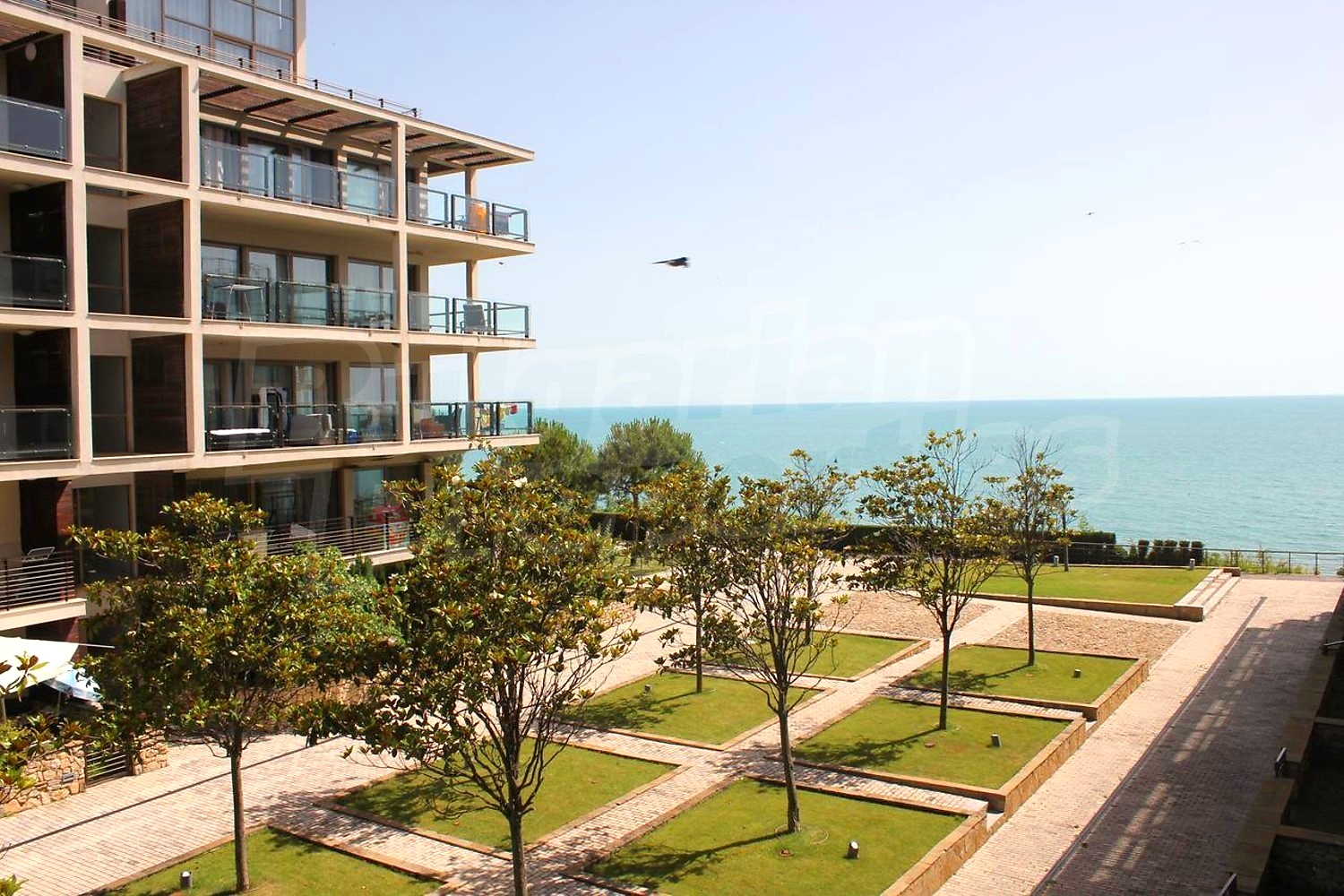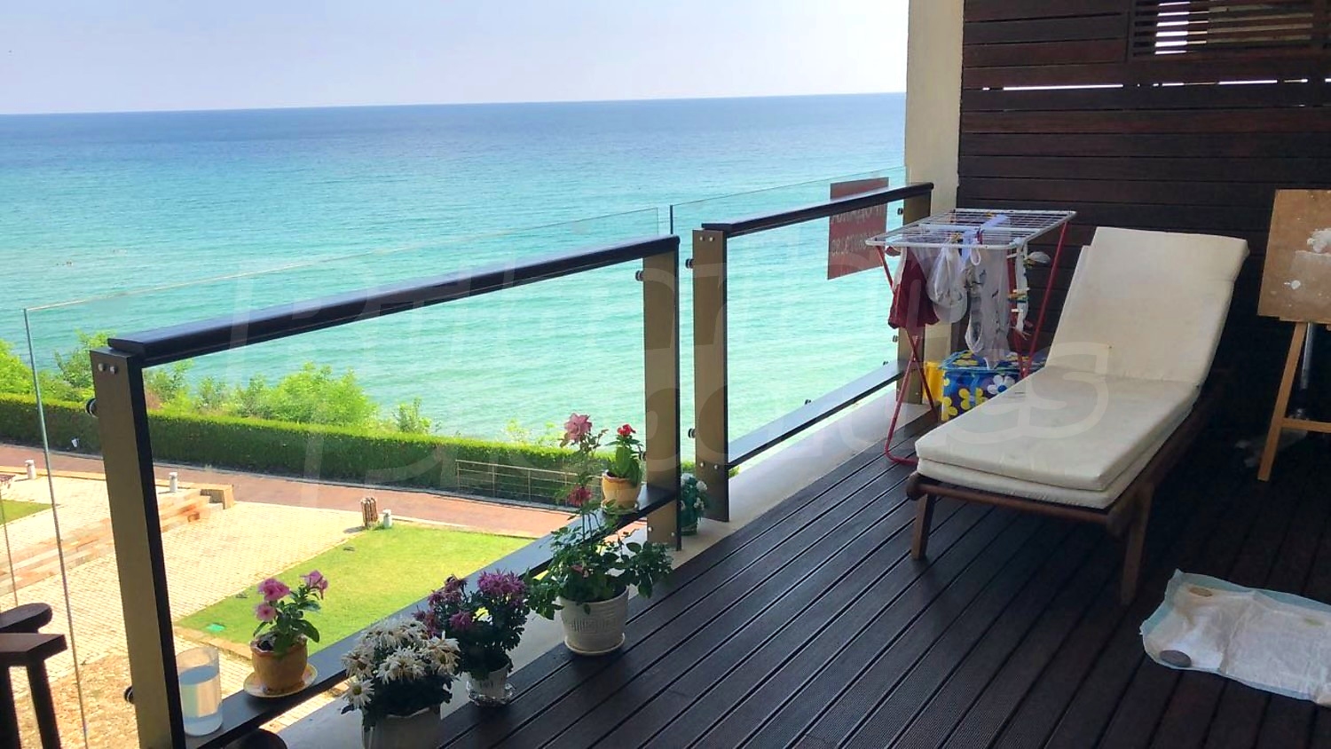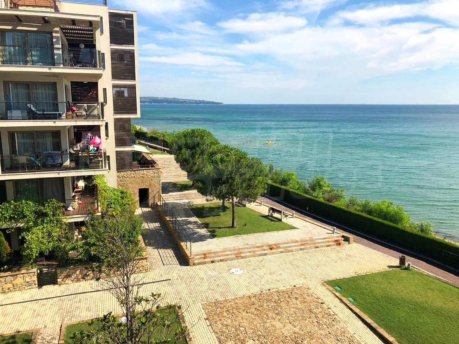 Двустаен напълно обзаведен апартамент с прекрасна морска панорама, на първа линия. Апартаментът е част от луксозен комплекс от затворен тип на морския бряг в крайбрежната зона на гр. Обзор, сред обширен парк, потънал в зеленина и предлага широка морска панорама. Сградата впечатлява с уникално строителство и забележителни дизайнерски решения – великолепни френски прозорци, откриващи фронтална гледка към морето, изчистена фасада, зелени площи и подземен гараж.