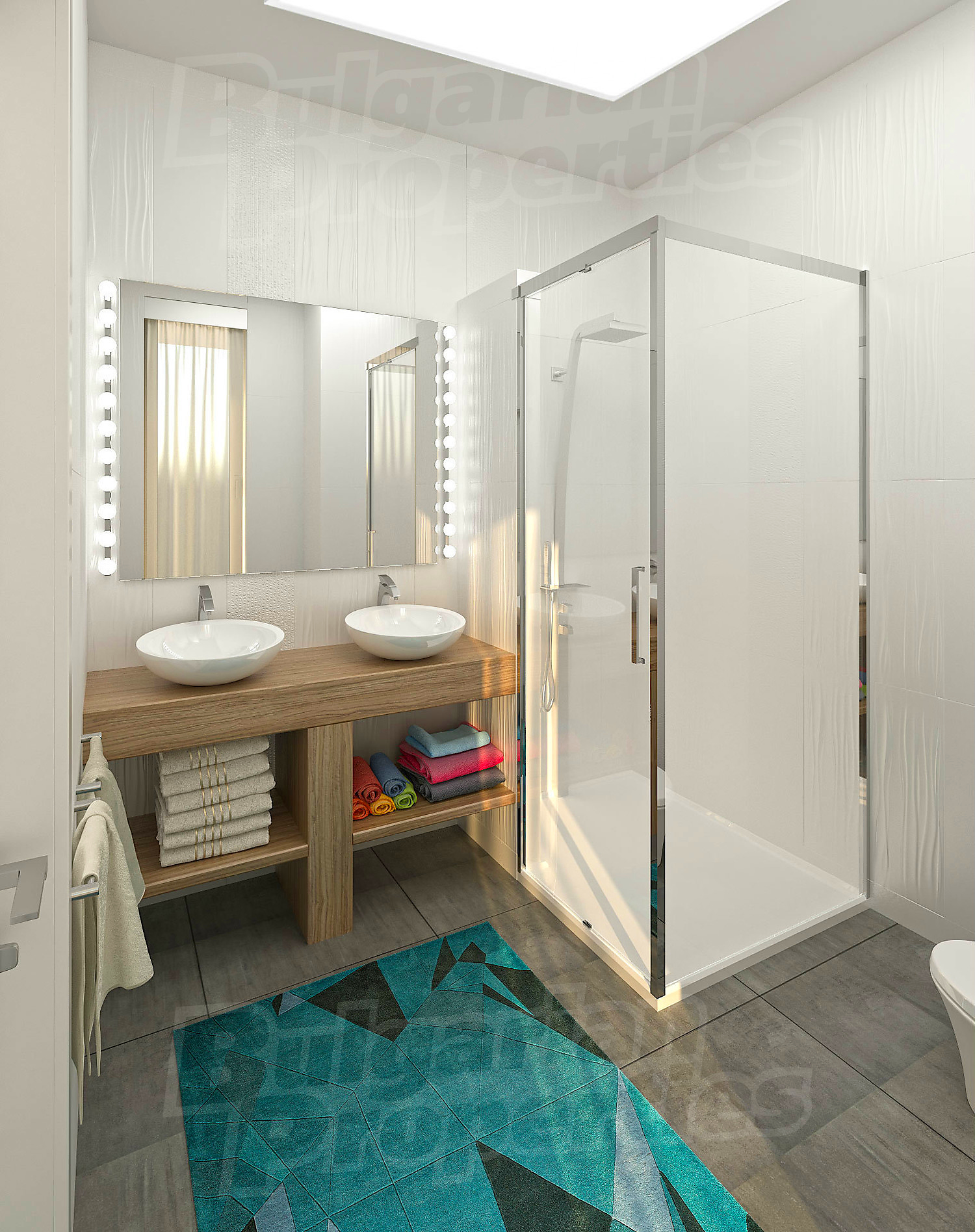 Апартаментът се предлага със степен на завършеност по БДС, но същевременно ще бъдат предложени различни варианти за довършване при желание. Отоплението също е по избор на купувача - термопомпа, газ или климатици.