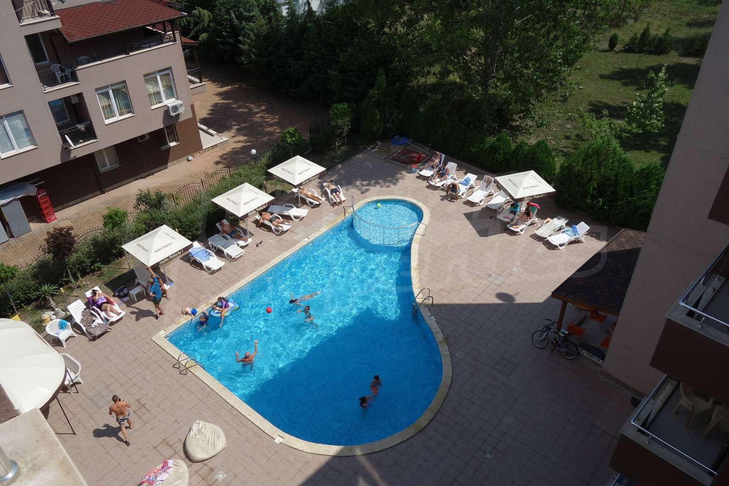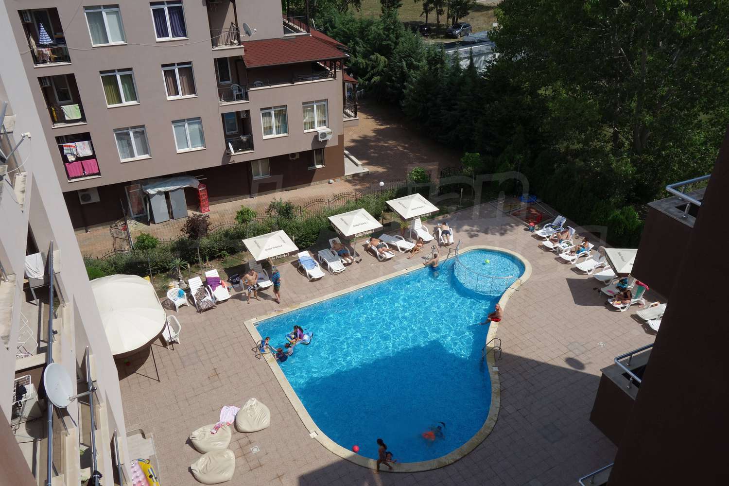 Имотът разкрива гледка към басейна на комплекса. Довършителните работи включват: